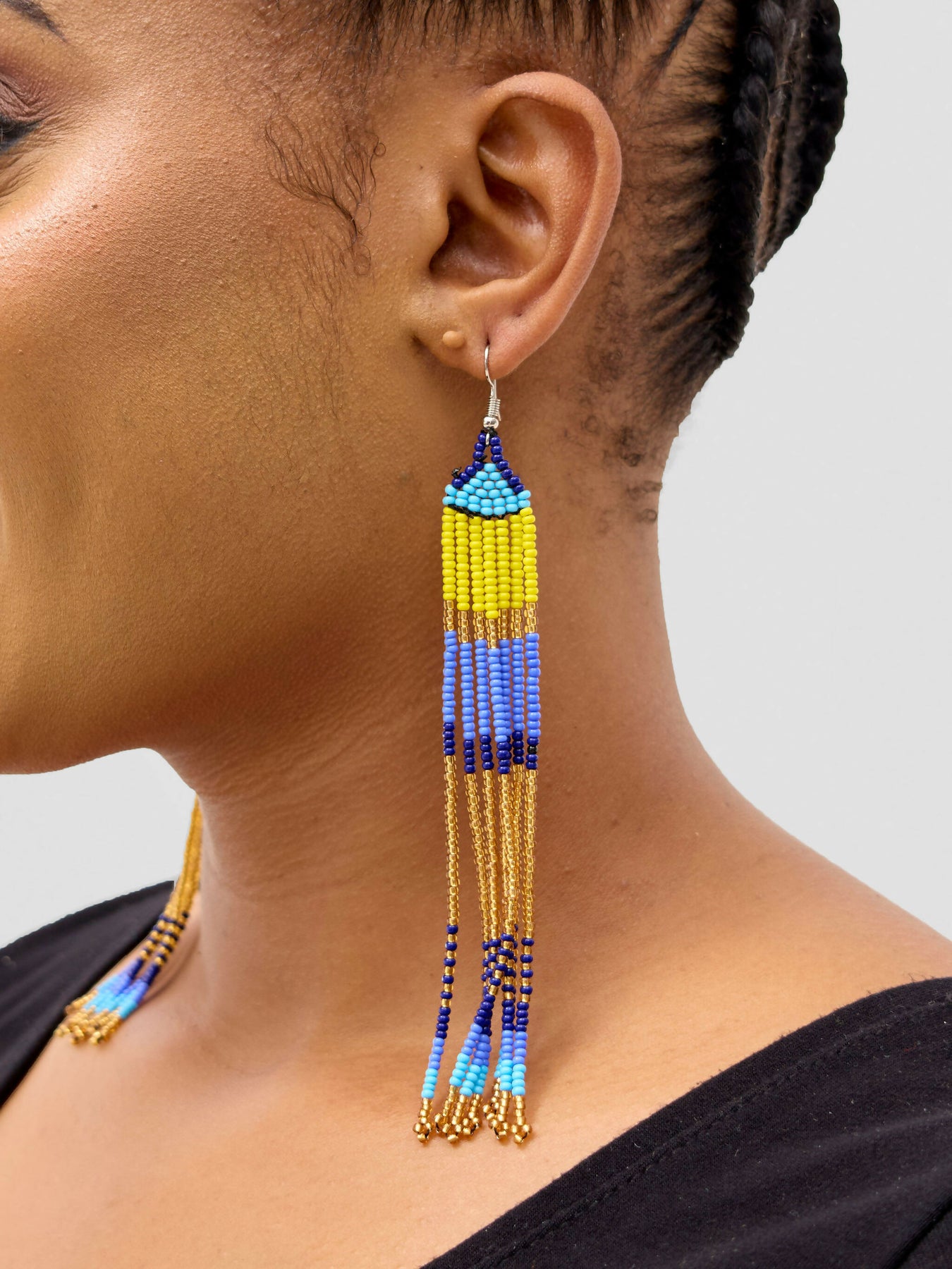 yellow gold blues long hanging earings
