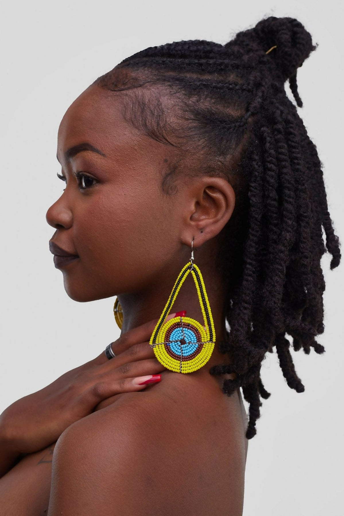 Meishan Curios Oval Long Earring - Yellow - Shopzetu