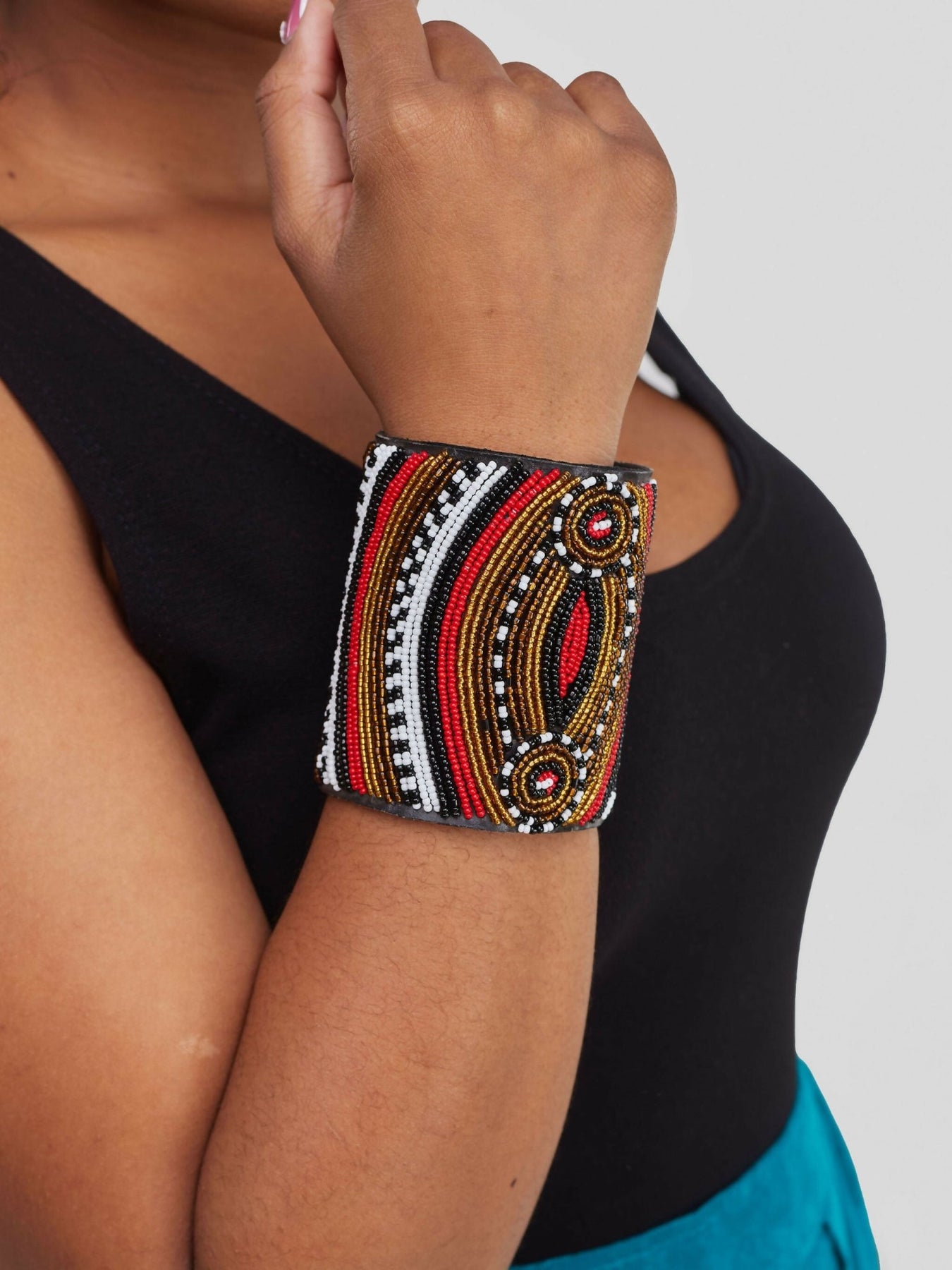 Meishan Curios Wide colored Leather Bangle - Red / Black - Shopzetu