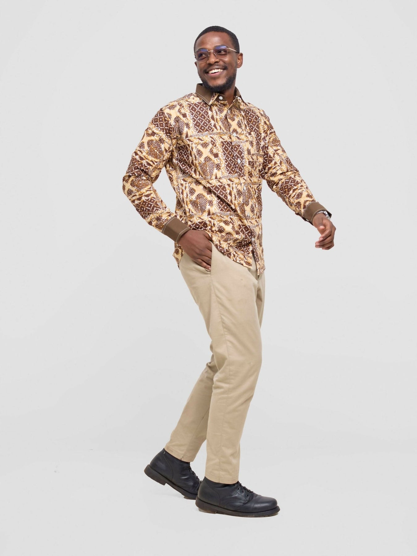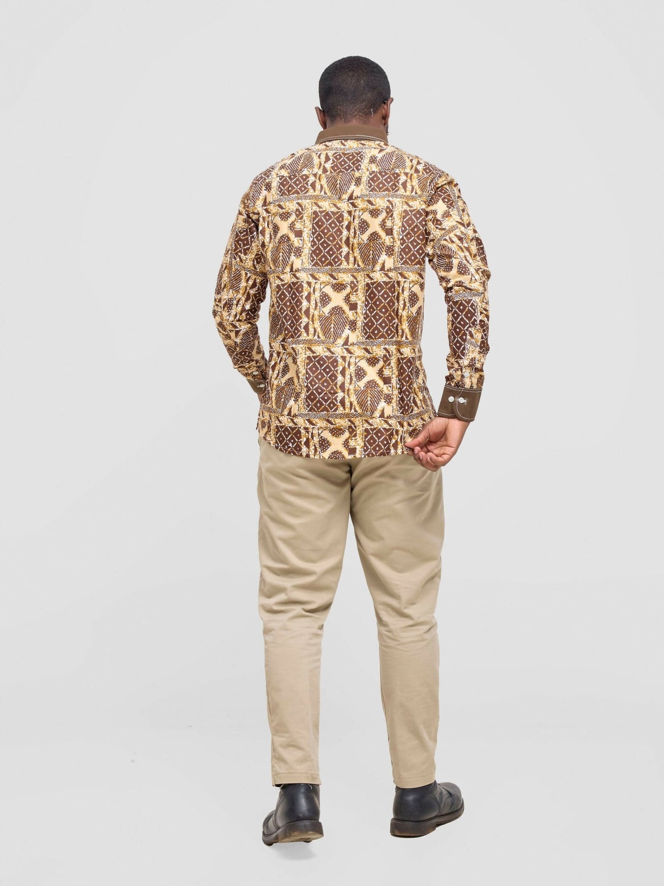 Mendilines Warm African Shirt - Dark Brown Print - Shopzetu