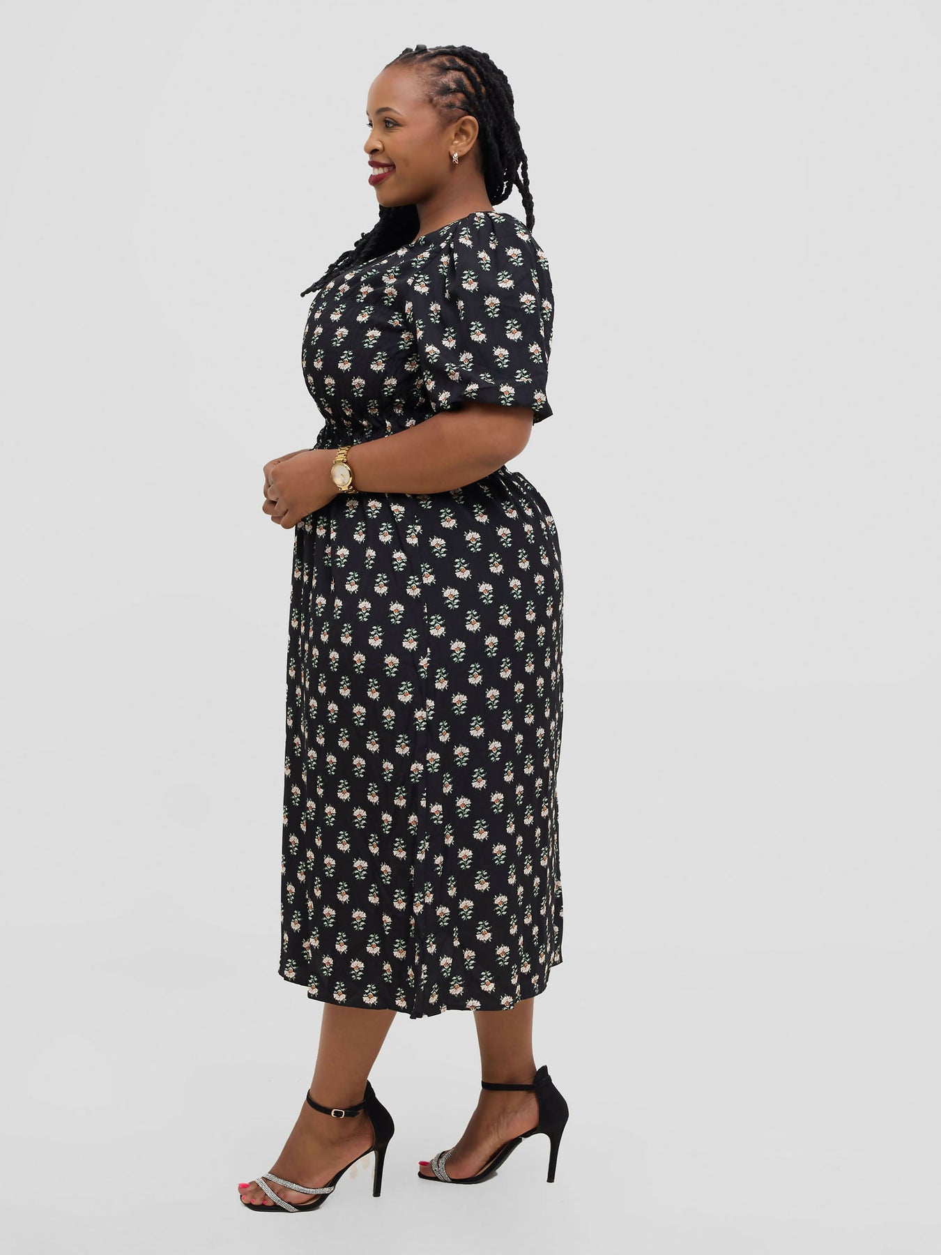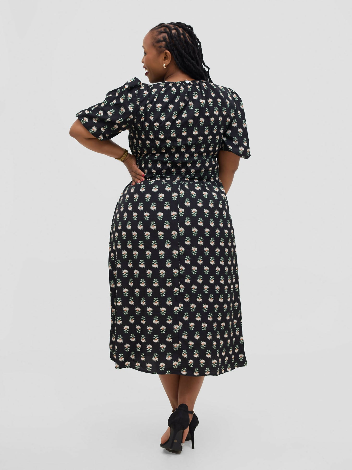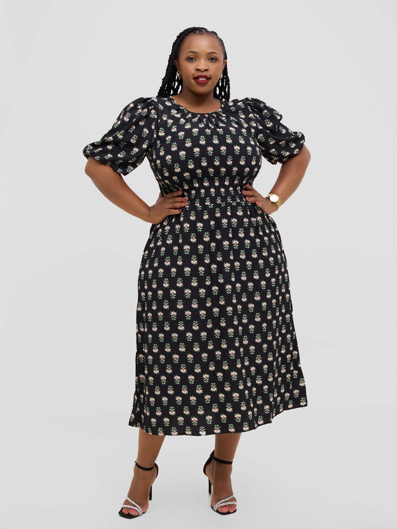 Hessed Floral Puff Short sleeve A Line Round Neck Dress