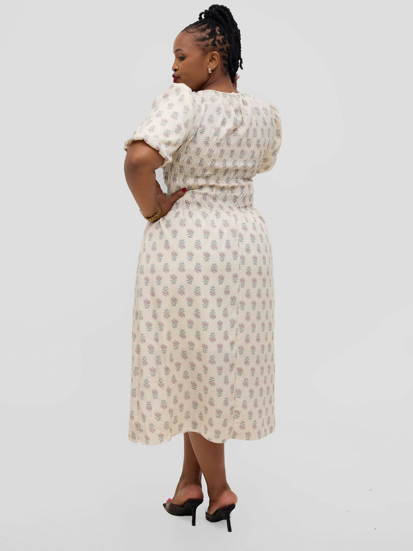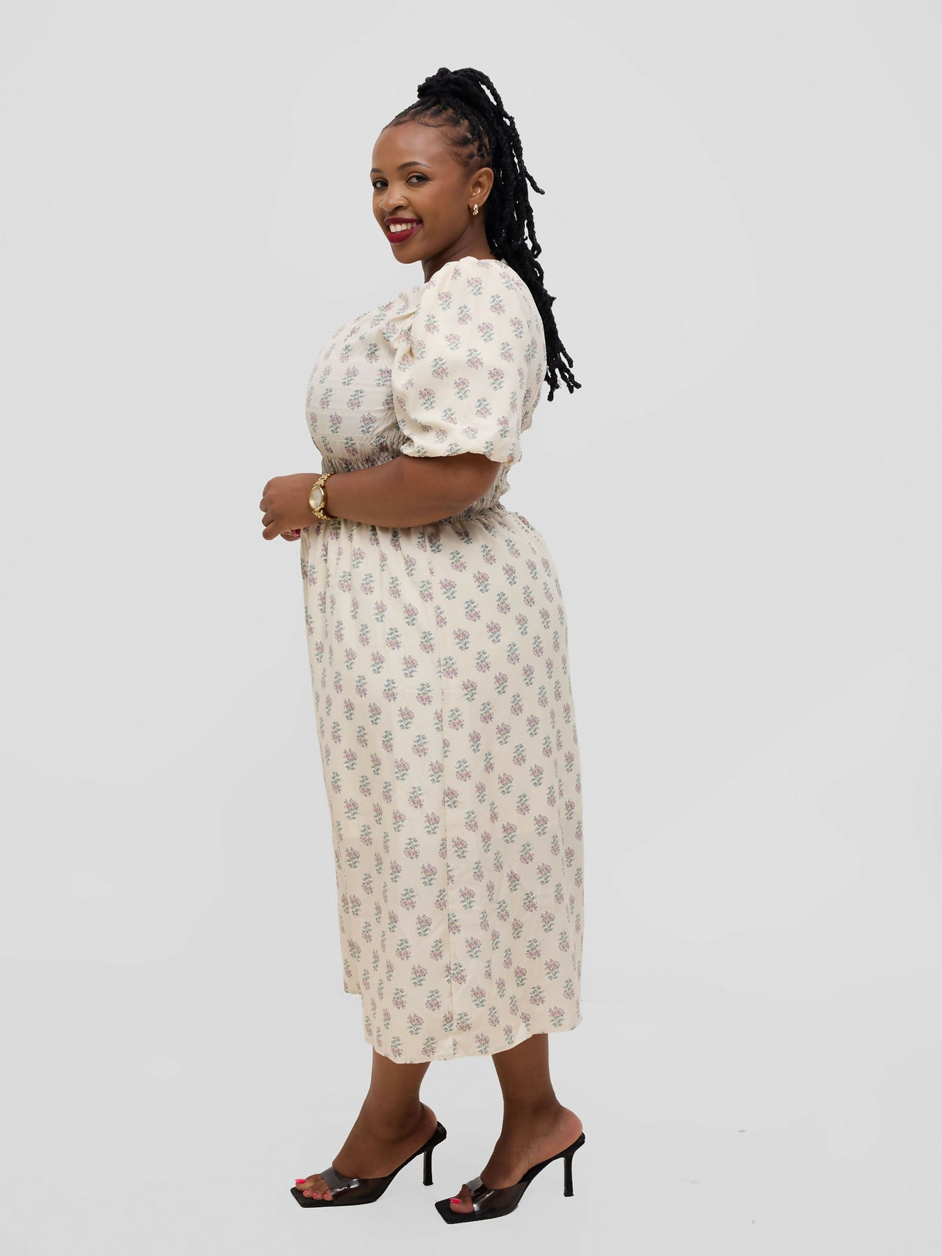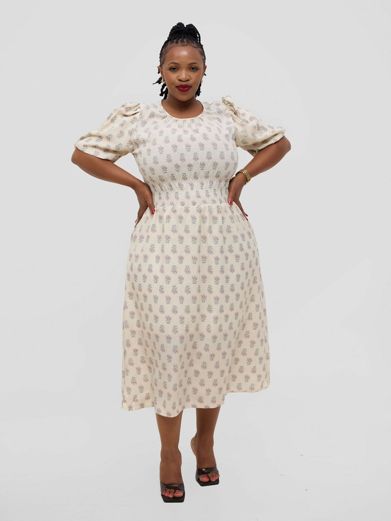 Hessed Floral Puff Short sleeve A Line Round Neck Dress