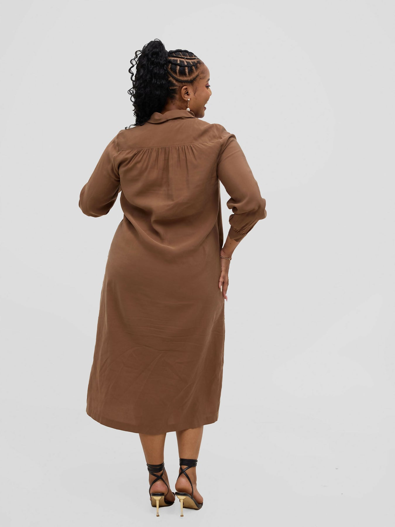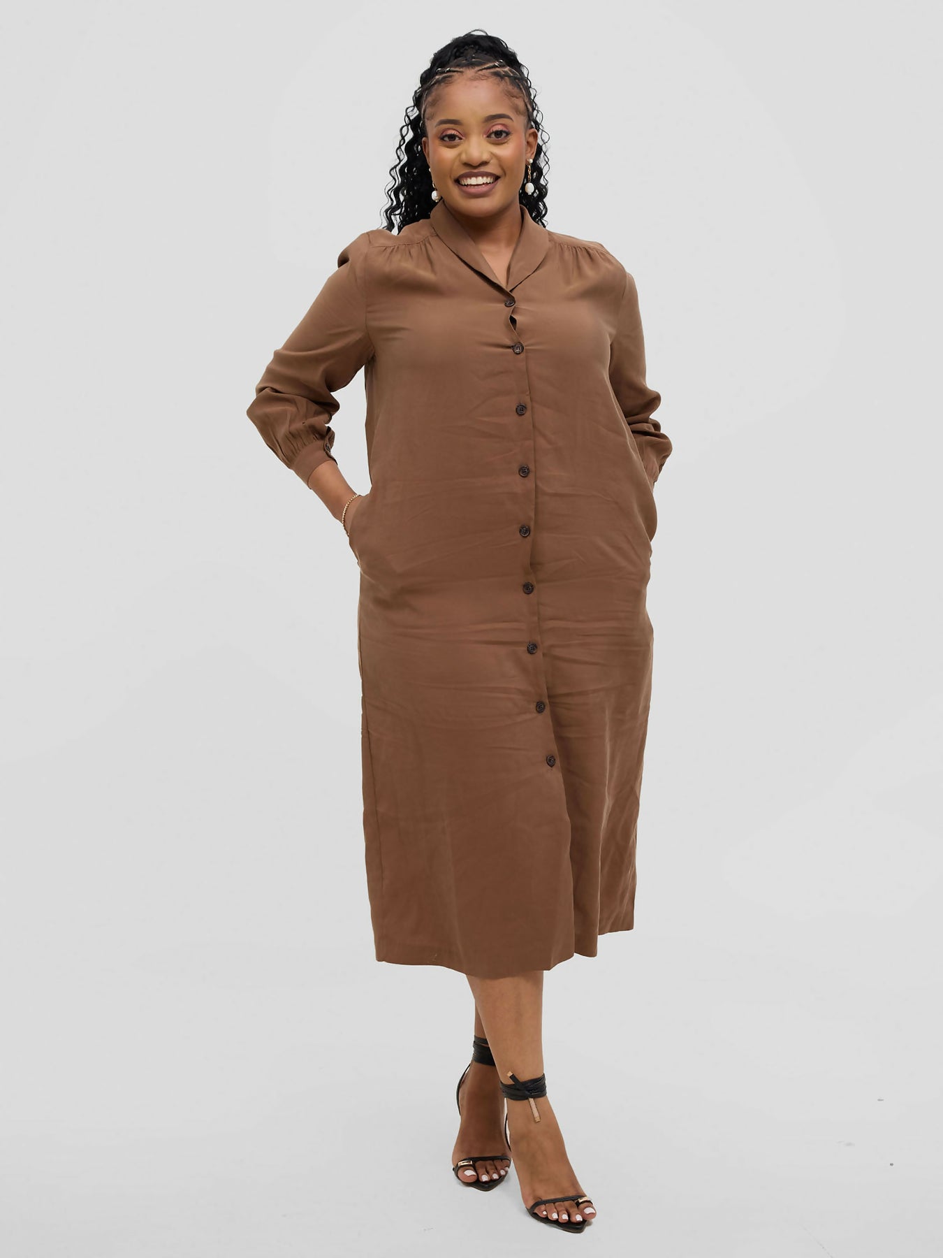 Hessed Offers you a safe bet in any wardrobe, the dress comes here with a side porckets .The dress its self is a V-neck coller dress and long sleeved able for any occasions and affordable.