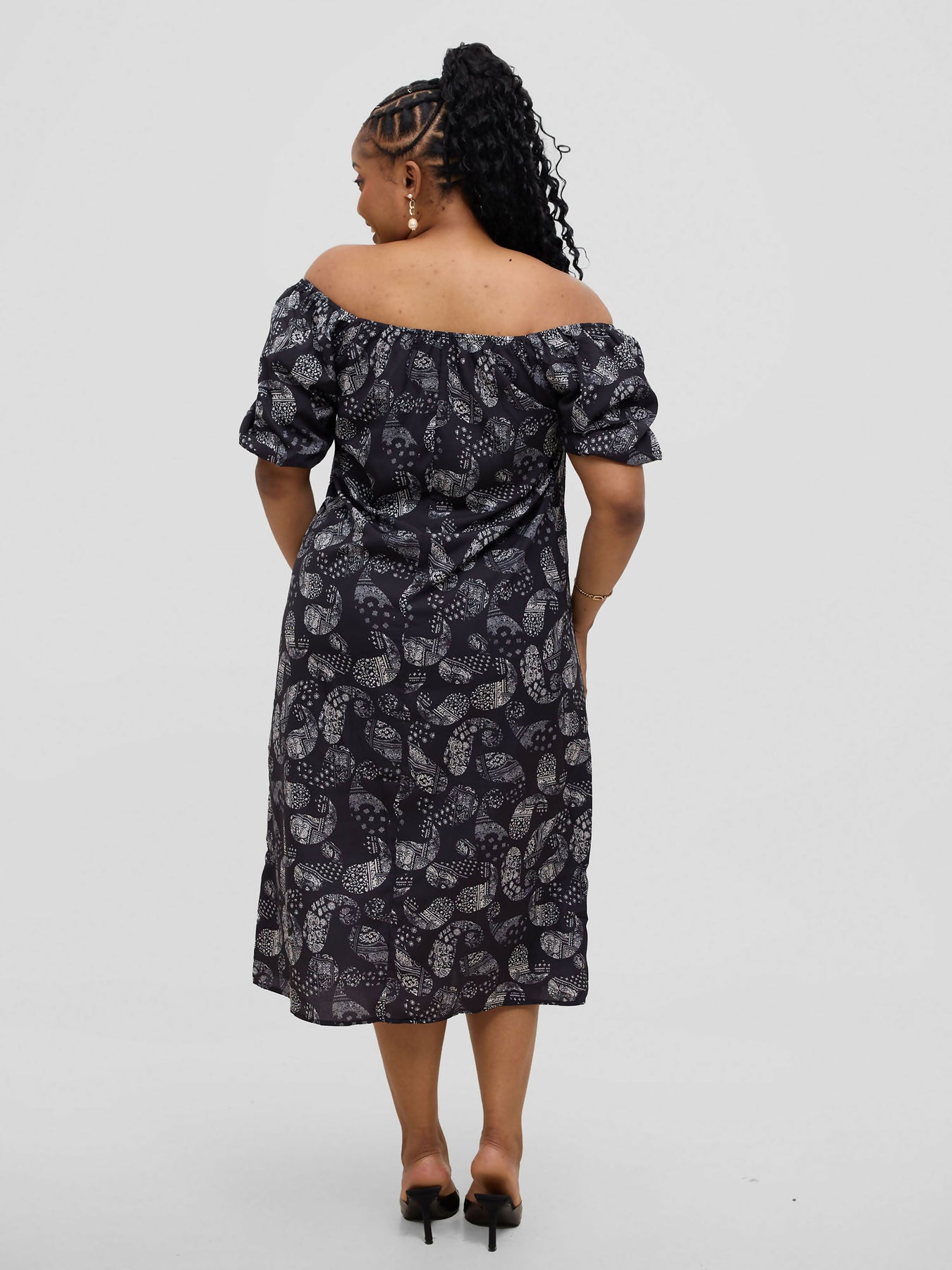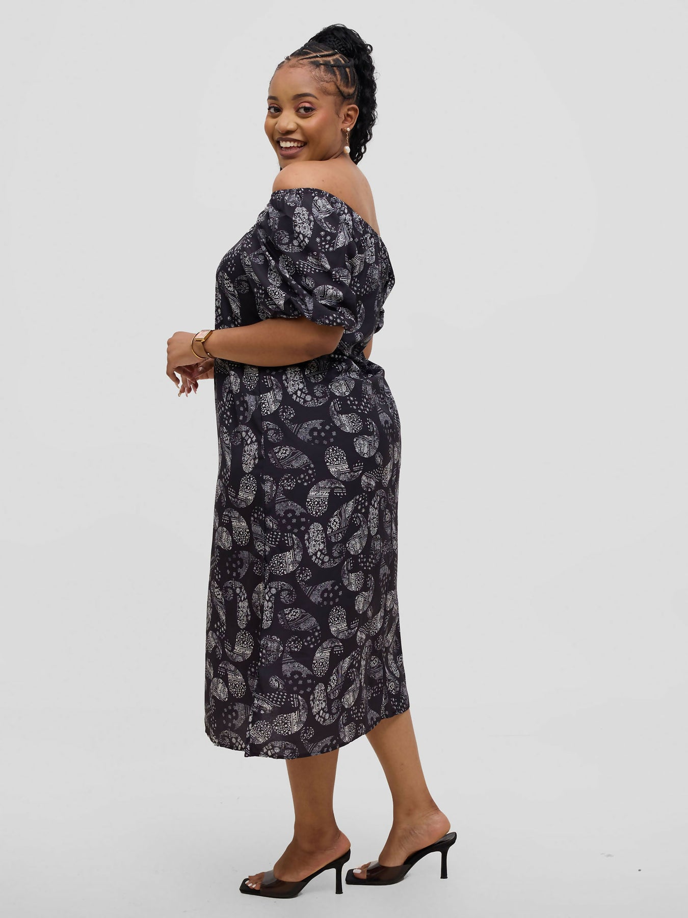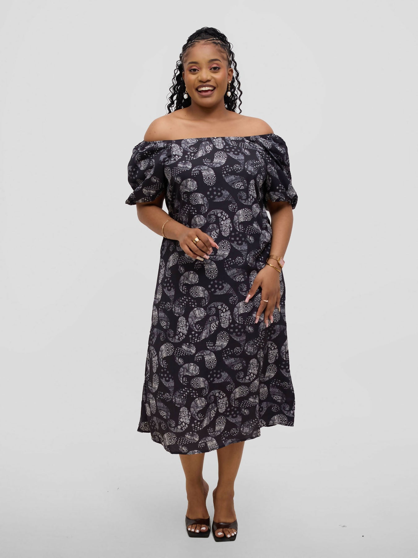 Hessed Flolar Printed Off Shoulder Ballon Sleeve Dress