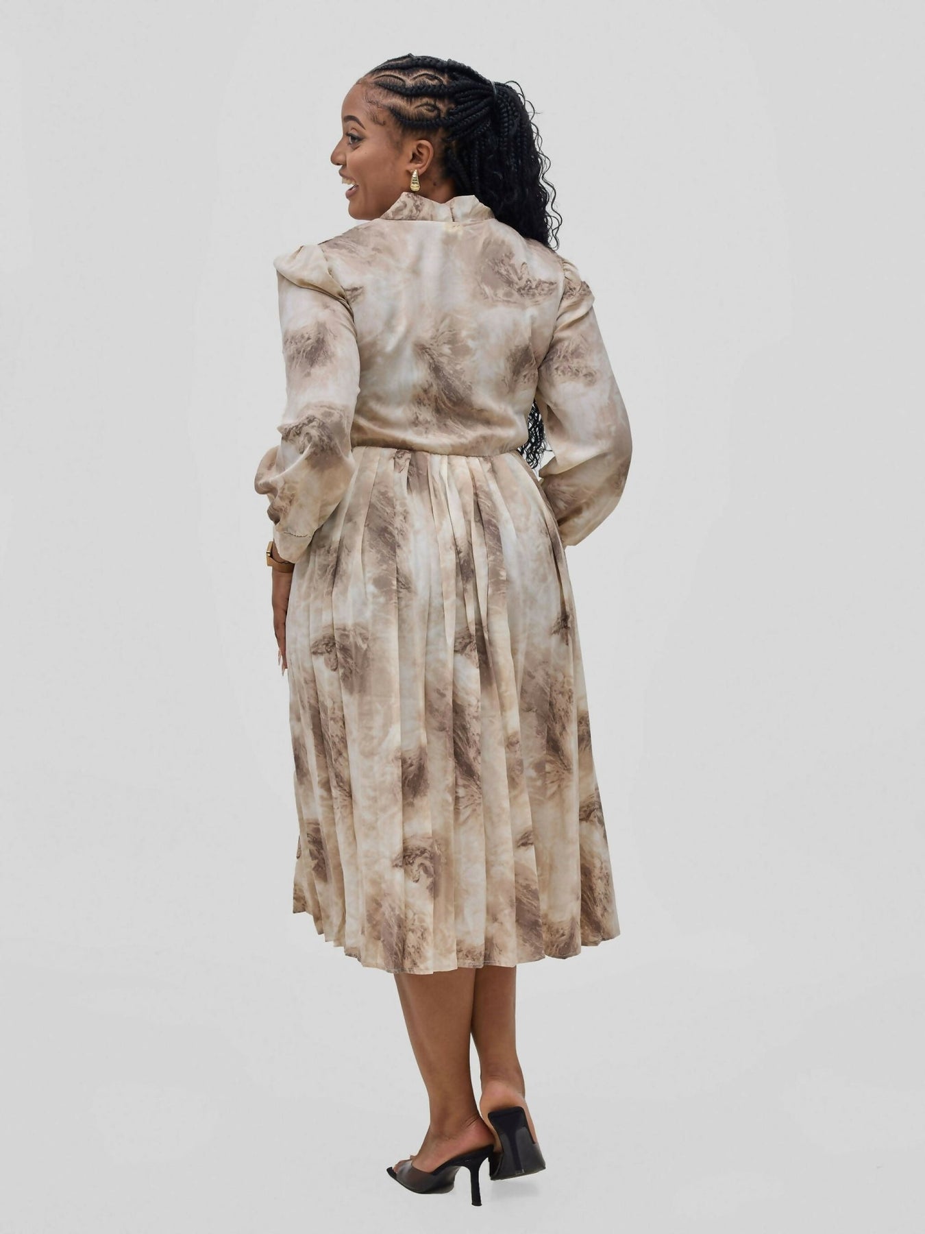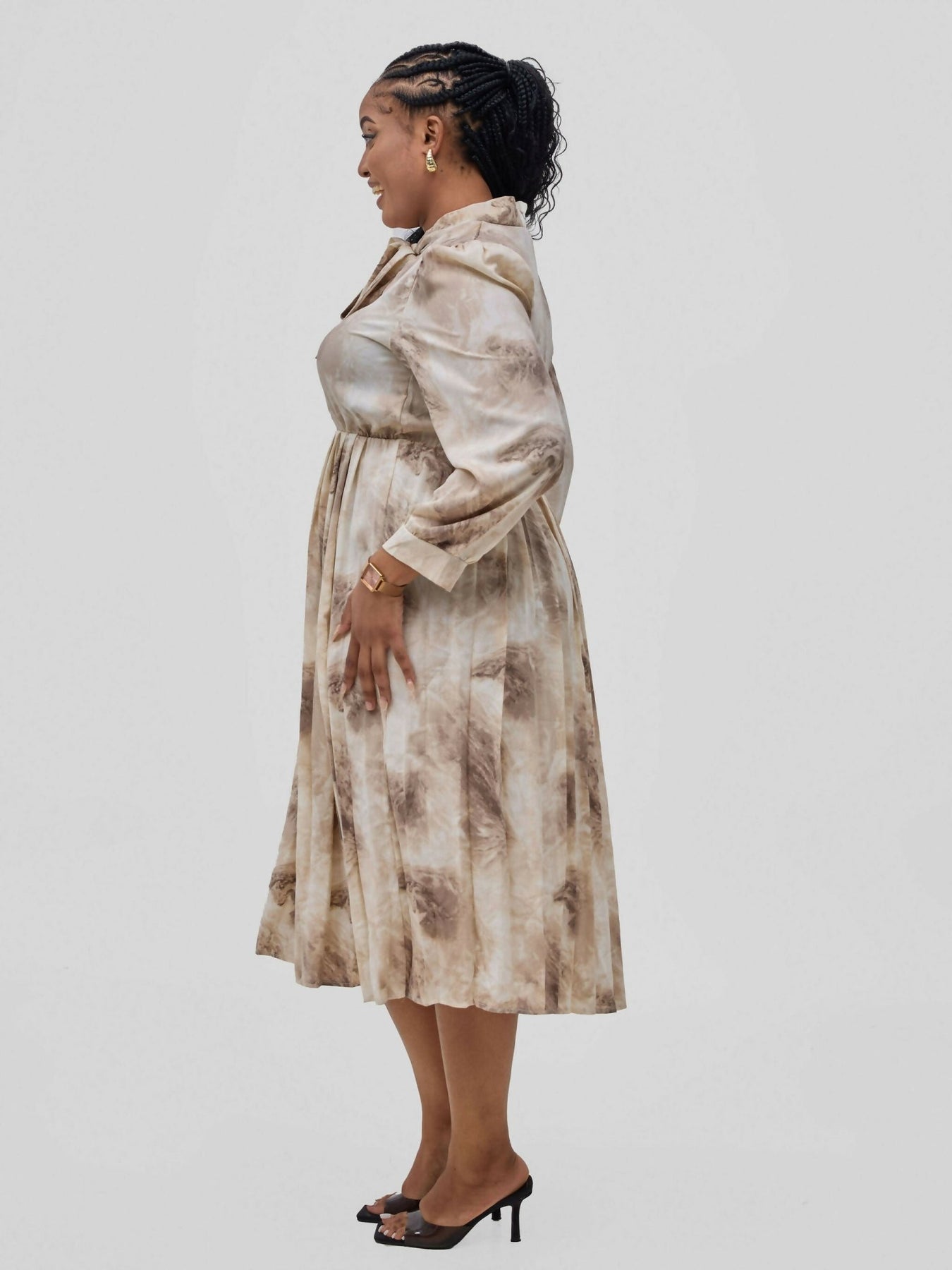 Hessed brand was created with the mission of providing sophisticated and comfortable choices in knitwear.The dress its self is a floral tie neck midi dress and a long sleeved sweet able for any occasions and affordable.lo