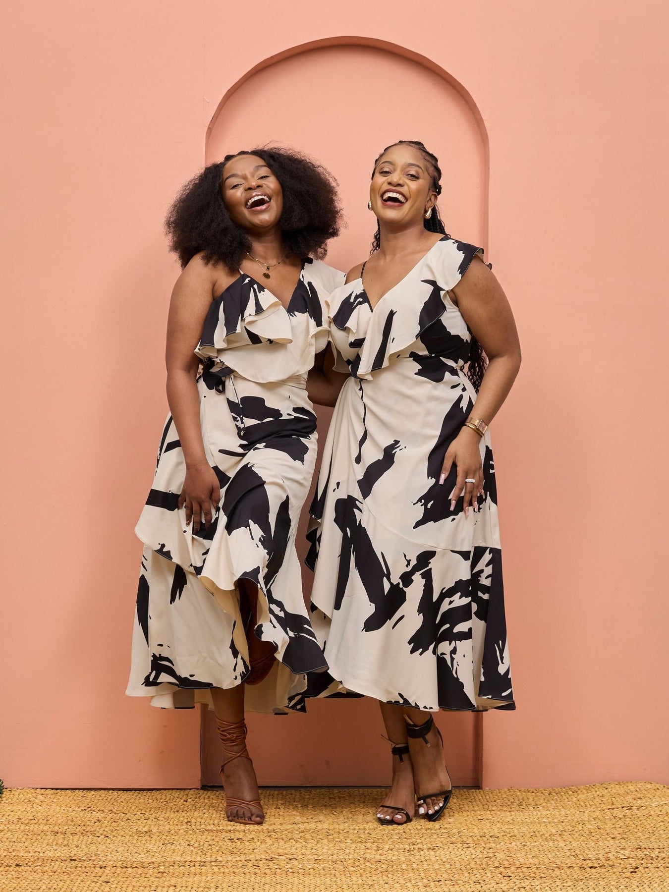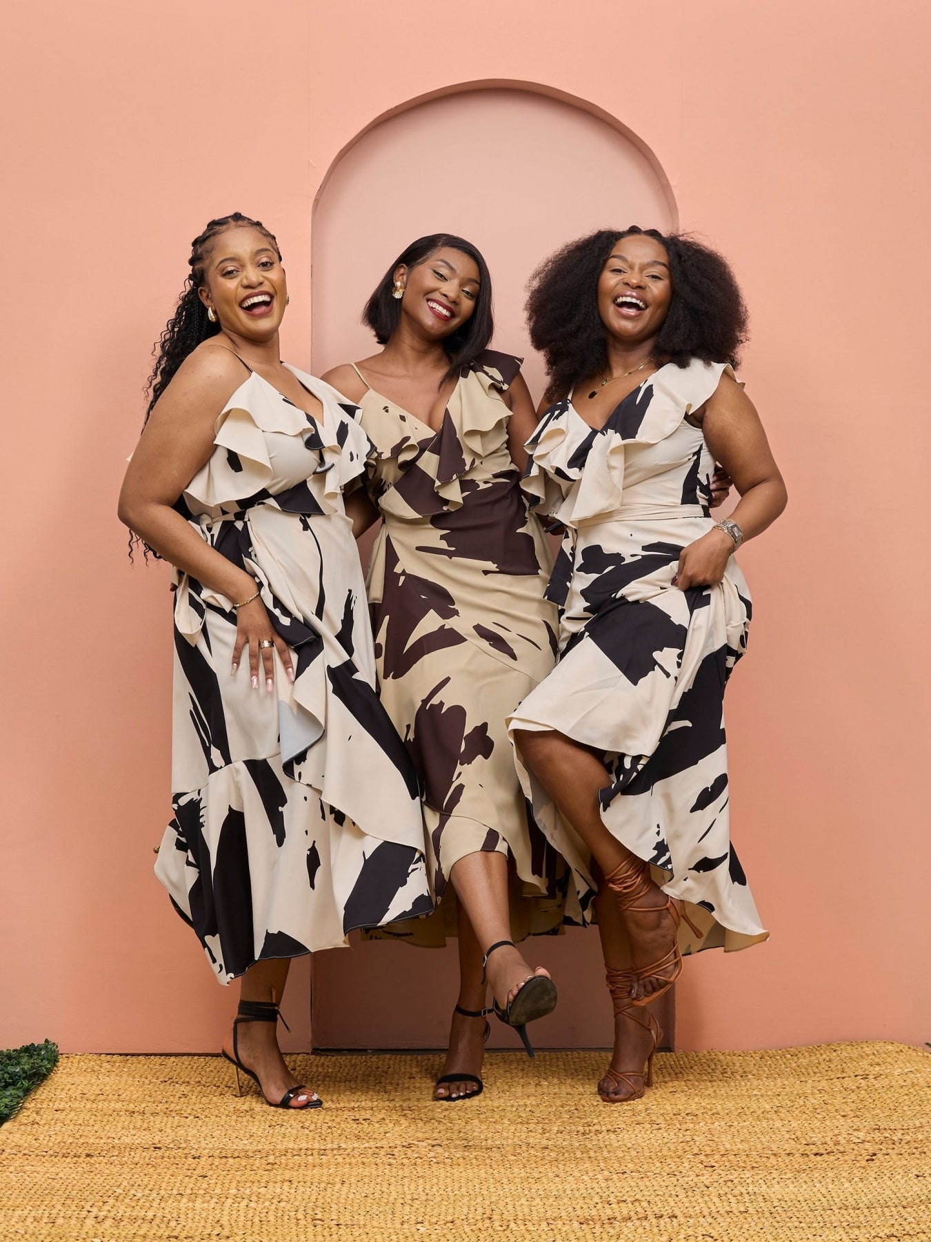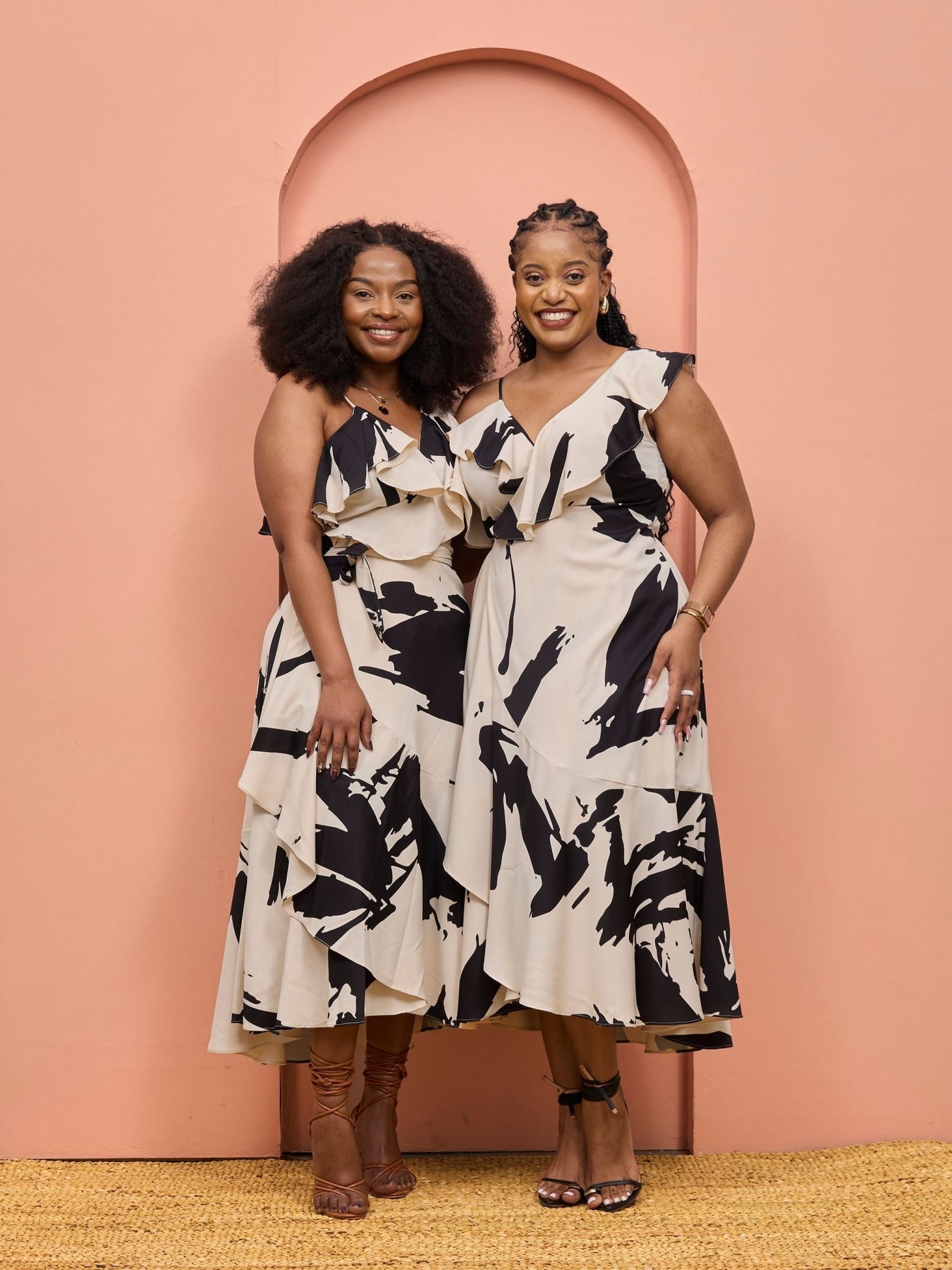 Vivo Beali Wrap Asymmetrical Midi Dress - Taupe / Chocolate Lea Print - Shopzetu