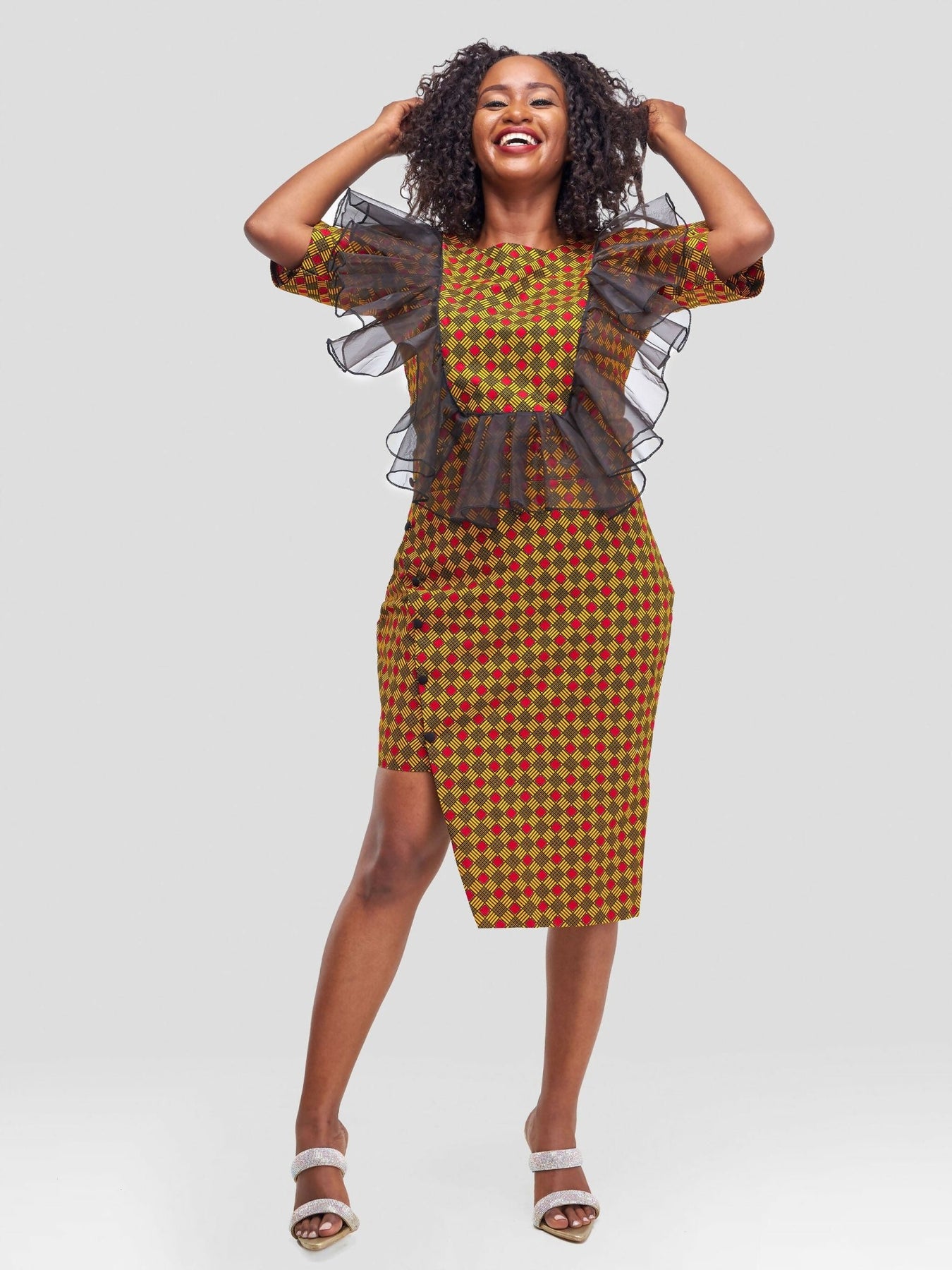 Nefpatra Ade Ankara Dress - Orange - Shopzetu