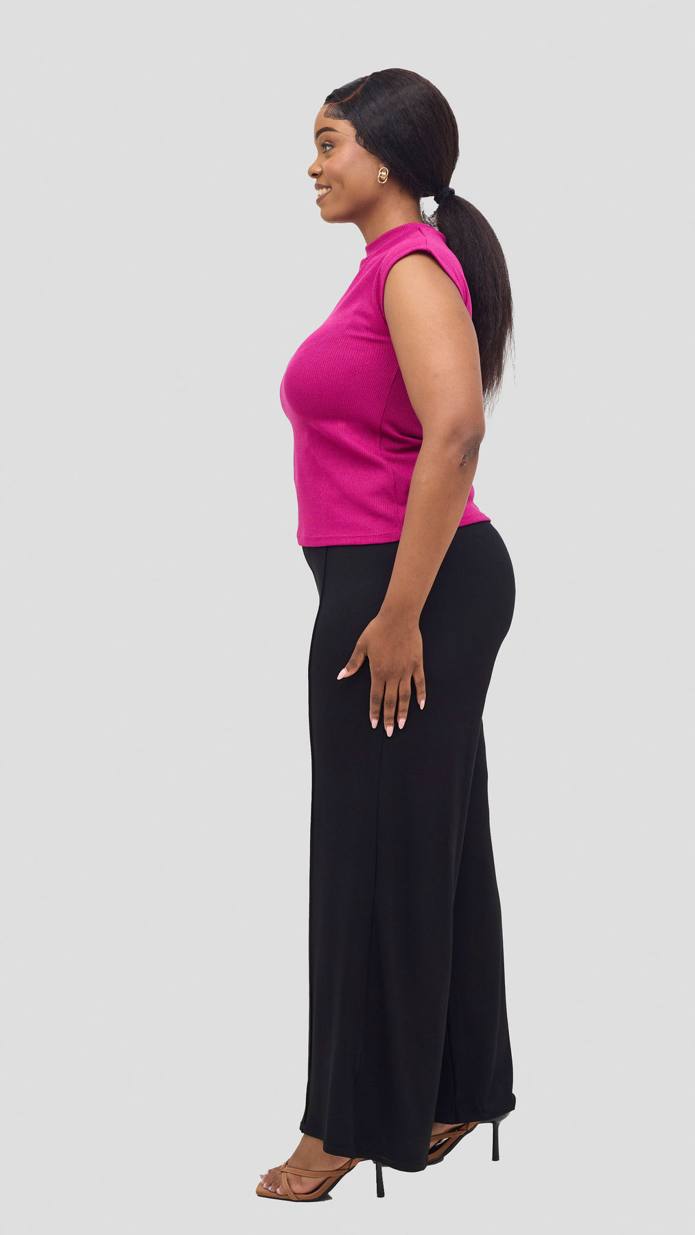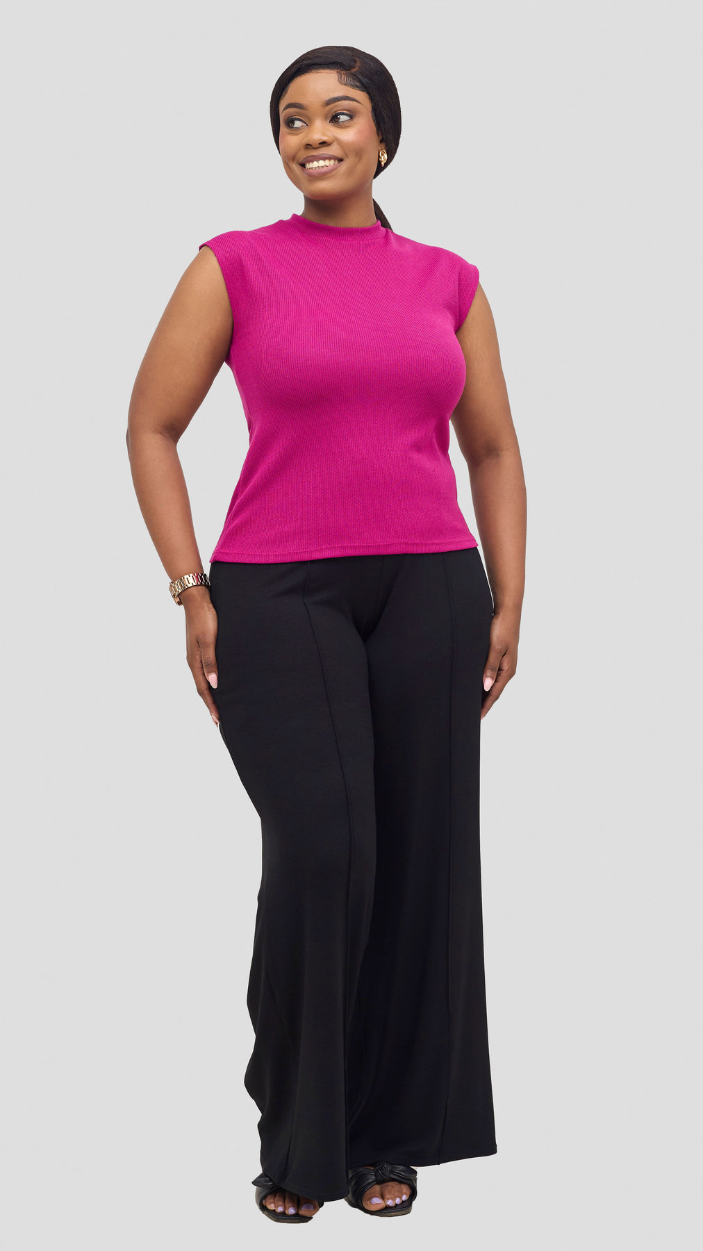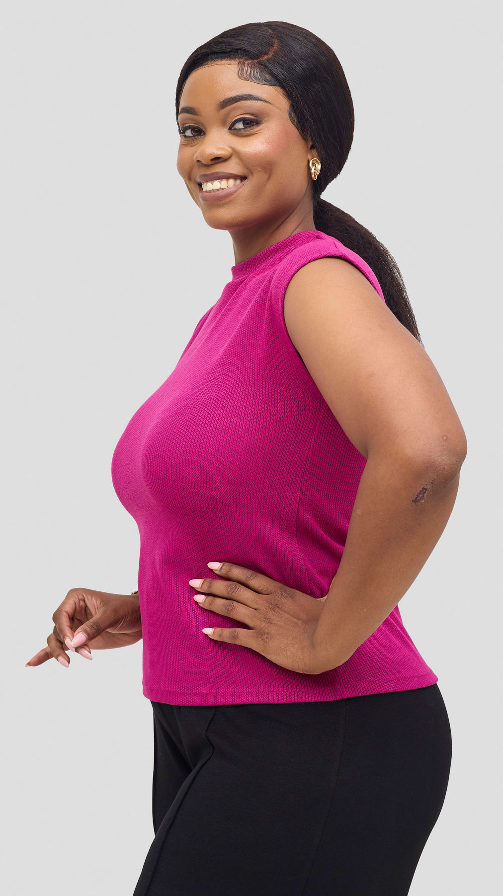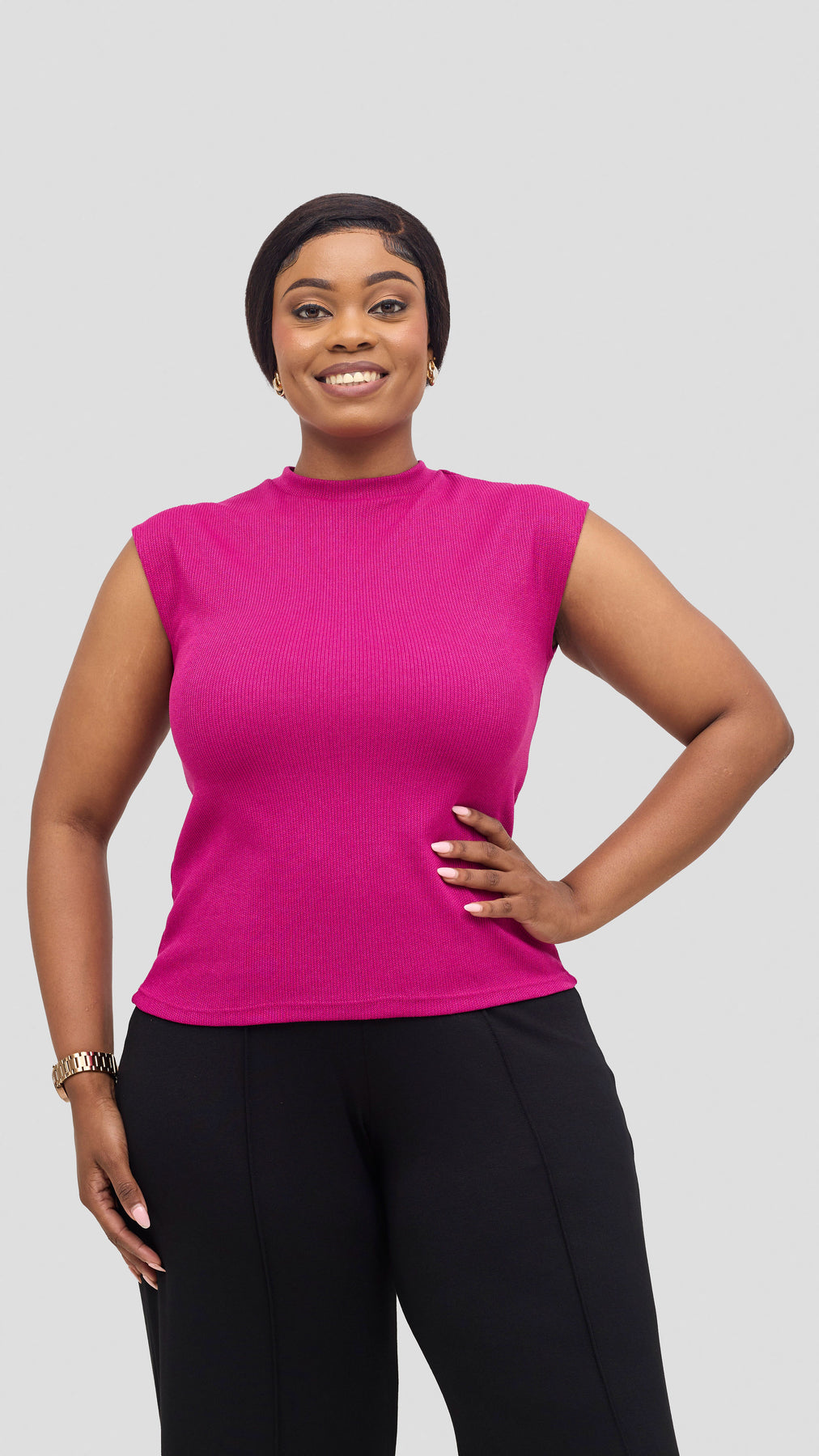 The Vivo Ria Mock Neck Top in Fushia offers a perfect blend of style and comfort. Its elegant mock neck design enhances your silhouette while the soft lilac shade adds a delicate, trendy touch to your look. Ideal for both casual outings and polished occasions, this top is versatile enough to pair with pants, leggings, jeans or skirts, making it a must-have piece to refresh your wardrobe with effortless charm.
