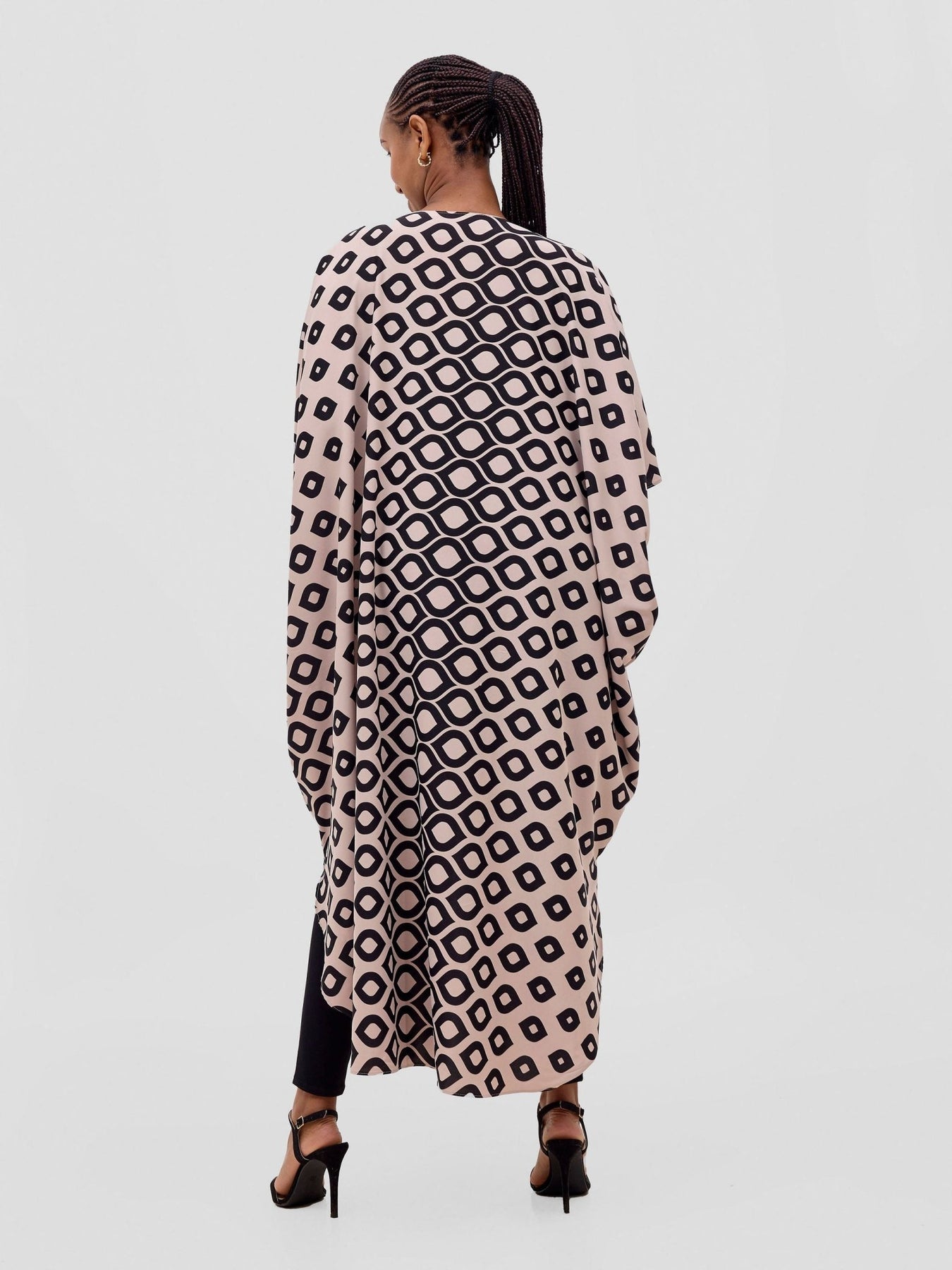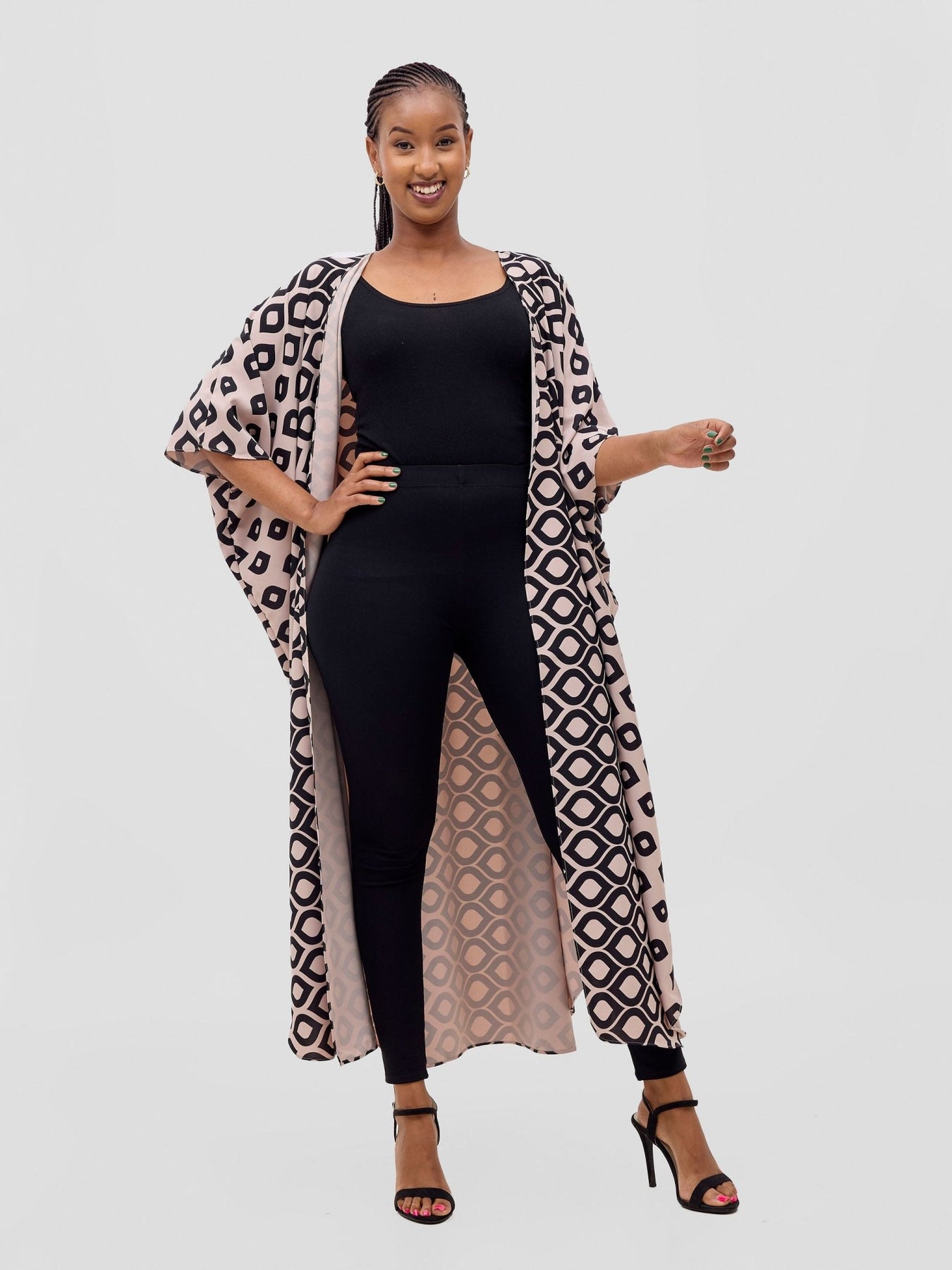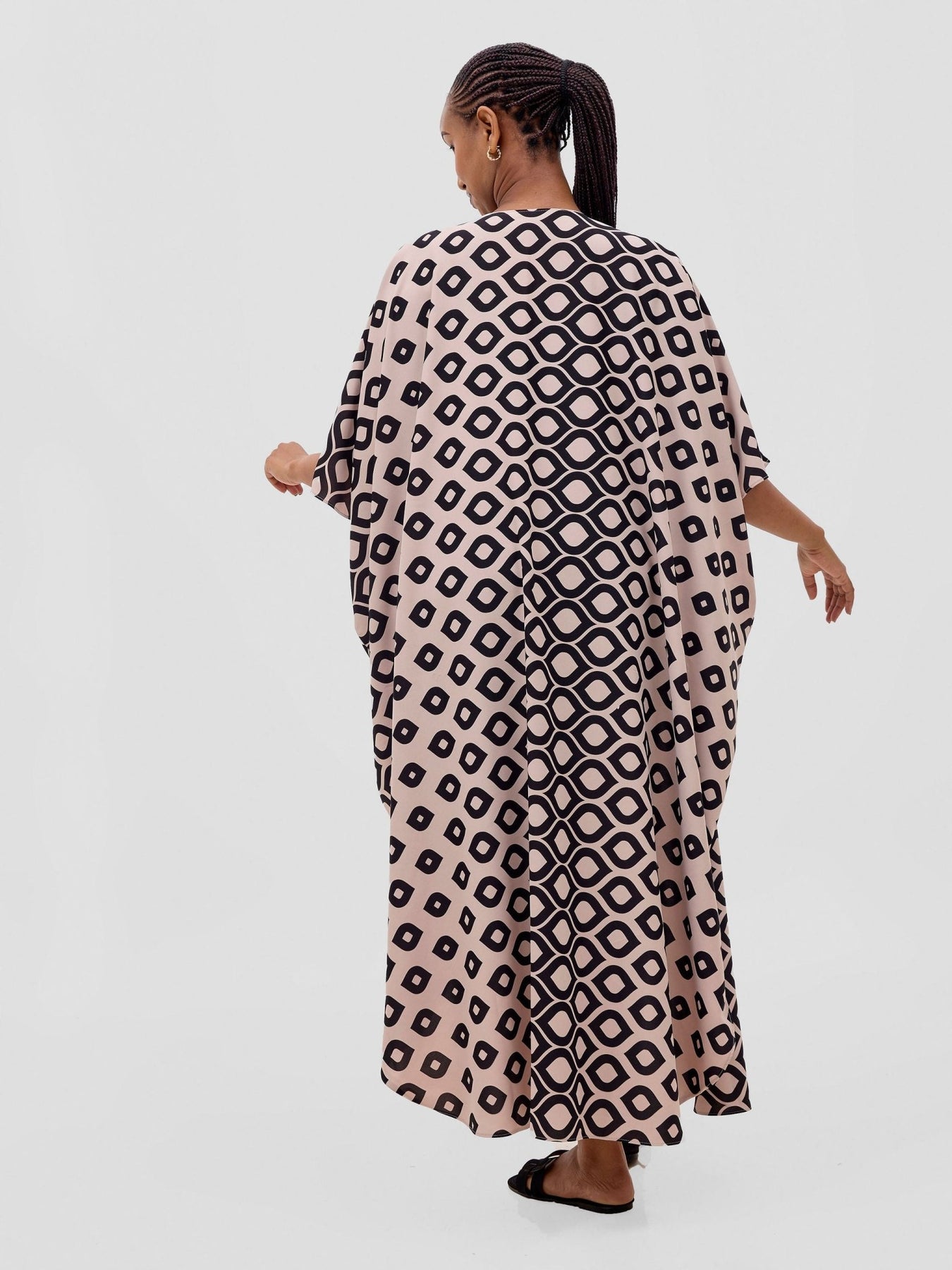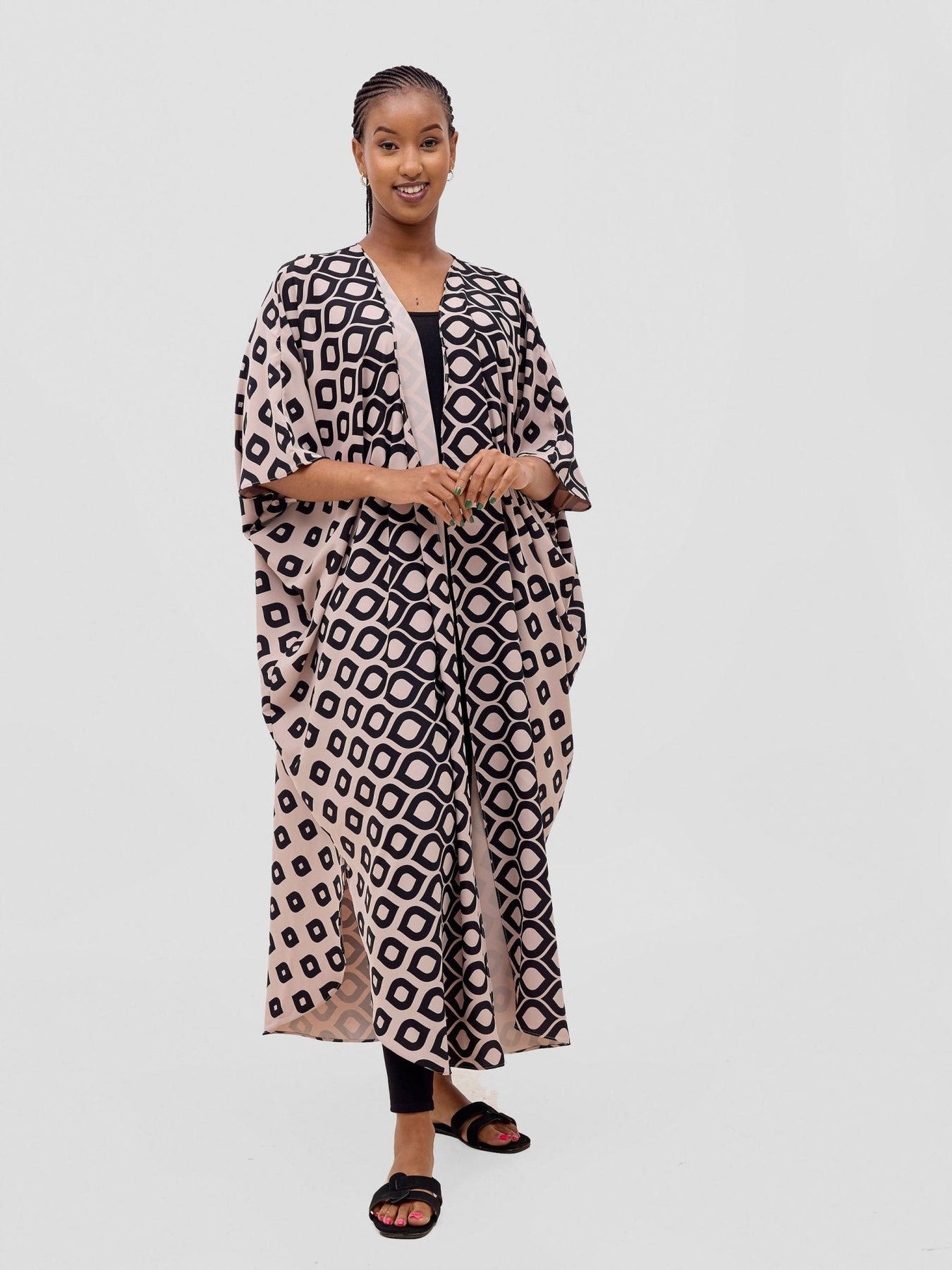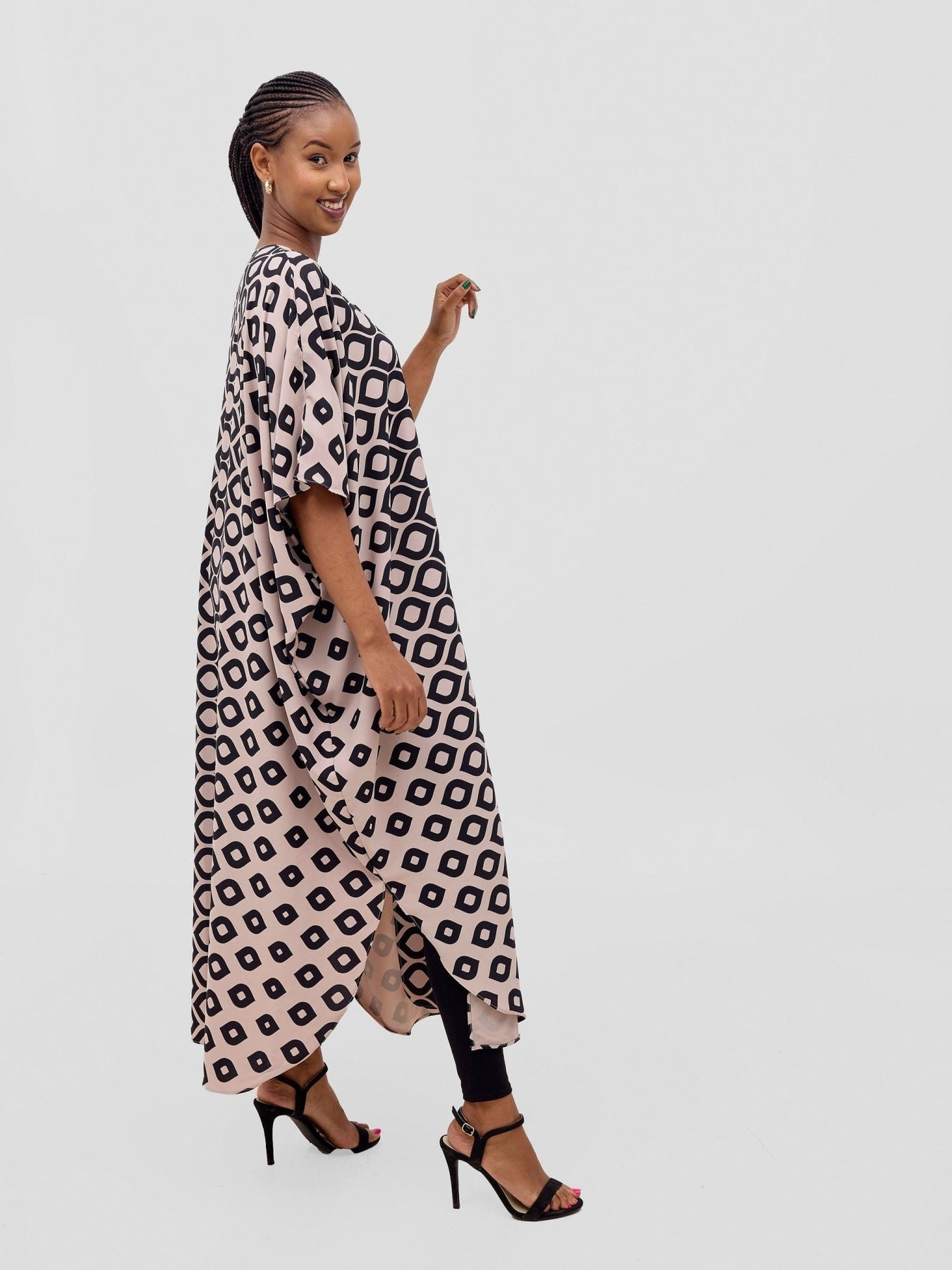 Vivo Basic Open Kaftan - Tan Ayla Print - Shopzetu