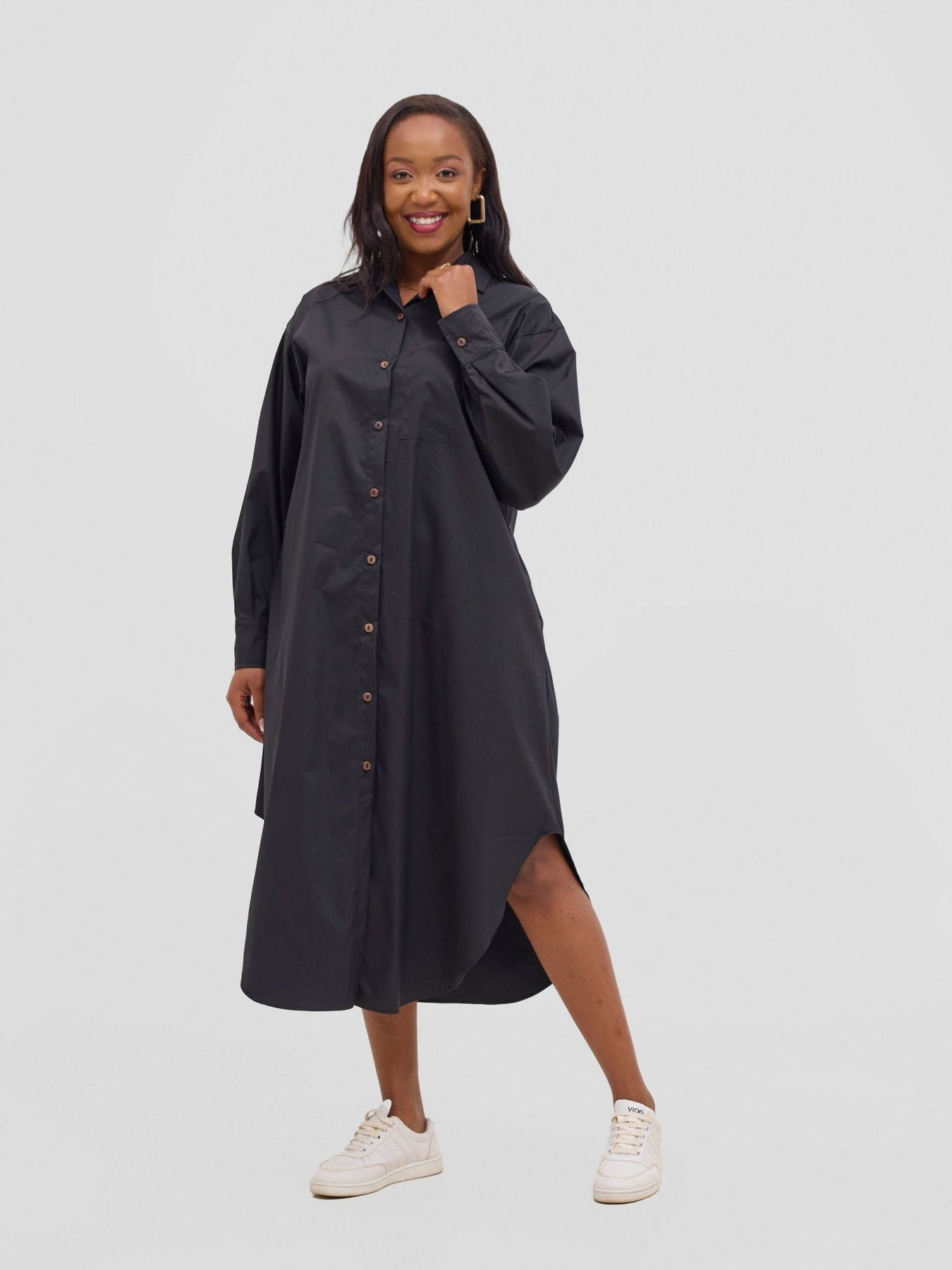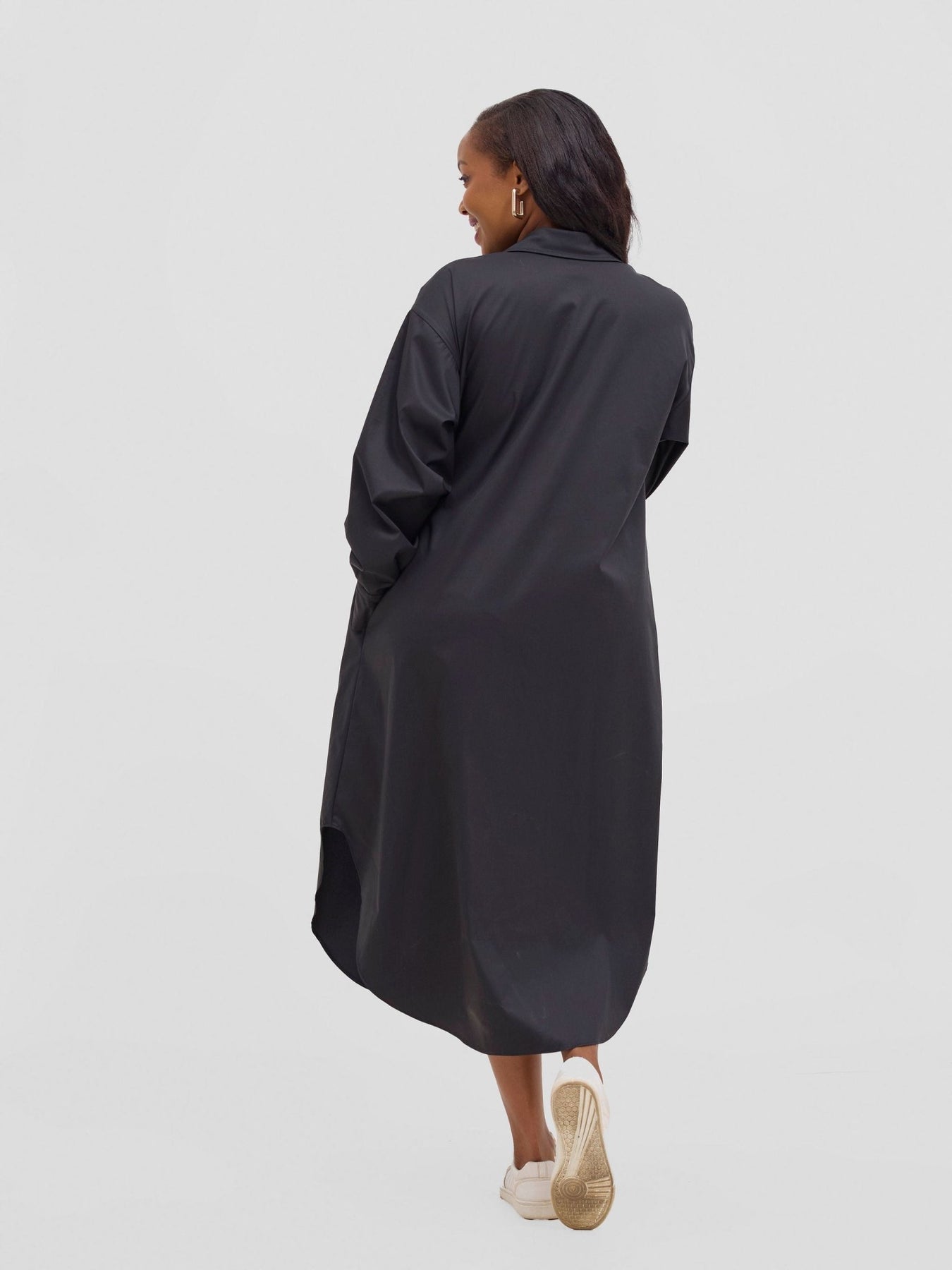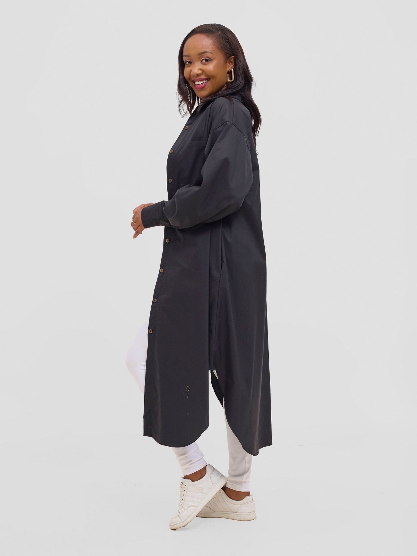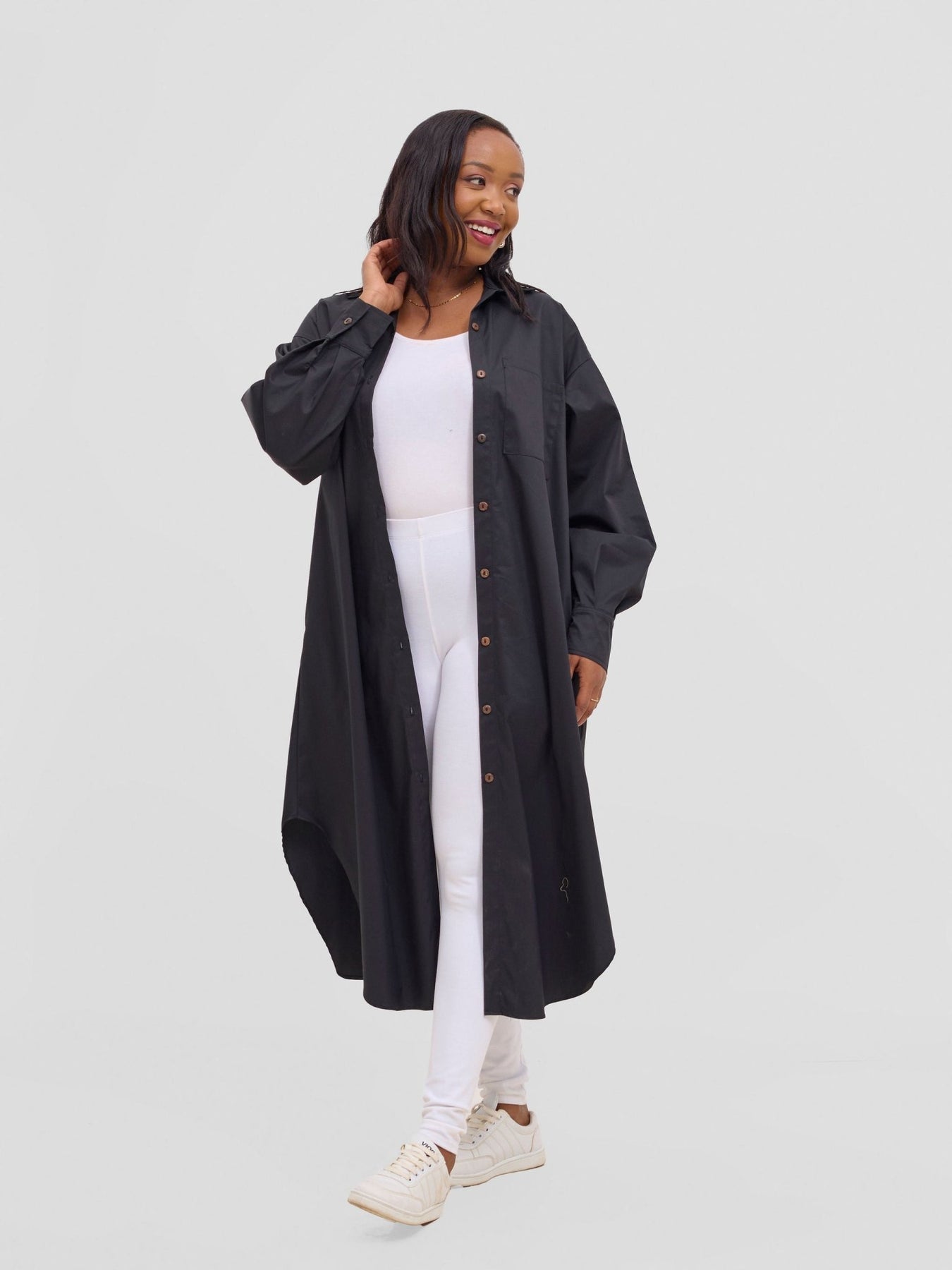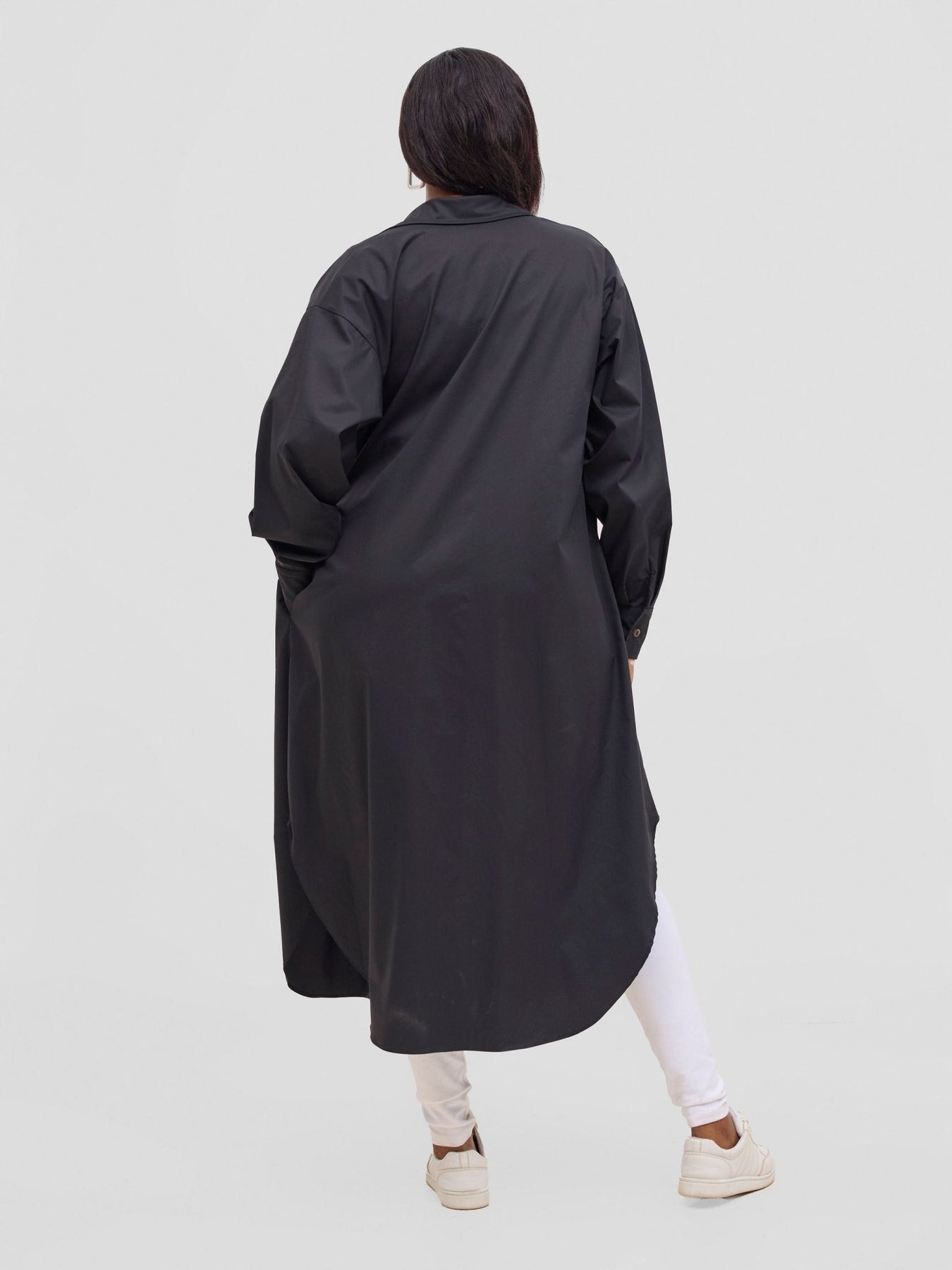 Safari Mansi Bishop Sleeve Shacket - Black - Shopzetu