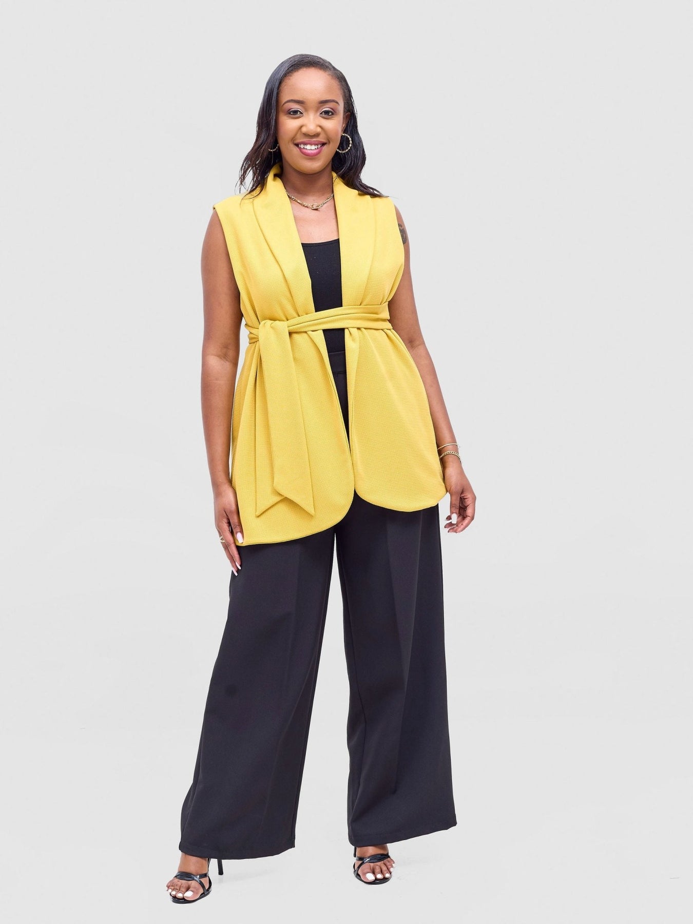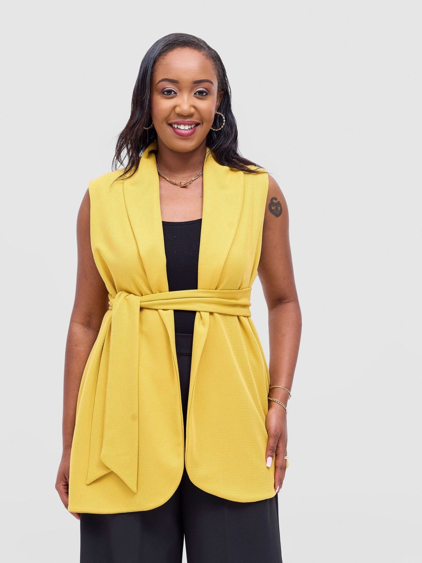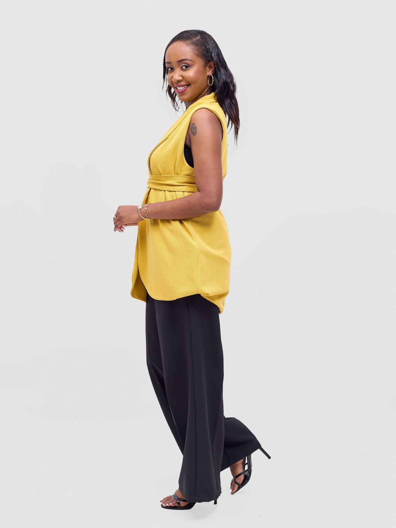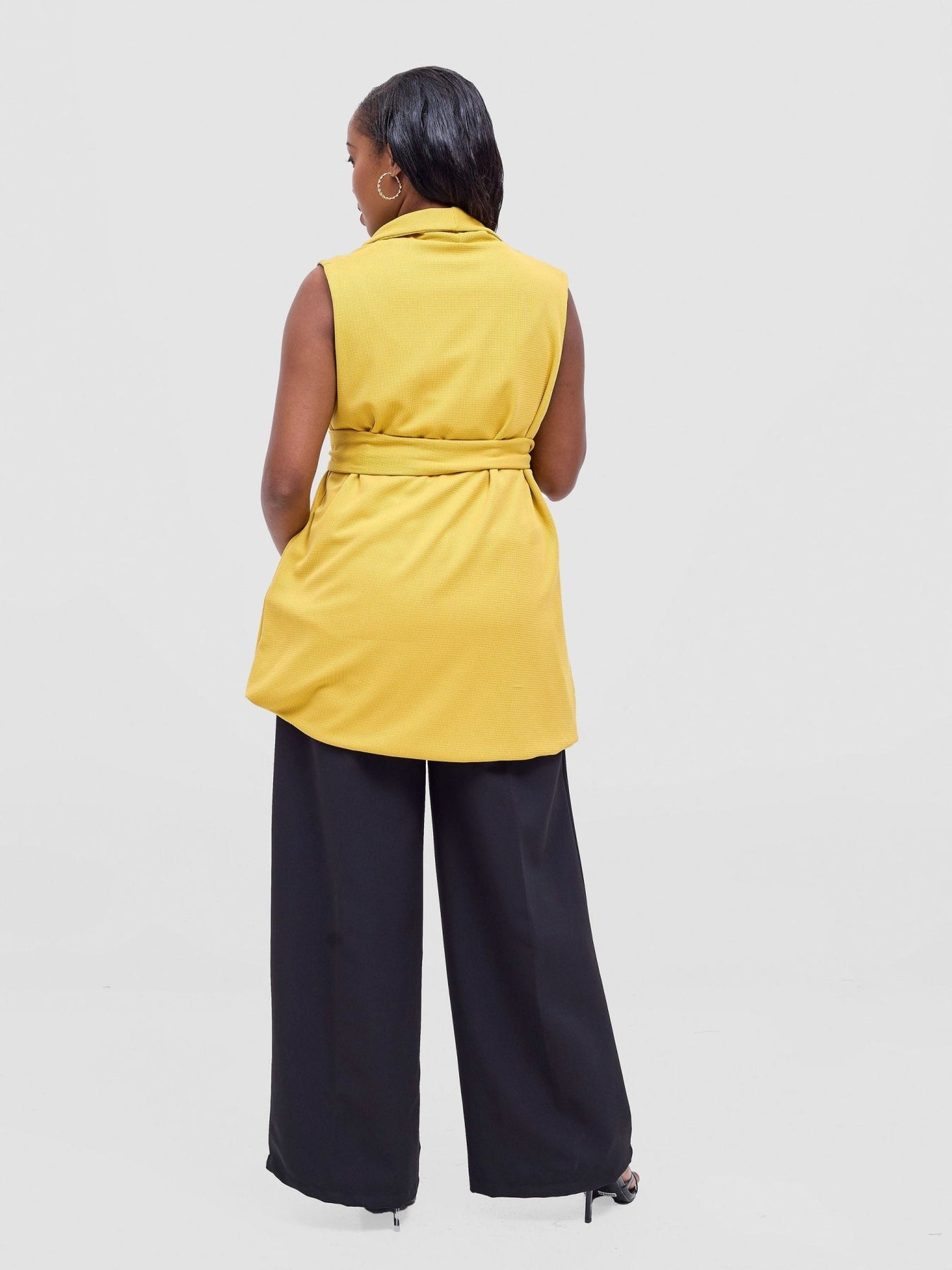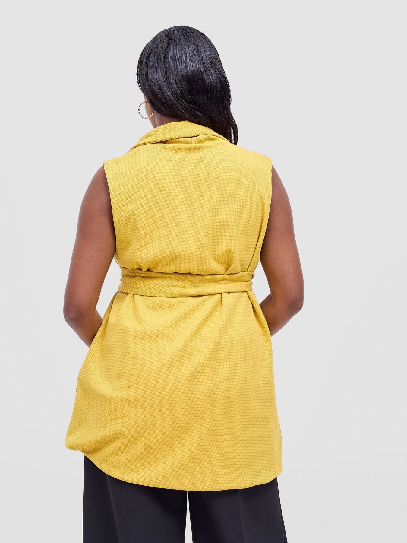 Vivo Basic Sleeveless Double Layered Coat - Mustard