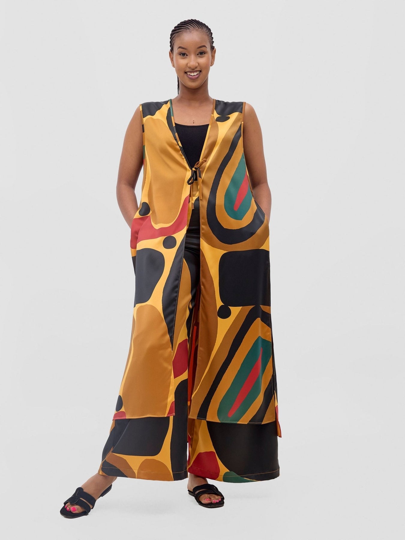 Vivo Kelemi Sleeveless Overcoat - Mustard / Red Waso Print - Shopzetu