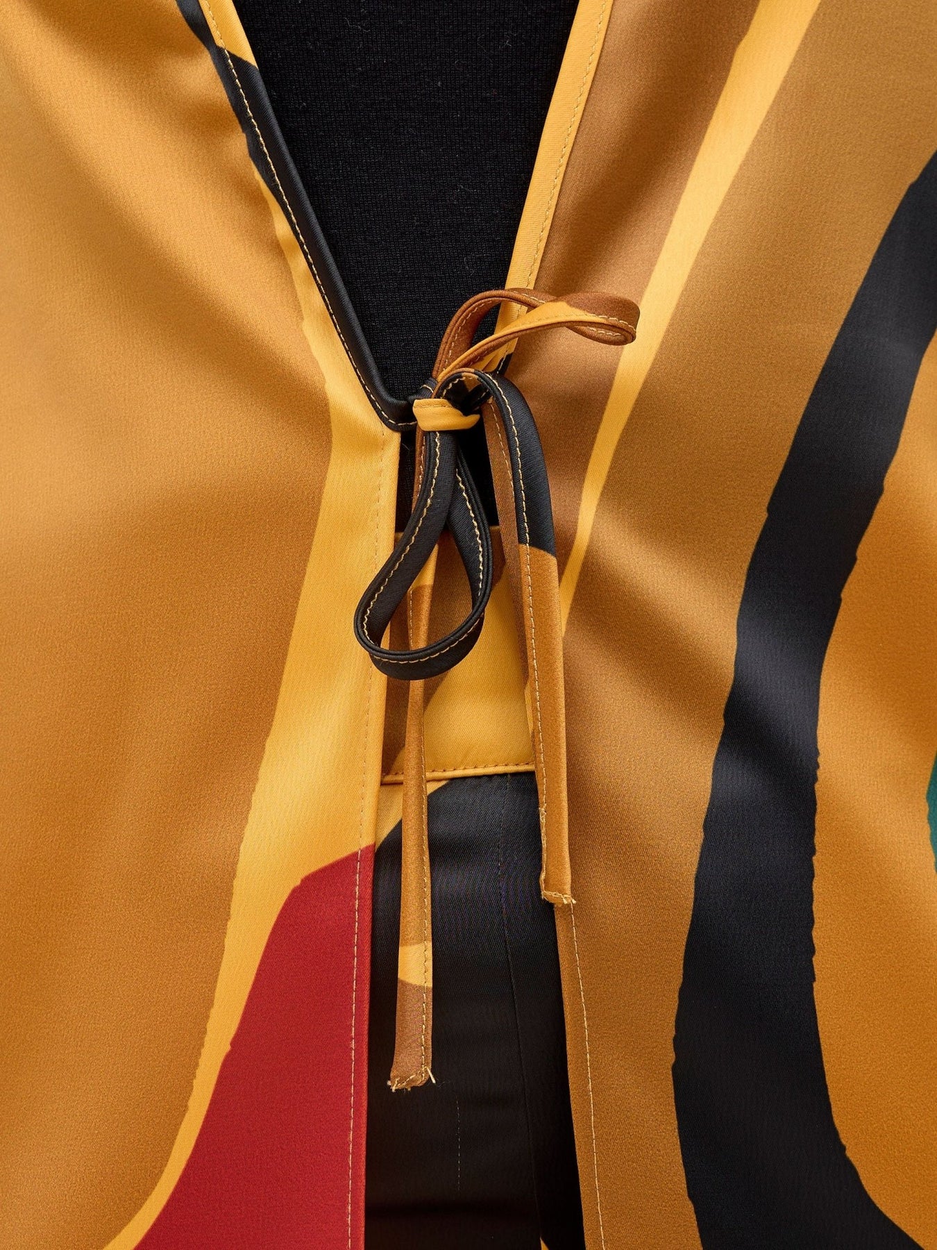 Vivo Kelemi Sleeveless Overcoat - Mustard / Red Waso Print