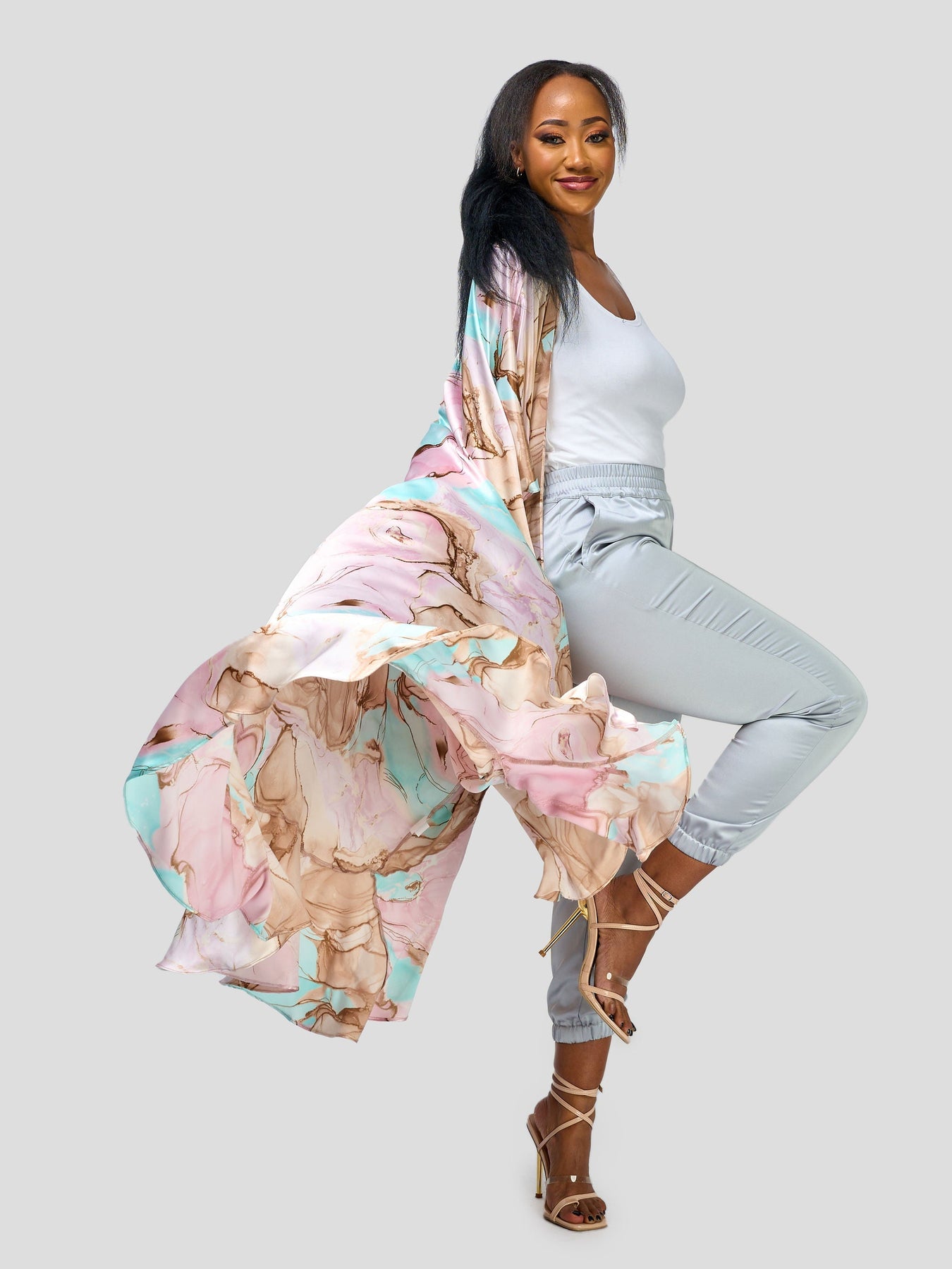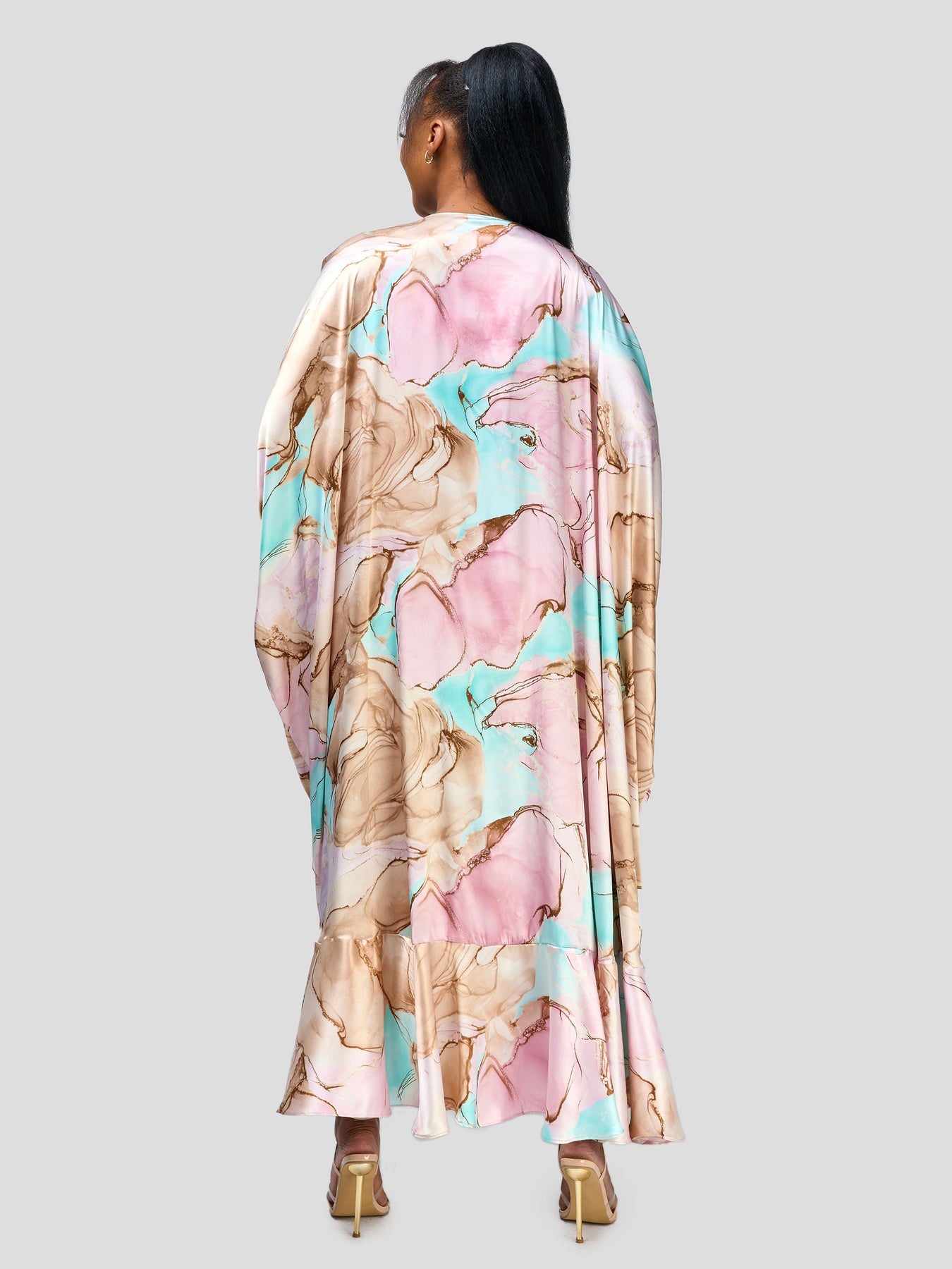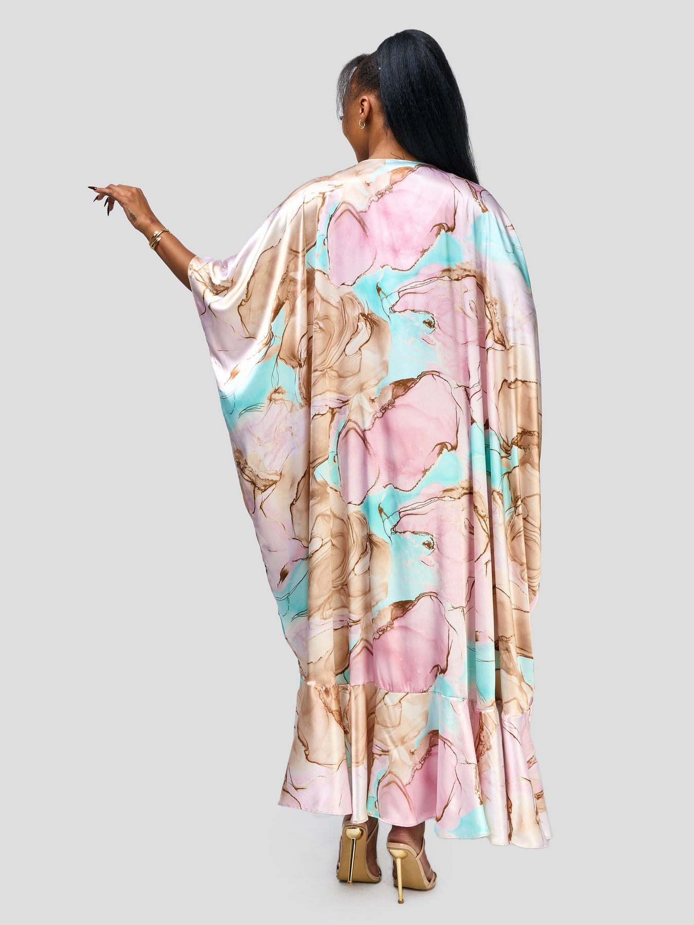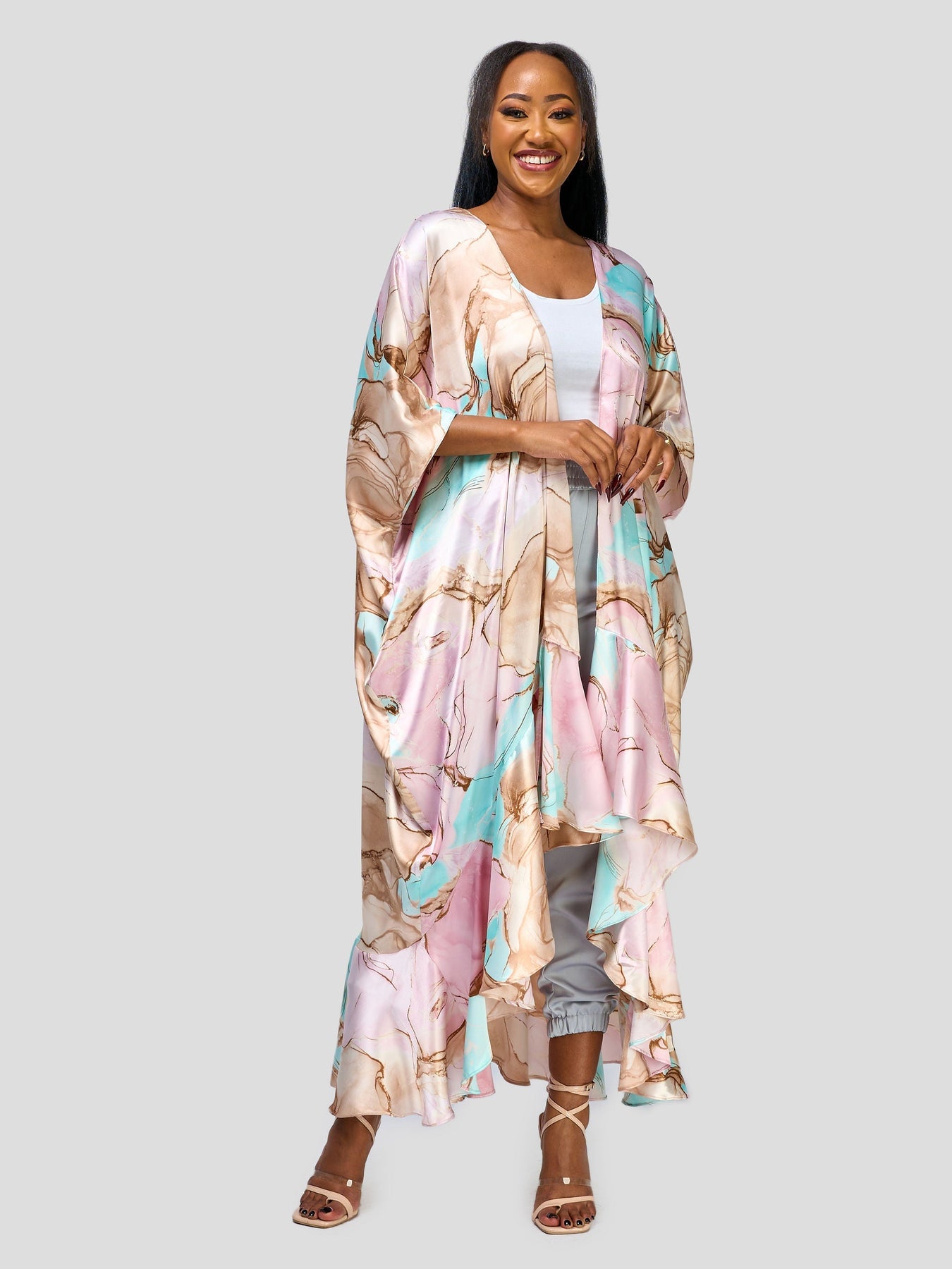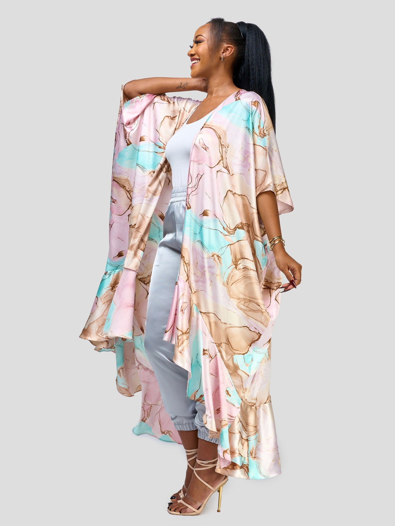 Vivo Nimali Satin Flounce Kimono - Dawn