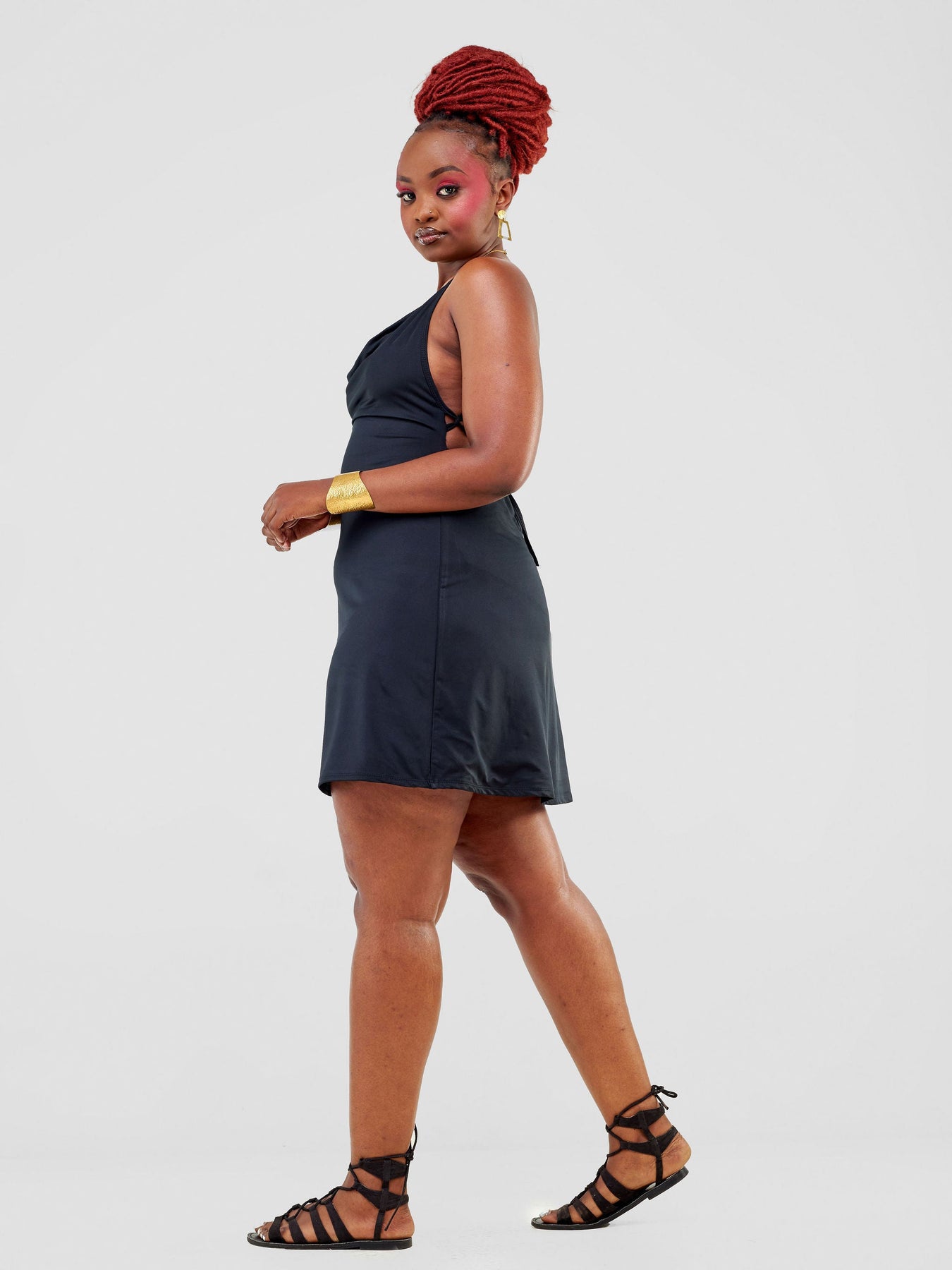 Zoya Party Cowl Bare Back Mini Dress - Black