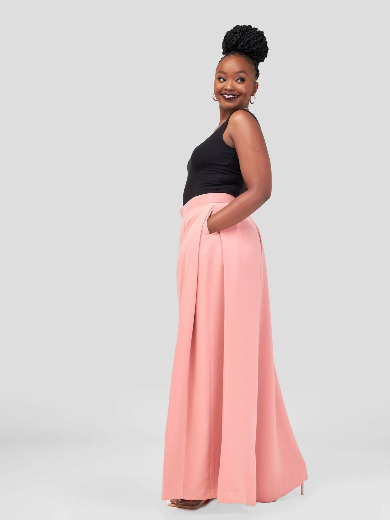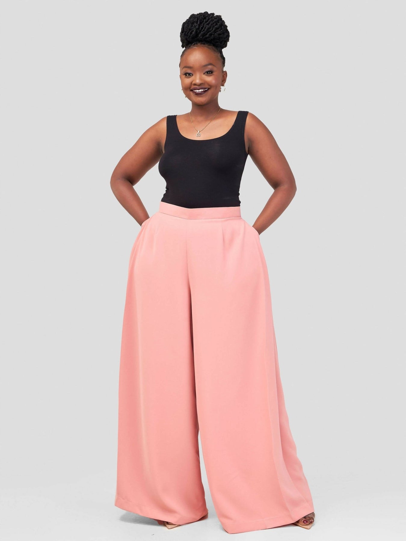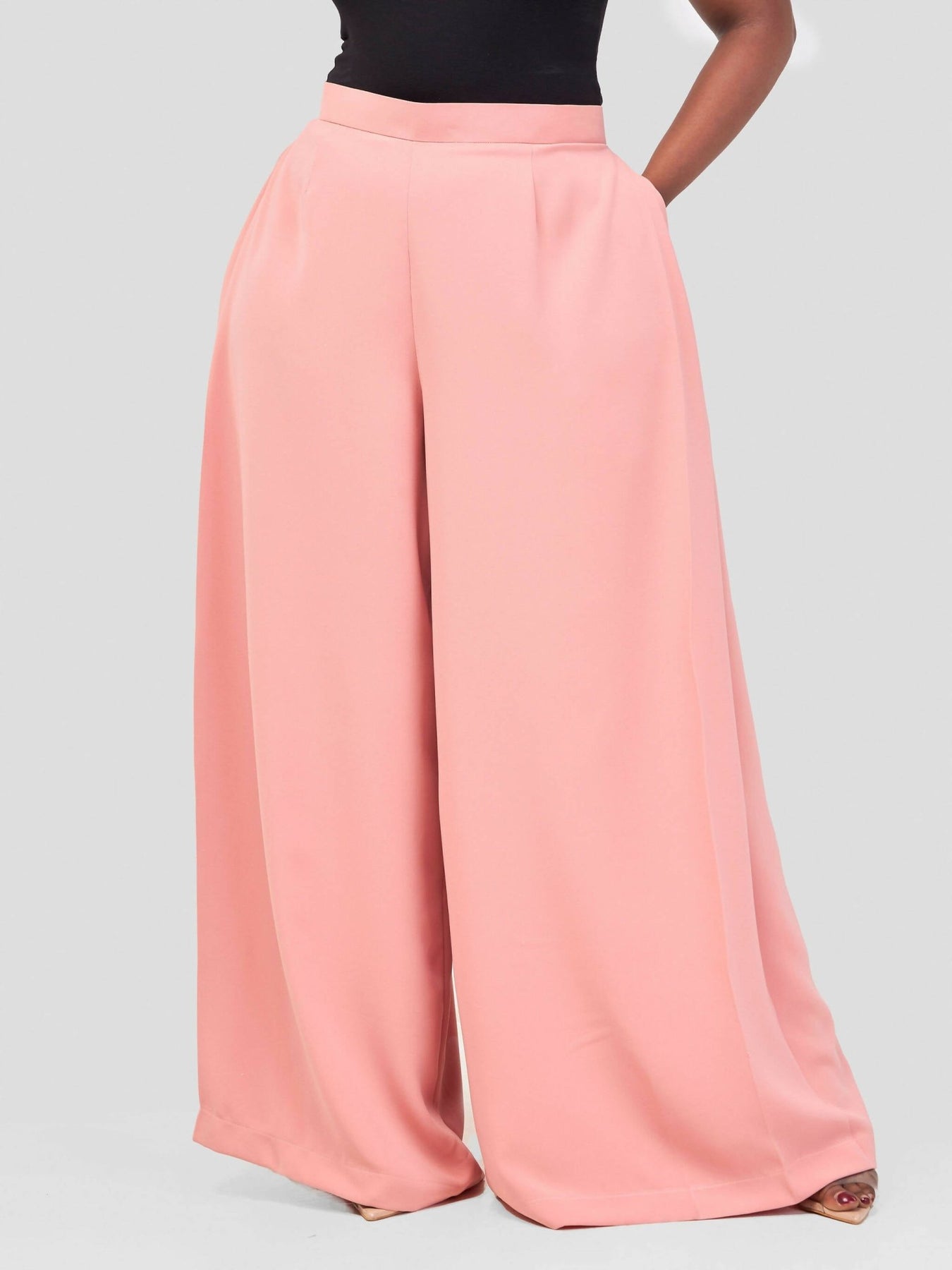 Discover Elegance in Comfort: Our Pink Palazzo Pants, Crafted from Luxurious Heavy Polyester Crepe. Perfectly tailored with defined side pleats and convenient pockets, these pants embody our commitment to size inclusivity and local craftsmanship. Elevate your wardrobe with our consciously created, effortlessly chic palazzos.
