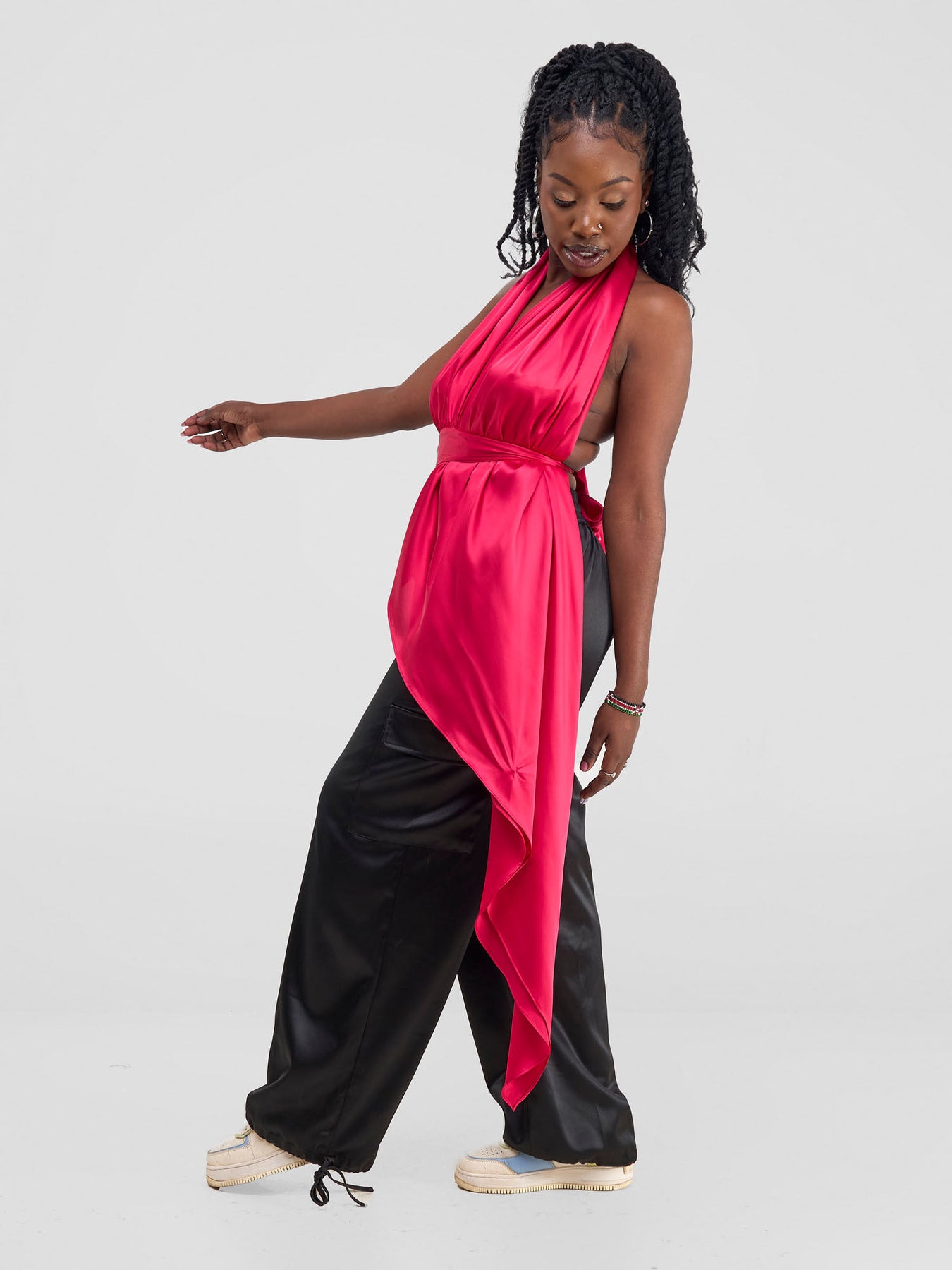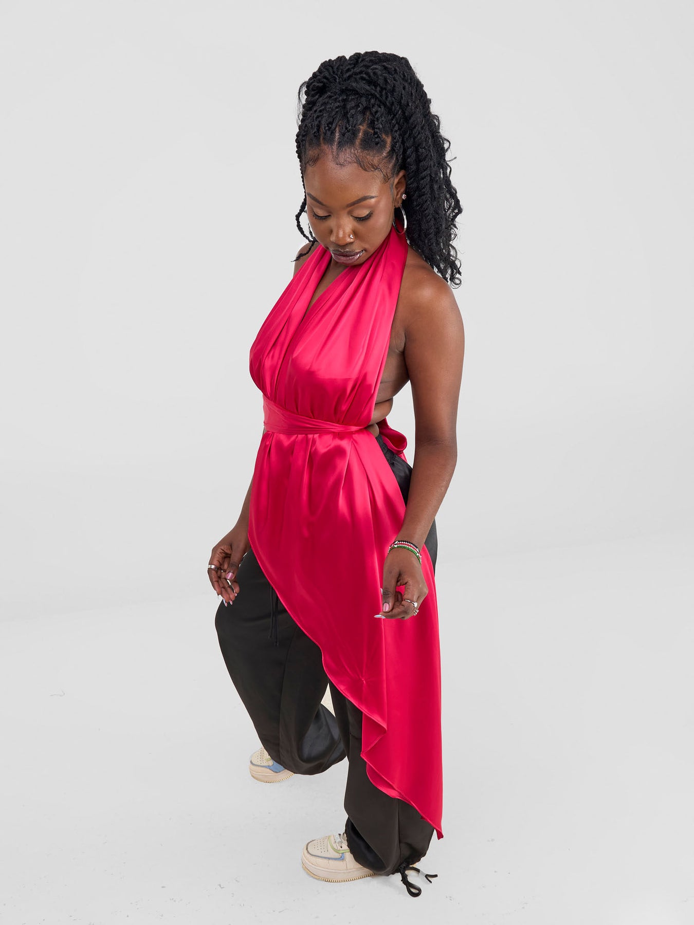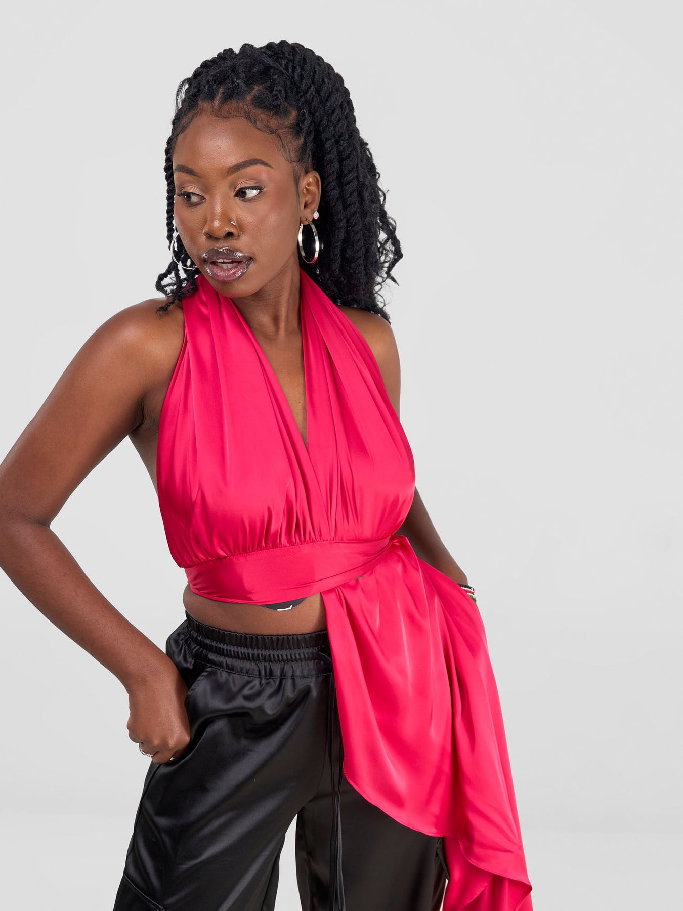 Introducing our fabulous tie top with a chic drape detail! Made from luxurious satin, this versatile piece is perfect for making a statement. With endless styling possibilities, you can rock this top on any occasion and stand out with effortless style.