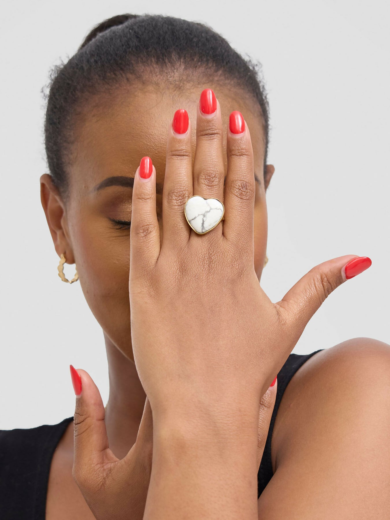 Exotic Gemstones Jewellers Howlite Crystal Ring - White - Shopzetu