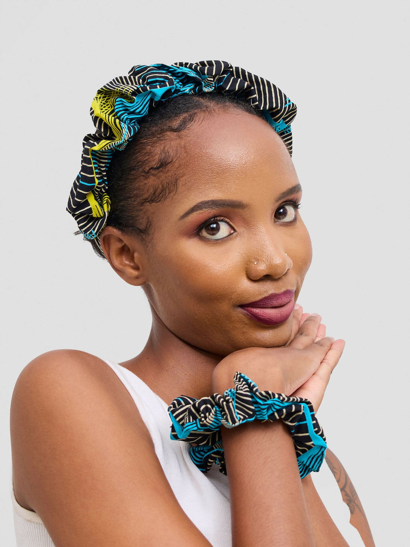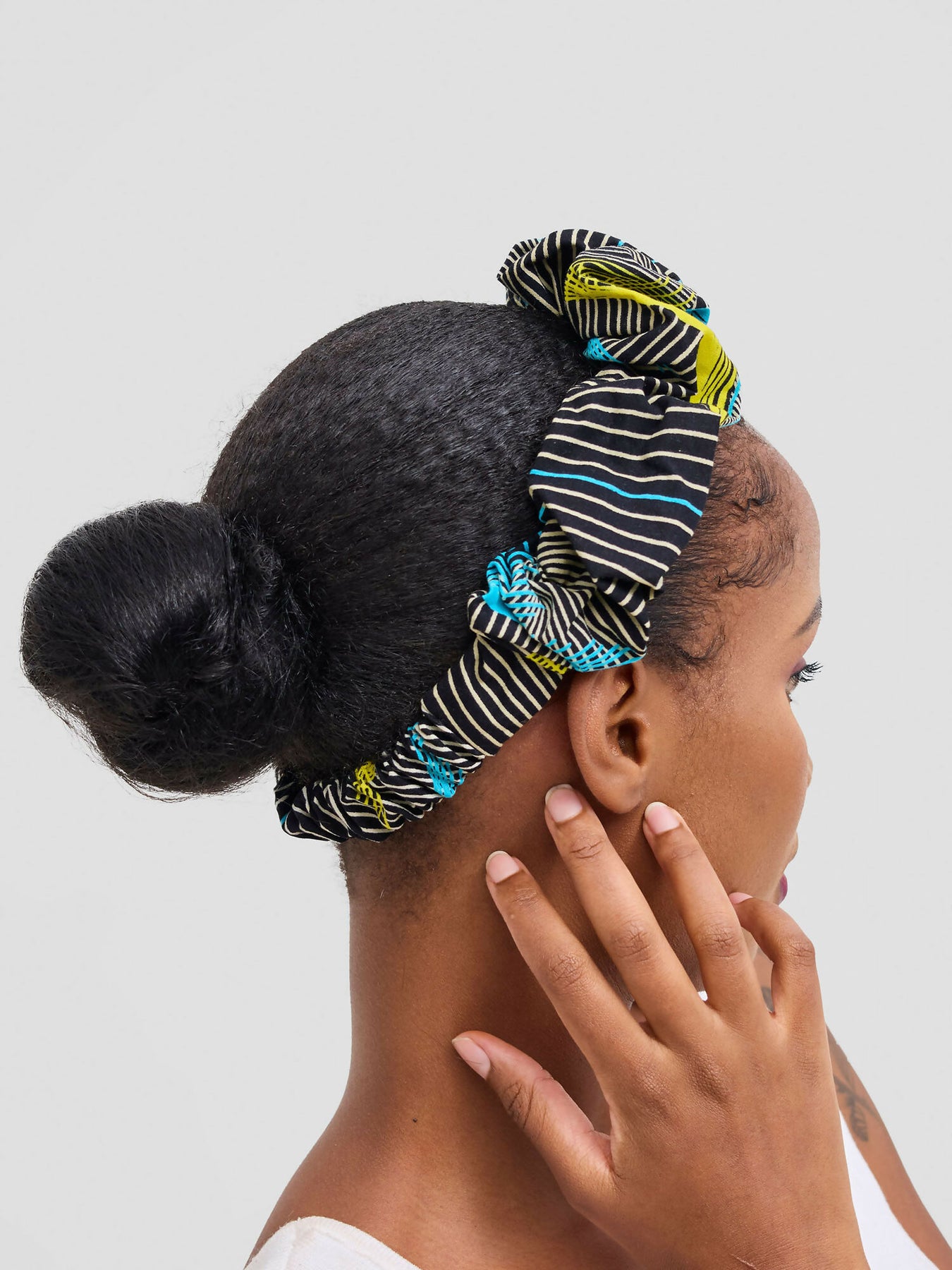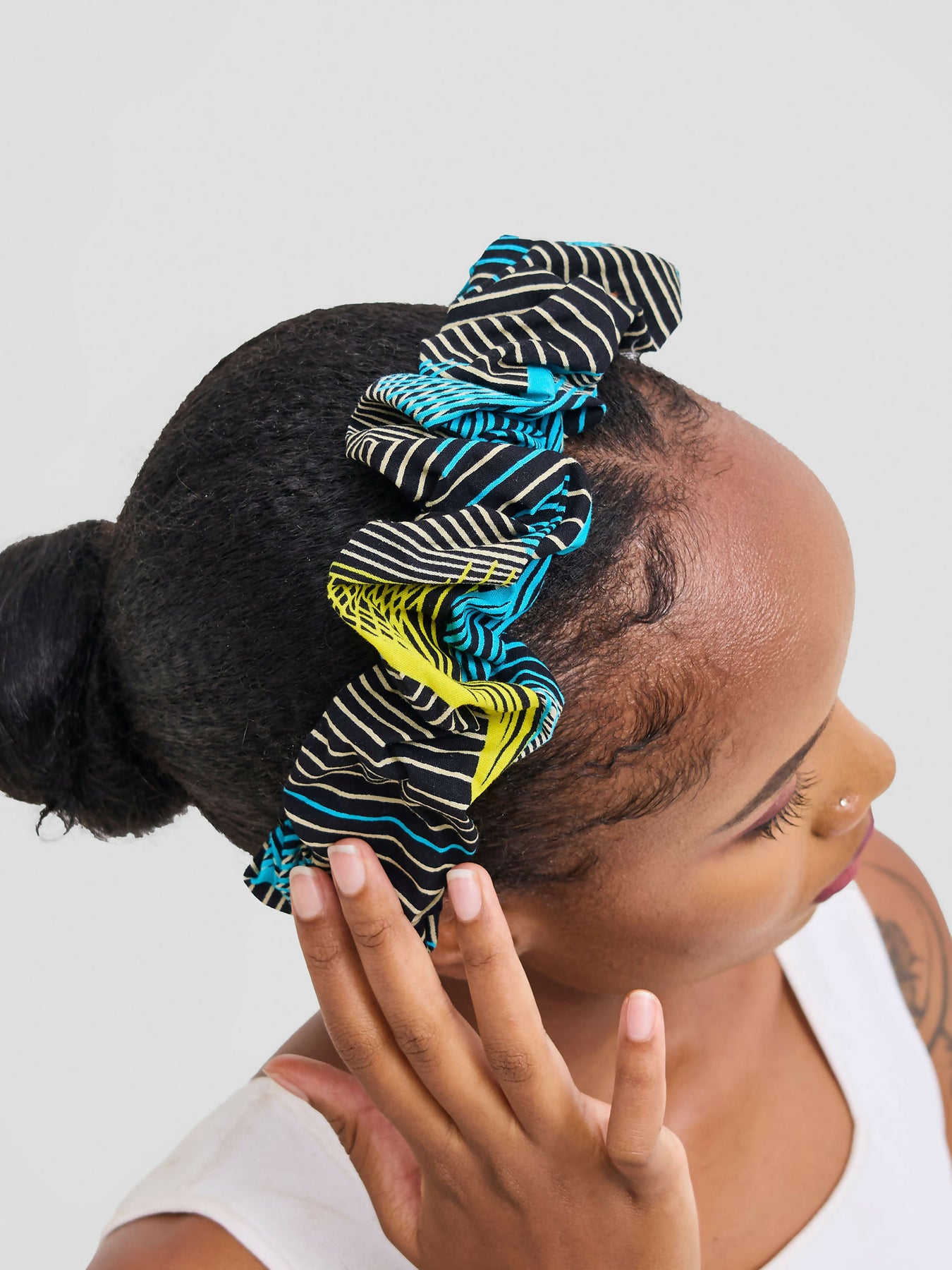 Proverbs 1 Scrunchie Gathered Majesty Headgear - Blue Print - Shopzetu