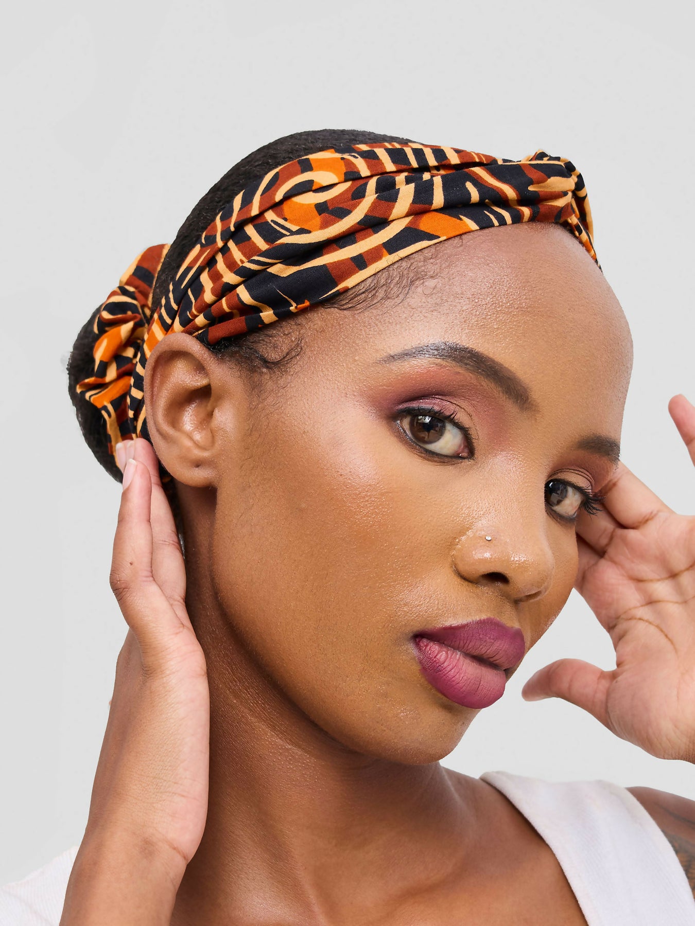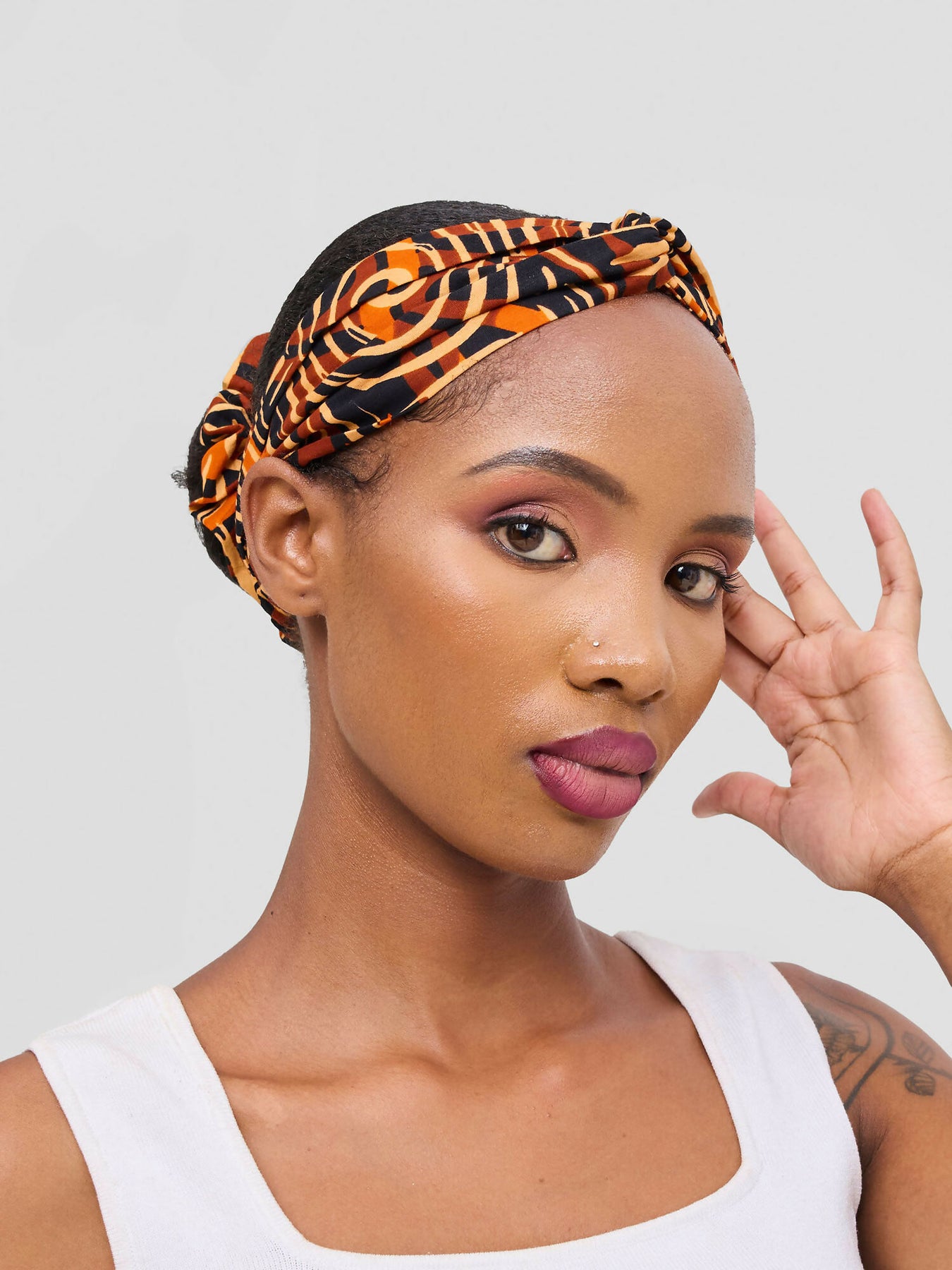Proverbs 1 Twist Spirited Coil Headgear - Brown Print - Shopzetu