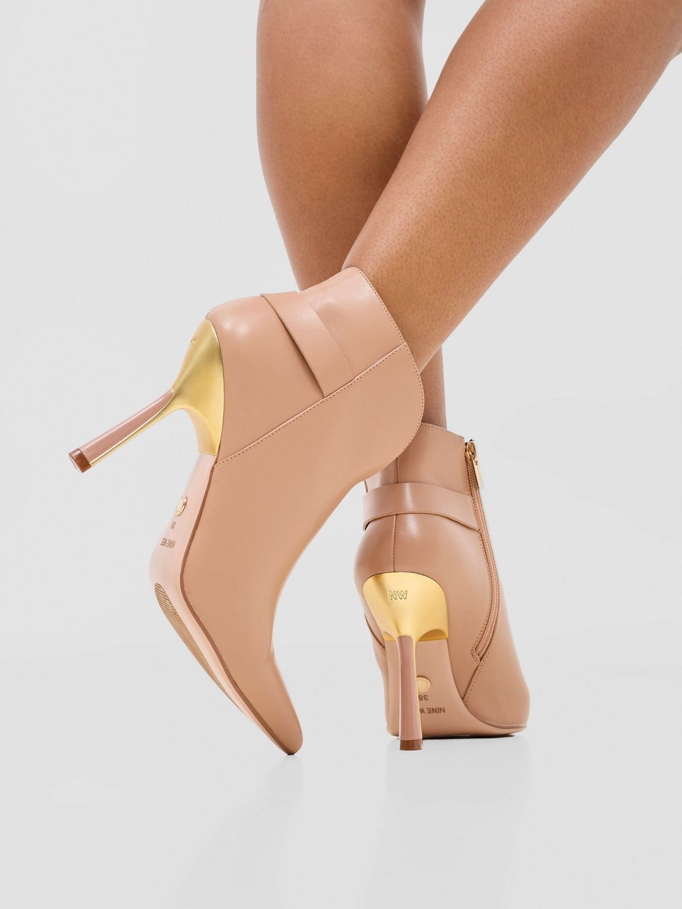 Introducing the Nine West Berril Booties in Nude. These stylish and versatile booties are crafted with high-quality materials and feature a sleek design that can easily be dressed up or down. With comfortable heel height and durable construction, these booties are perfect for any occasion.