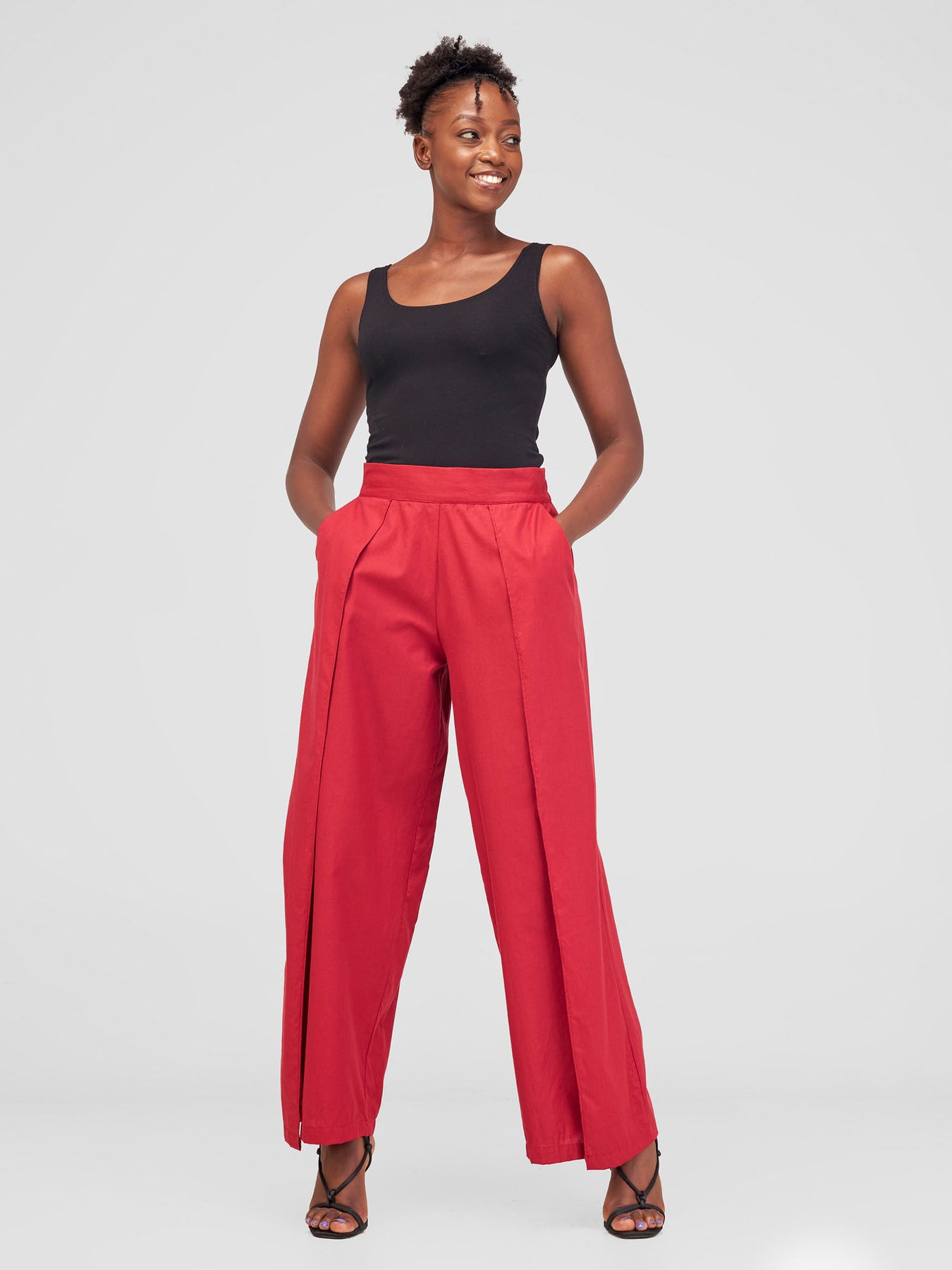 Safari by Vivo Haya Front Slit Wide Leg Pants - Red Koi Print