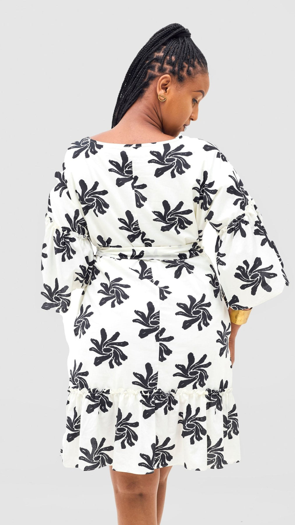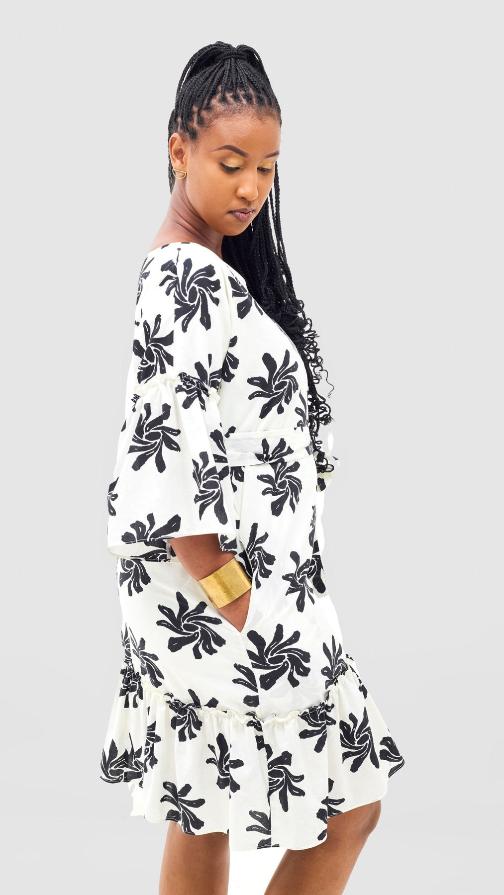 Safari Naledi Flounce Tent Dress - White / Black Nale Print - Shopzetu