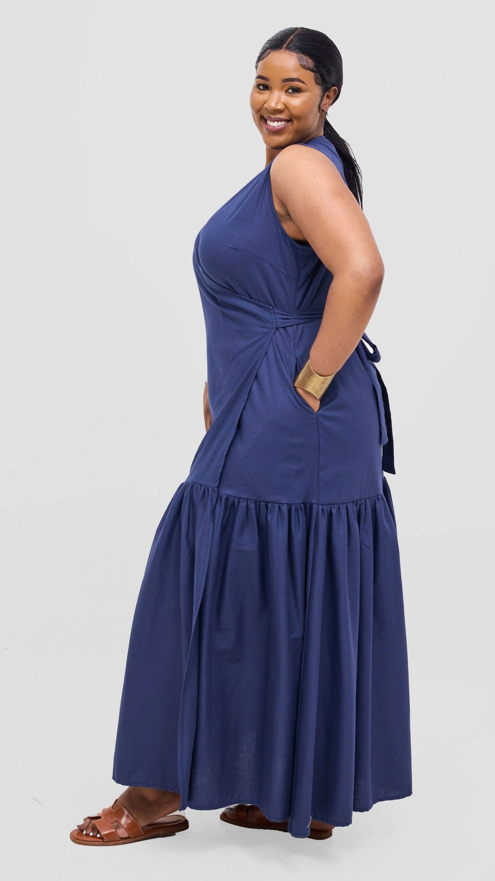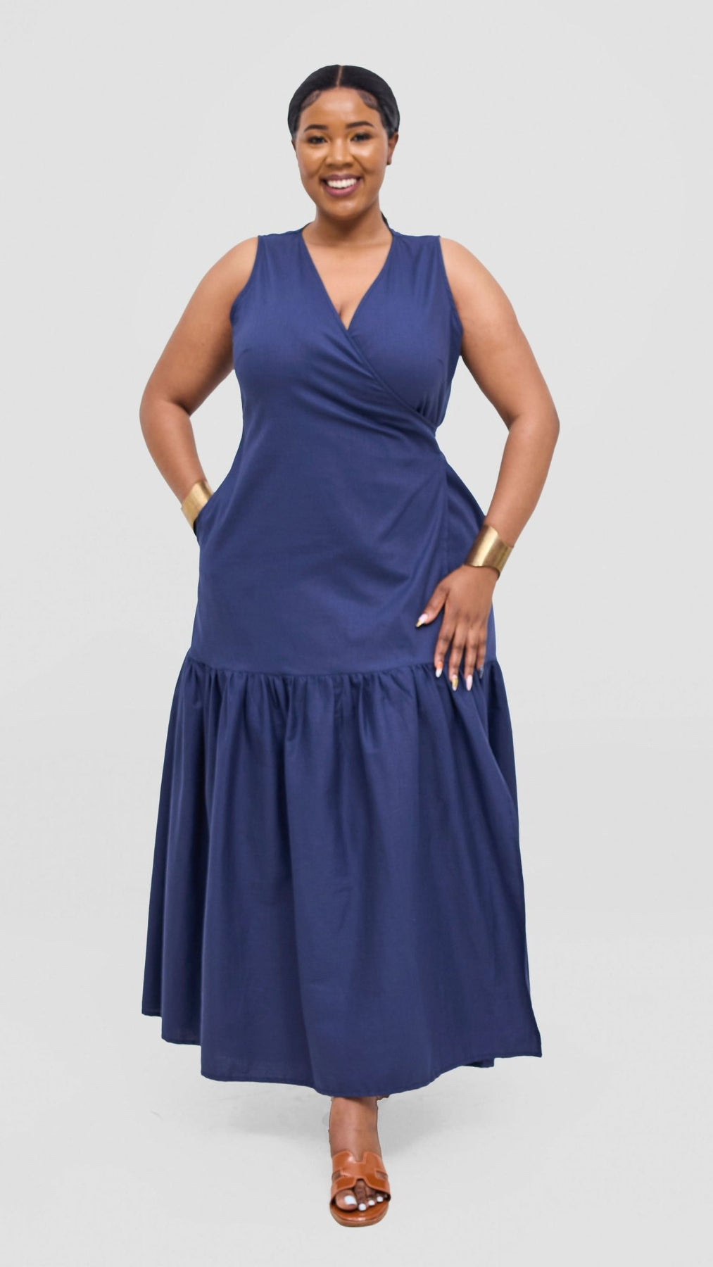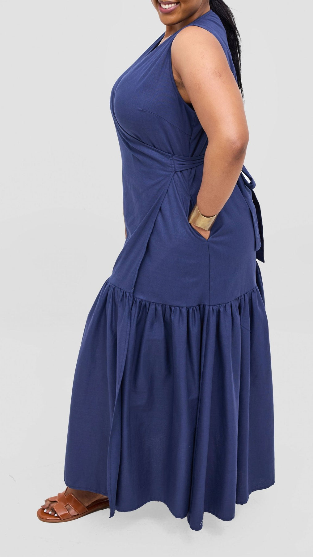Safari Naledi Gathered Panel Wrap Dress - Navy - Shopzetu