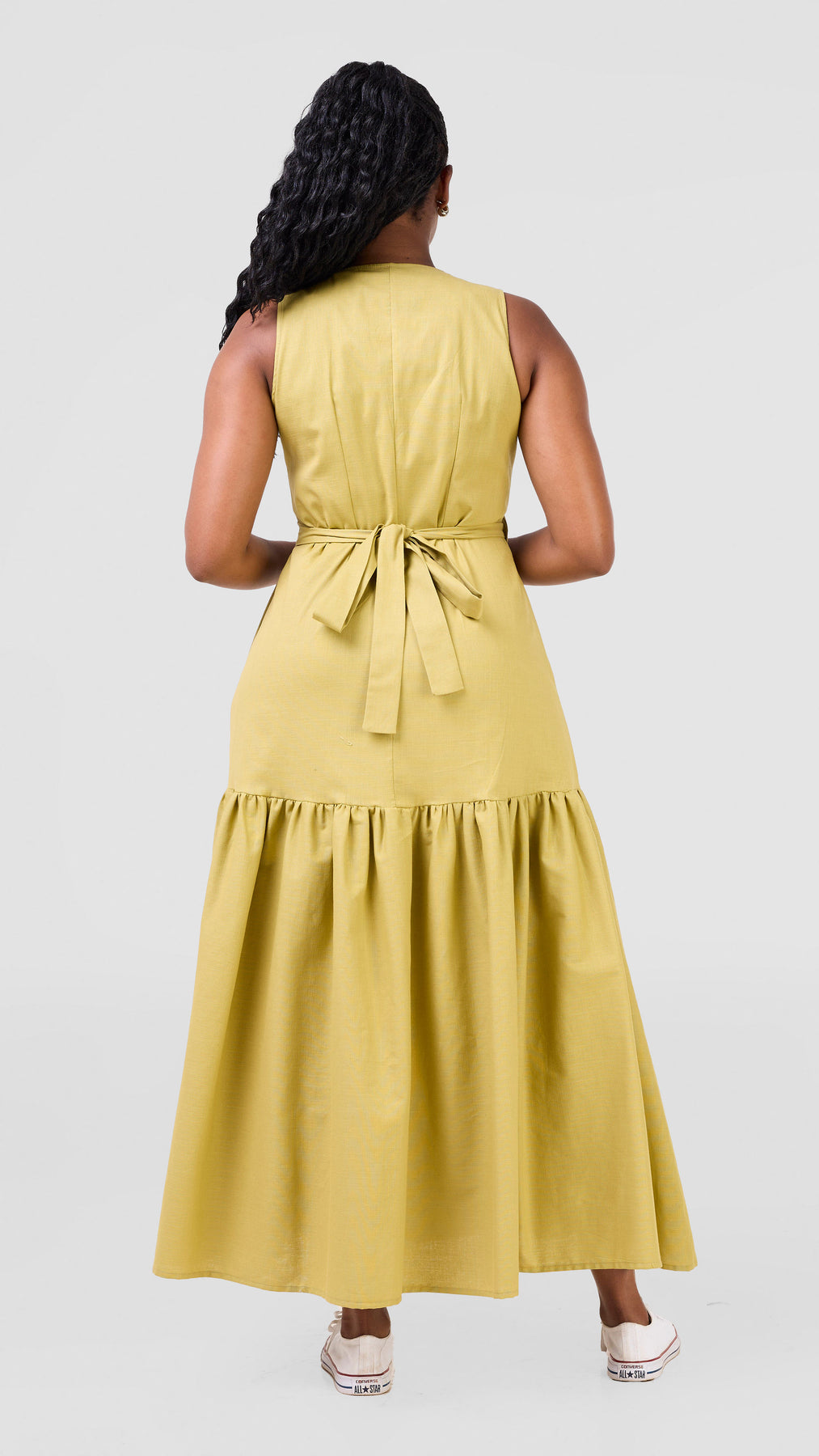 The Safari Naledi Gathered Panel Wrap Dress in olive offers a flattering silhouette with its gathered panels and adjustable wrap style. Designed for comfort and ease, it supports your confidence whether you're heading to a meeting or a casual outing. Its versatile design ensures you look polished while feeling comfortable all day long.