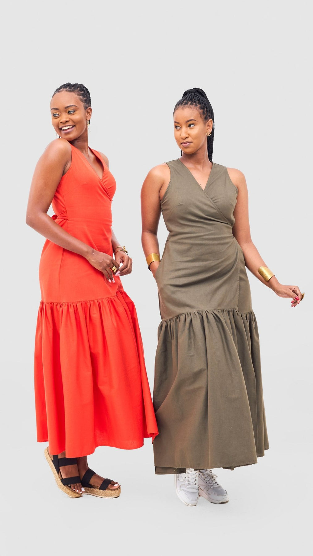 Safari Naledi Gathered Panel Wrap Dress - Orange - Shopzetu