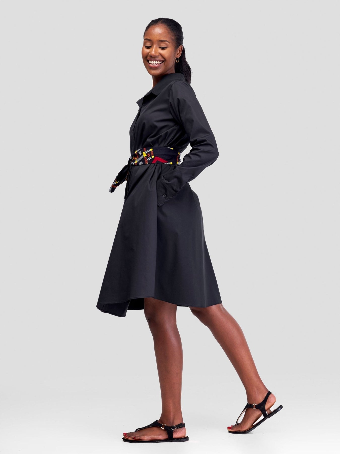 Safari Basic Shirt Tent Dress - Black - Shopzetu