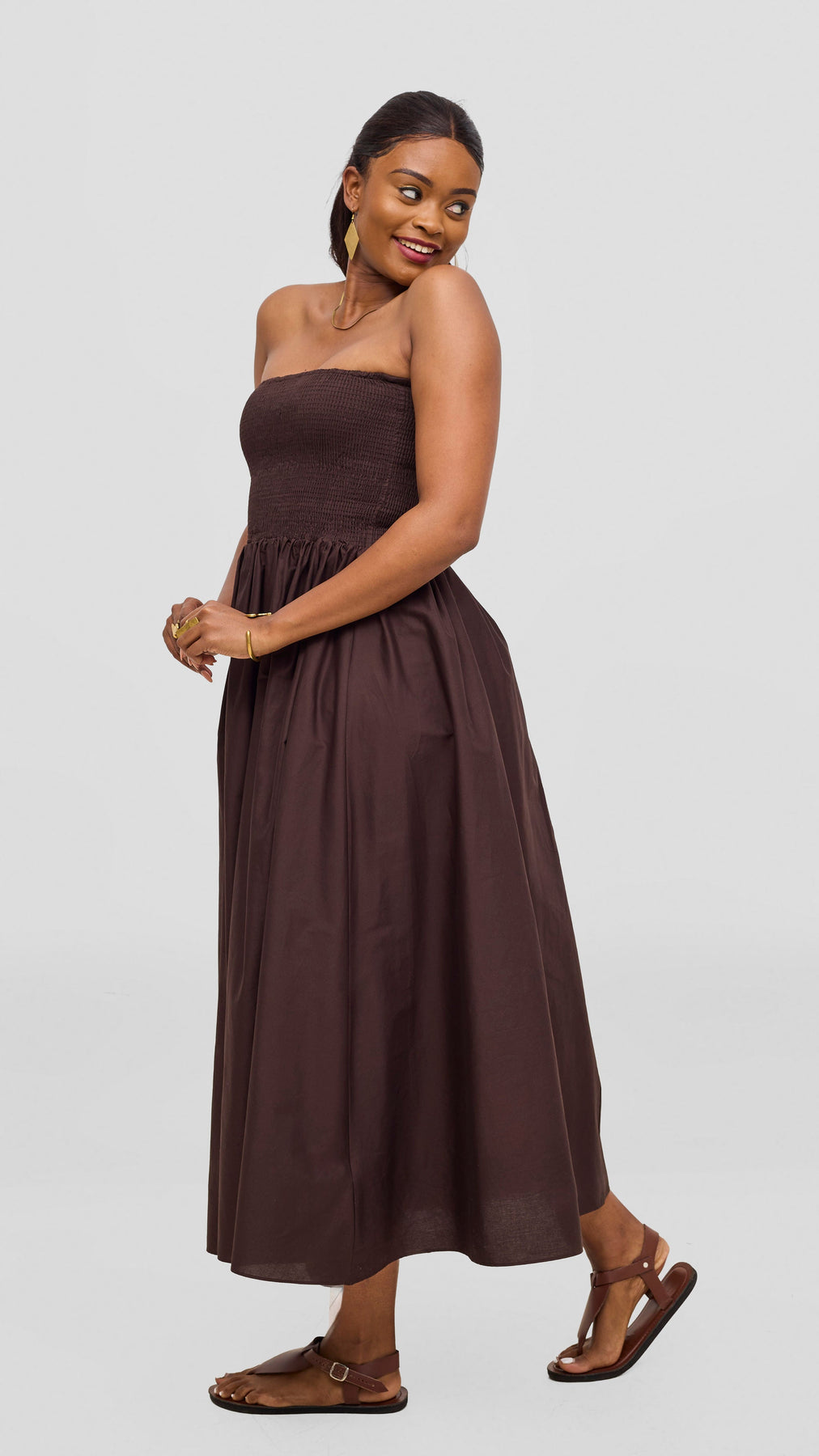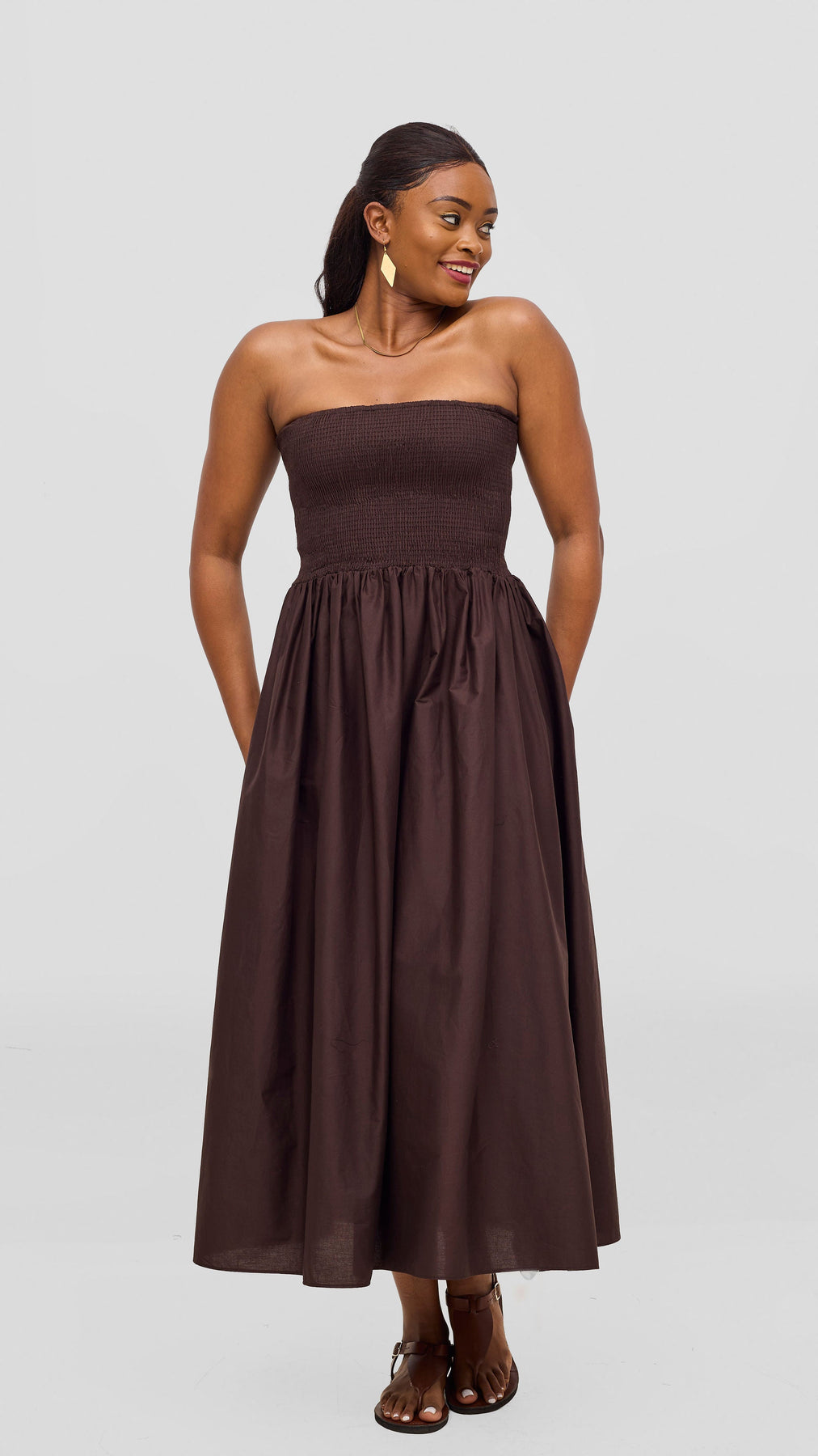 Discover the perfect blend of style and comfort with the Safari by Vivo Zehra Shirred Midi Dress in vibrant chcocolate . The thoughtfully designed shirring detail adds dimension and allows for natural movement, while the midi length provides a polished, versatile look. Whether you're heading to work, a gathering, or a casual day out, this dress adapts beautifully to any occasion. The rich red tone complements various skin tones and pairs effortlessly with your favorite accessories, making it a reliable choice for building a confident, expressive wardrobe.