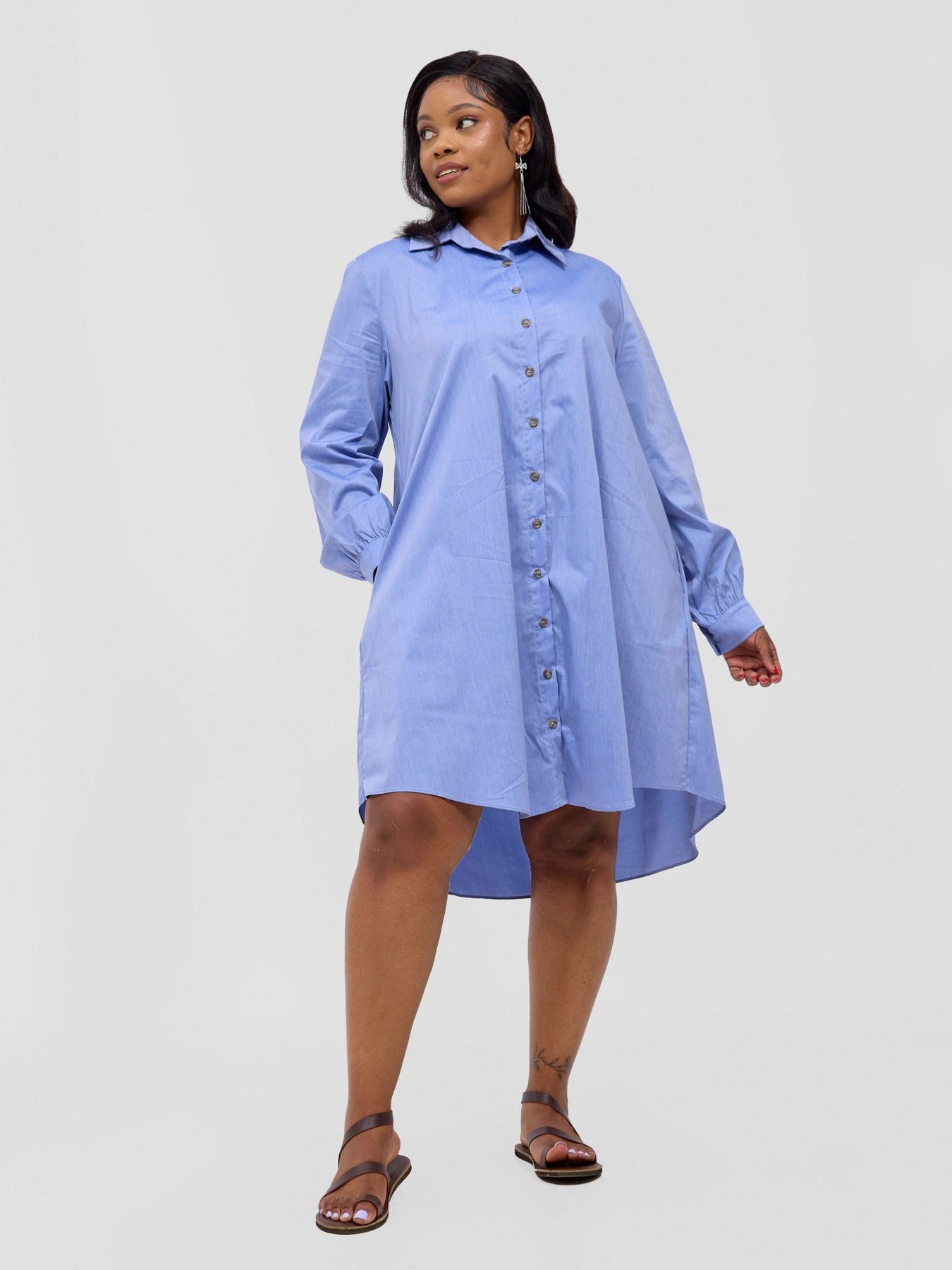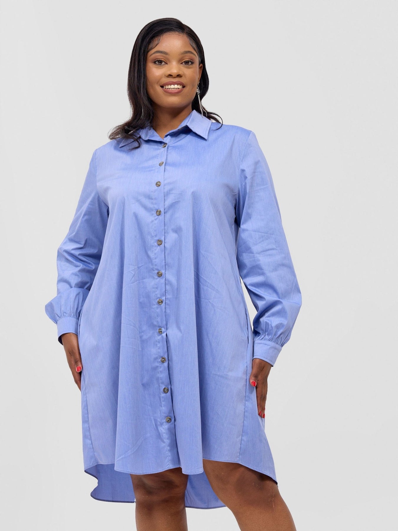 Safari Kaya Long Sleeve Shirt Dress - Blue - Shopzetu