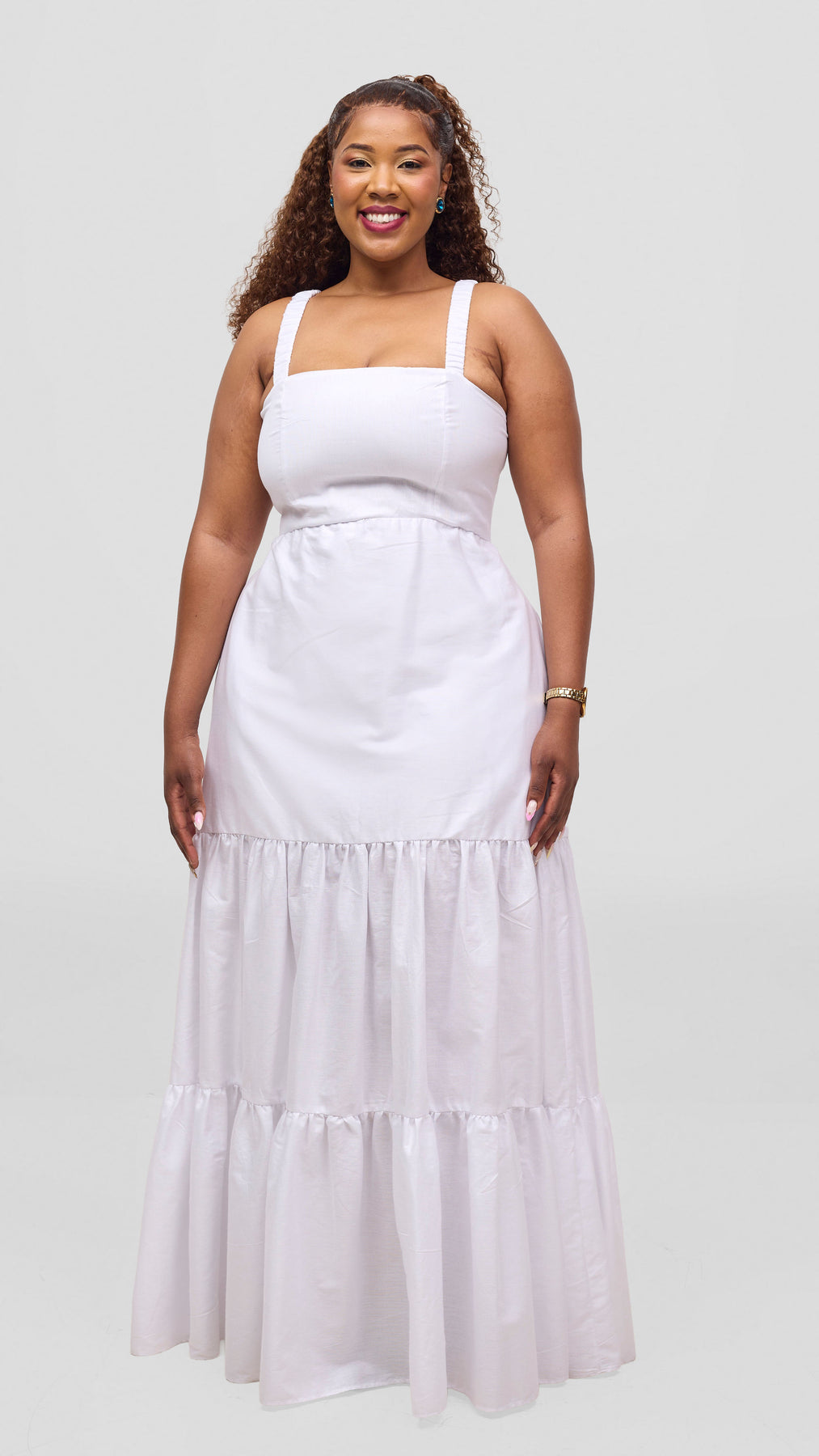 Experience understated luxury with this Safari Kikoy Tie Back Maxi Dress in pure white. Constructed from authentic kikoy textile, this floor-length silhouette showcases an elegant tie-back closure that creates graceful draping and visual interest. The lightweight, breathable fabric ensures comfort in warm climates while maintaining a refined aesthetic. Versatile and timeless, this dress seamlessly transitions from casual daytime wear to sophisticated evening occasions, making it an essential addition to any discerning wardrobe.