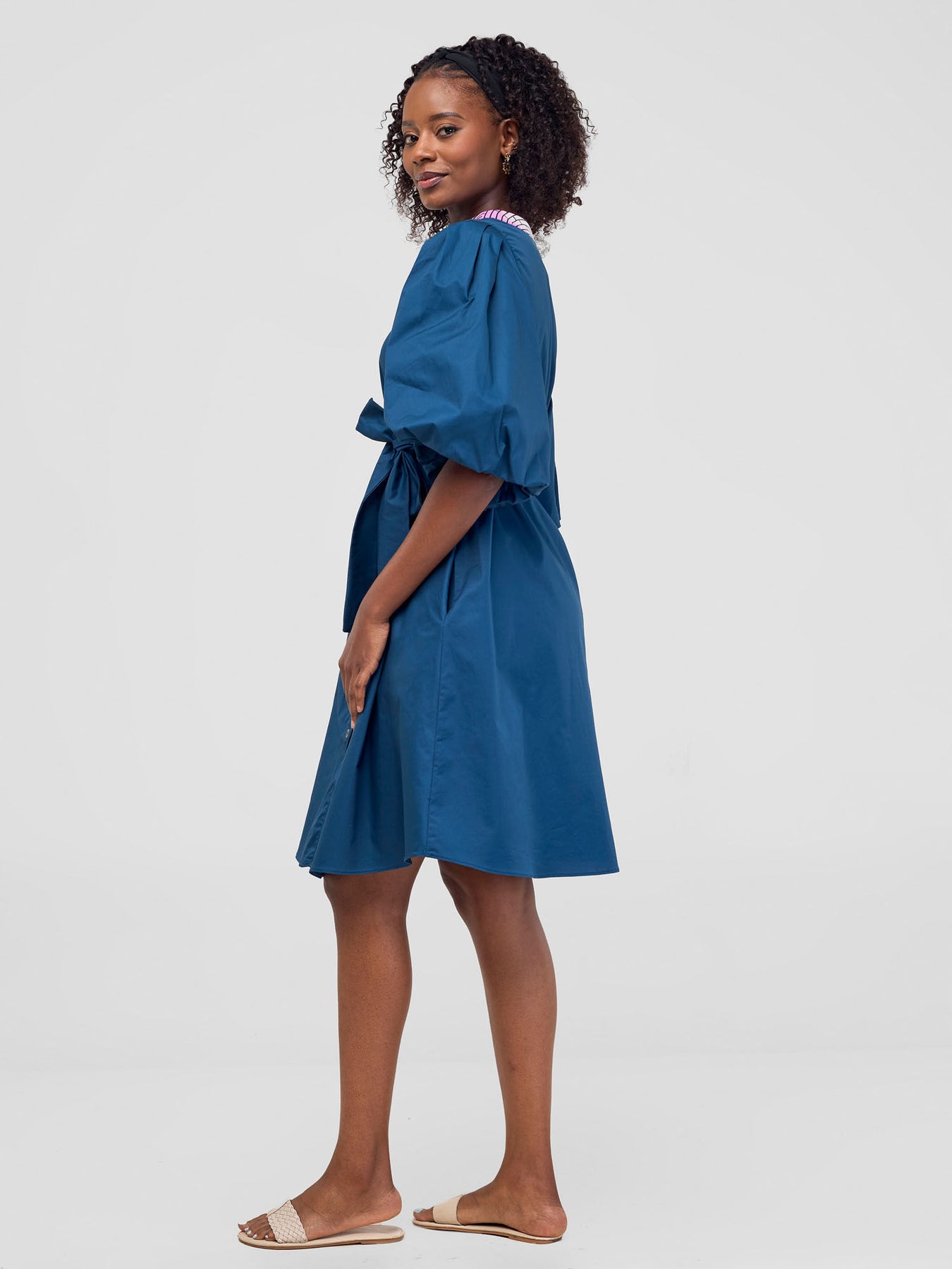 • Style: Button up detail, 3/4 puff gathered sleeves, comes with ankara belt