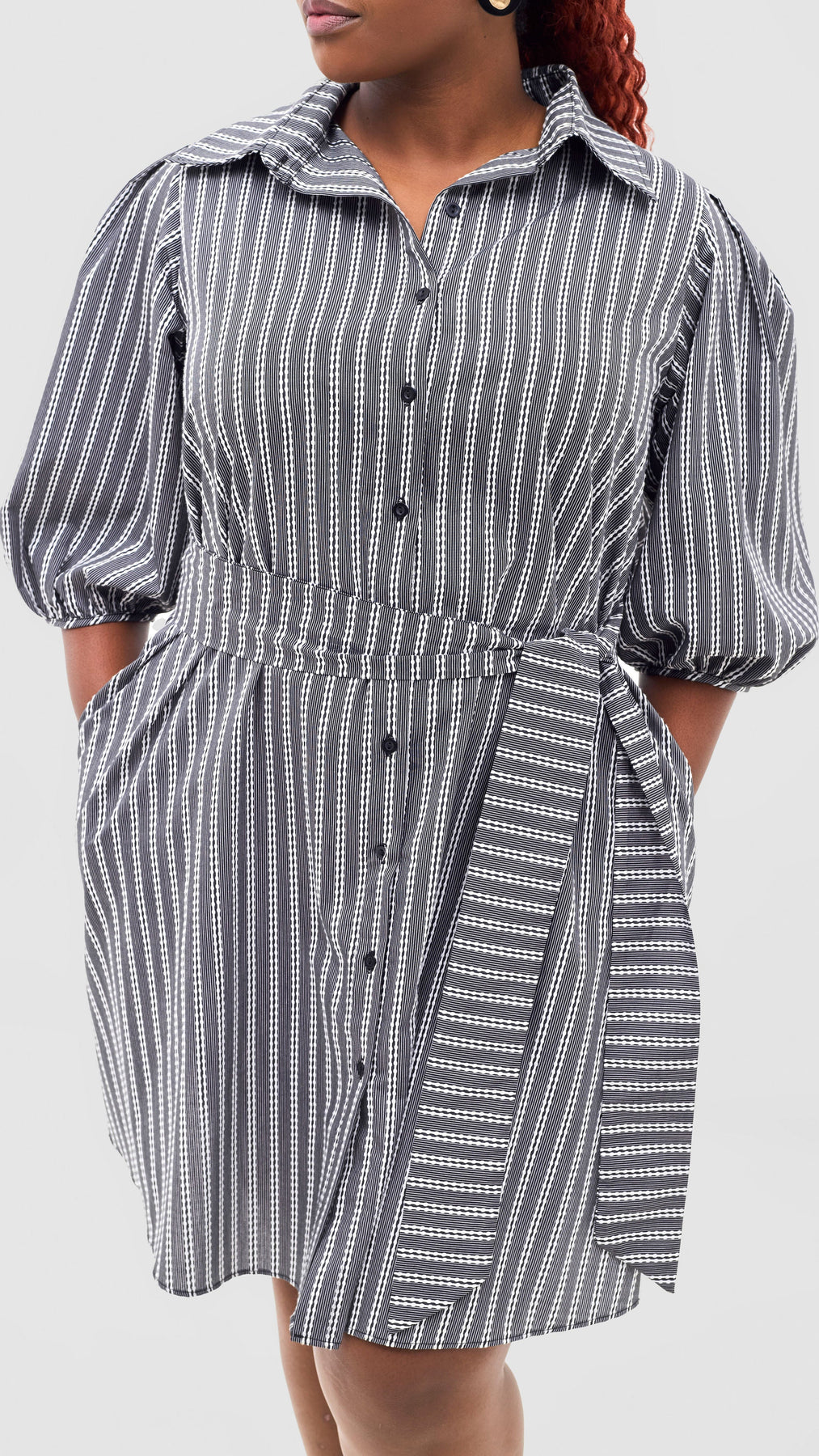 Safari Naledi 3/4 Sleeve Tent Dress - White Polka Stripes