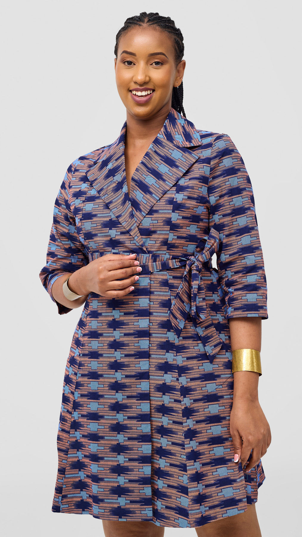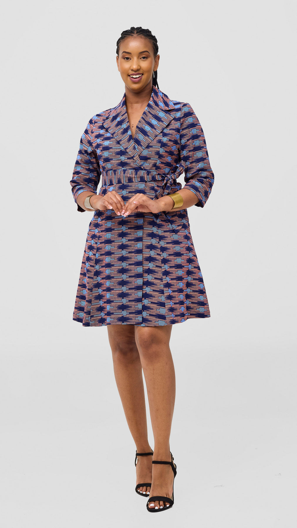 Embrace elegance and comfort with the Safari Nazari Coat Dress in Navy and Pink Bakari Print. This stylish piece combines a graceful coat dress silhouette with vibrant Bakari patterns, perfect for making a confident statement. Its flattering design offers ease of movement while adding a splash of color to your wardrobe. Ideal for both casual outings and special occasions, this dress supports your unique style with thoughtful detail and quality craftsmanship.