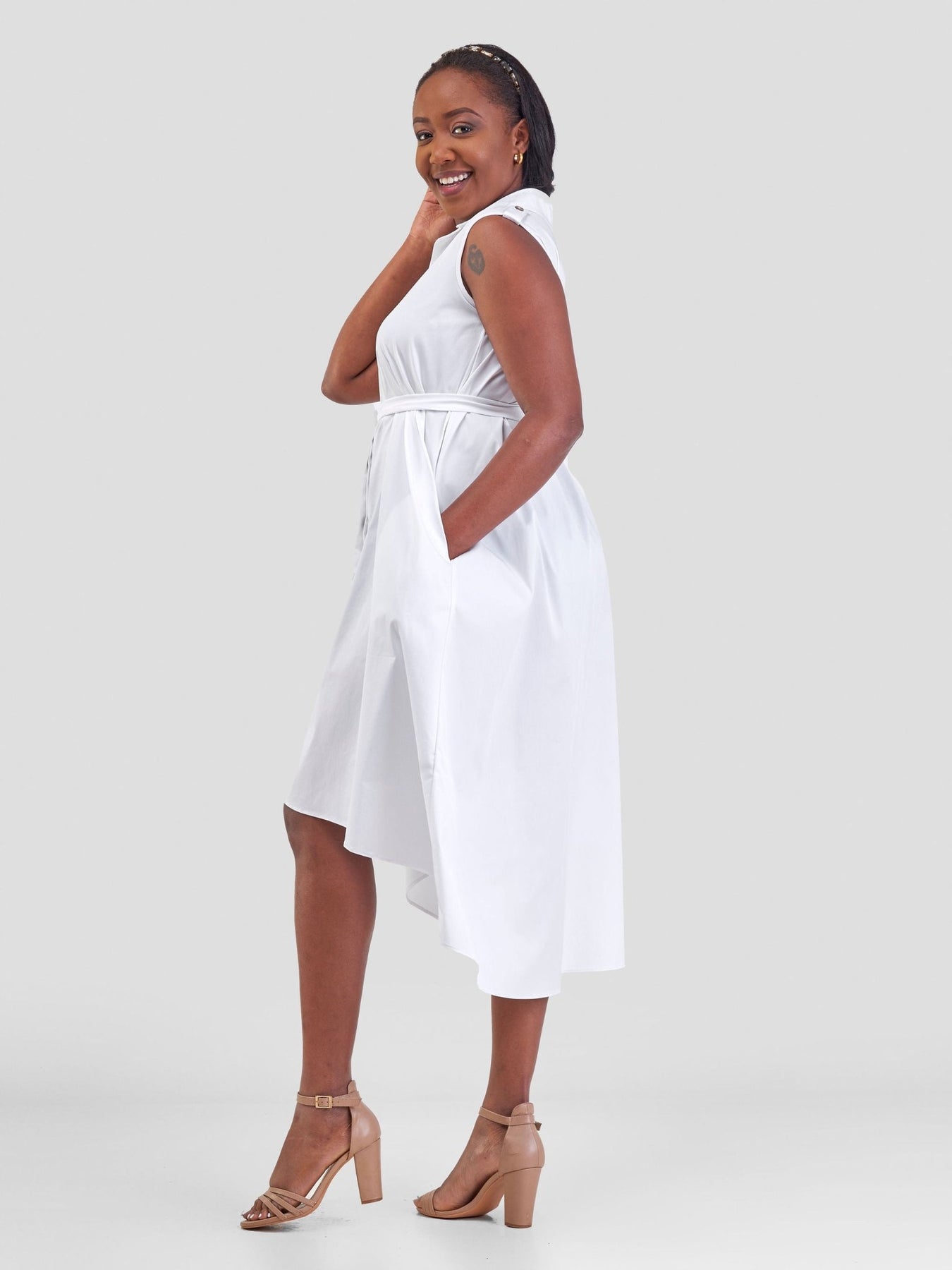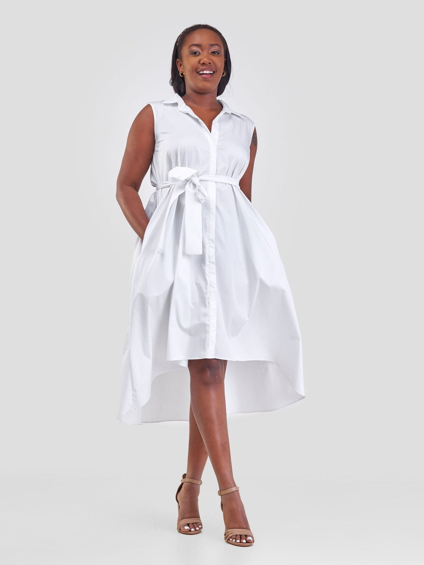 Safari Zene High Low Shirt Dress - White - Shopzetu