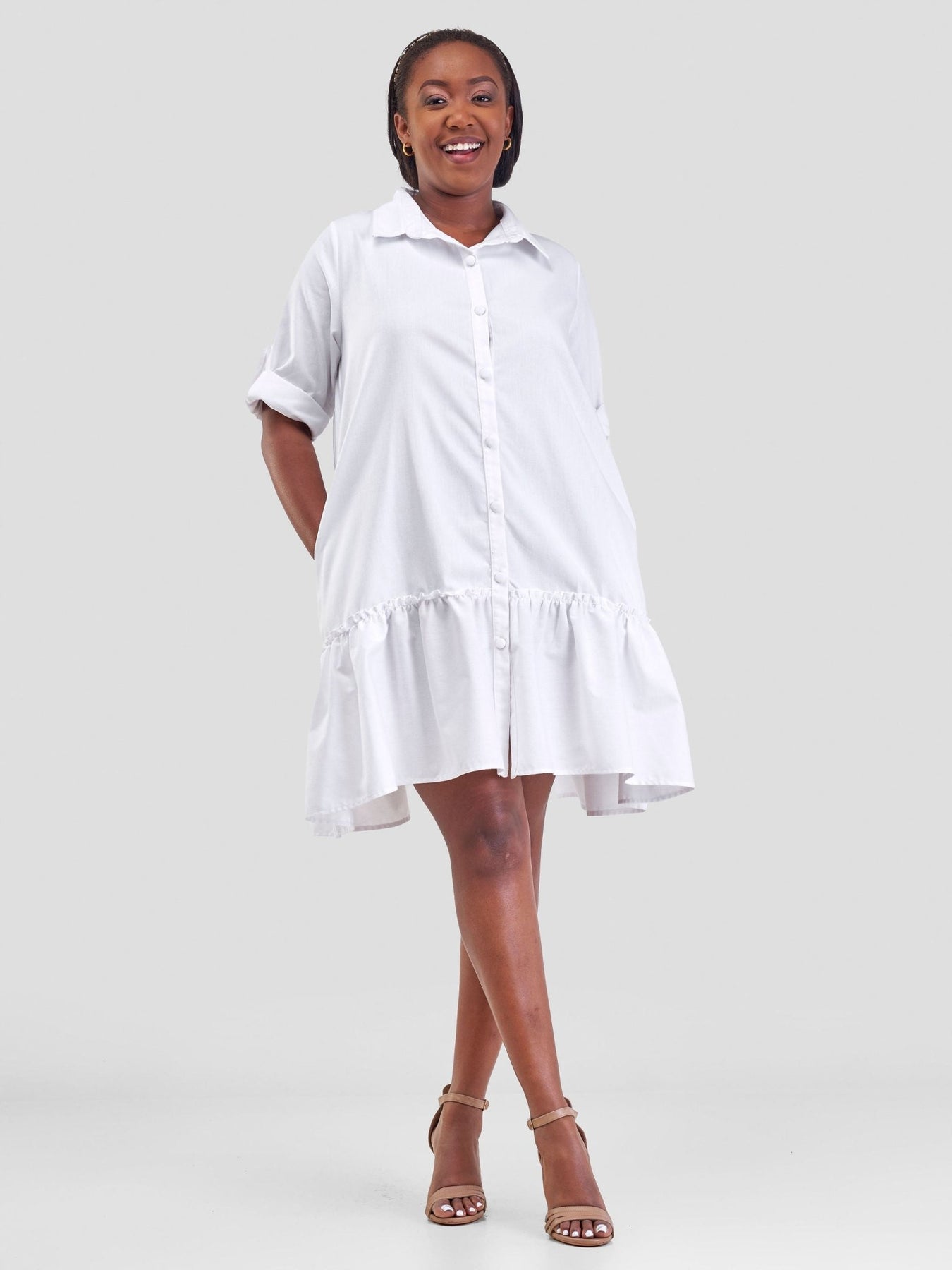 Safari Zene Tiered Above Knee Dress - White - Shopzetu