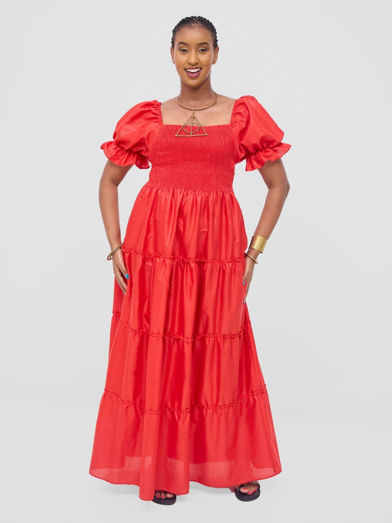 Product Name : Safari Kikoy Shirred Top Maxi Dress