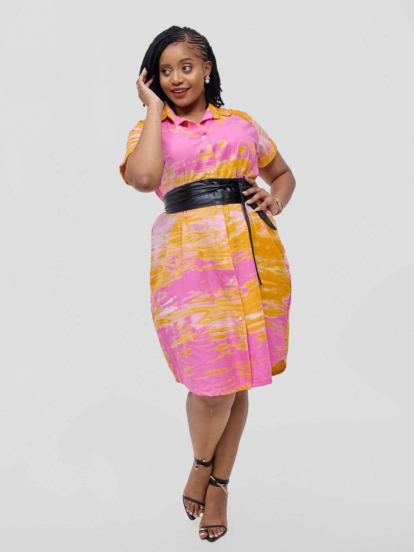 Hand Dyed Cotton Shirt Dress - Orange / Pink - Shopzetu