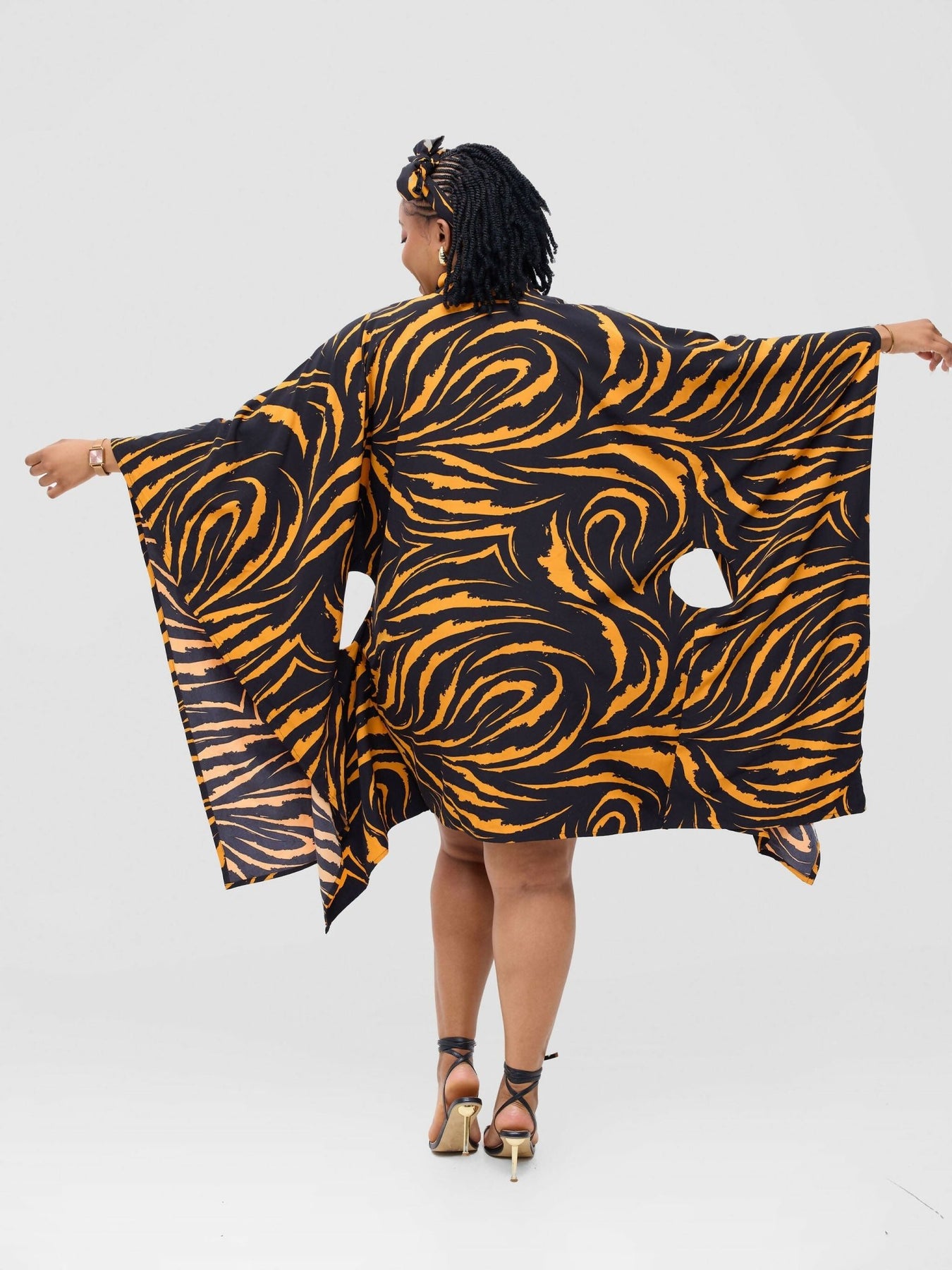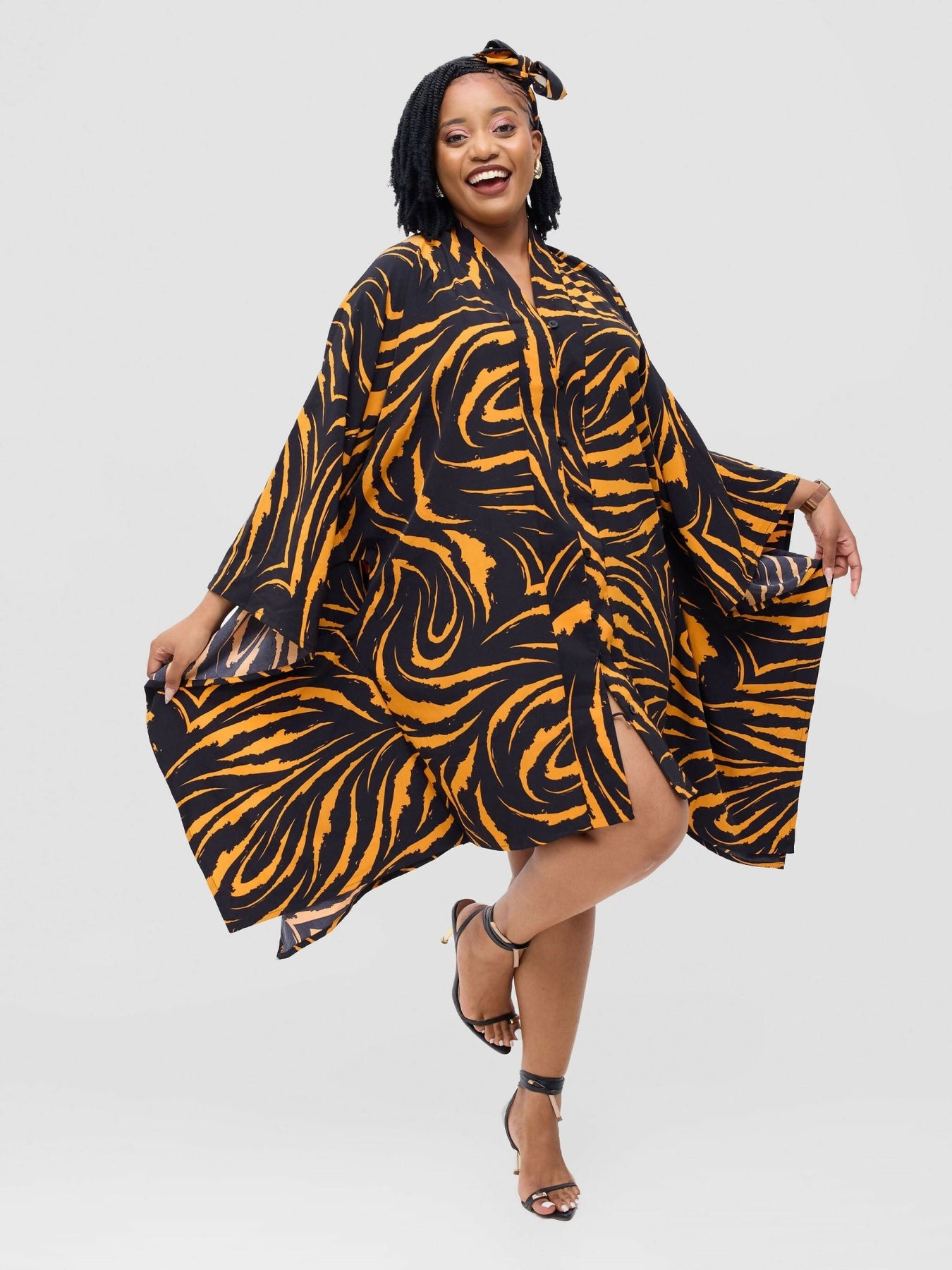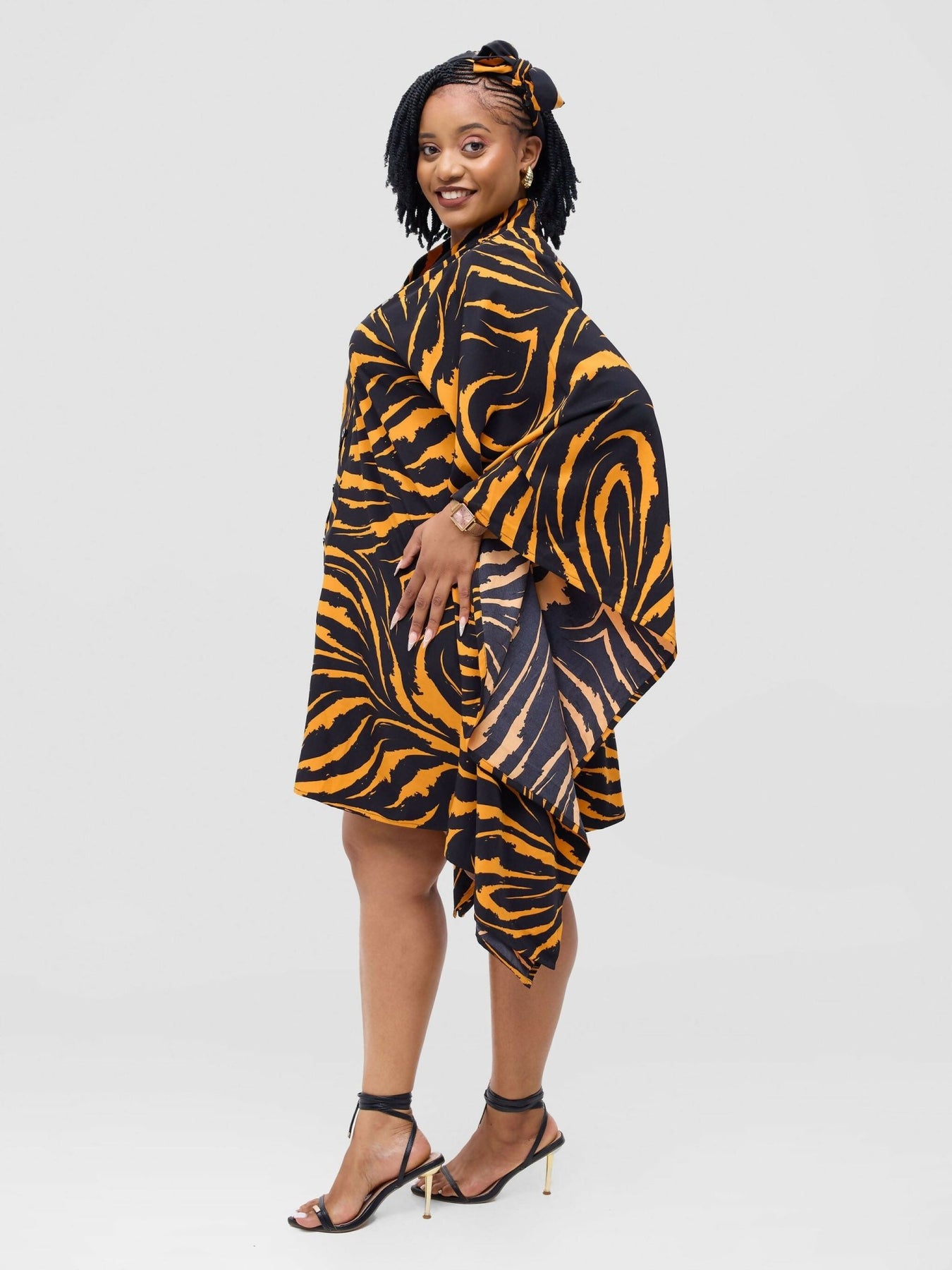 Kaftan Shirt Dress - Mustard / Black / Yellow - Shopzetu