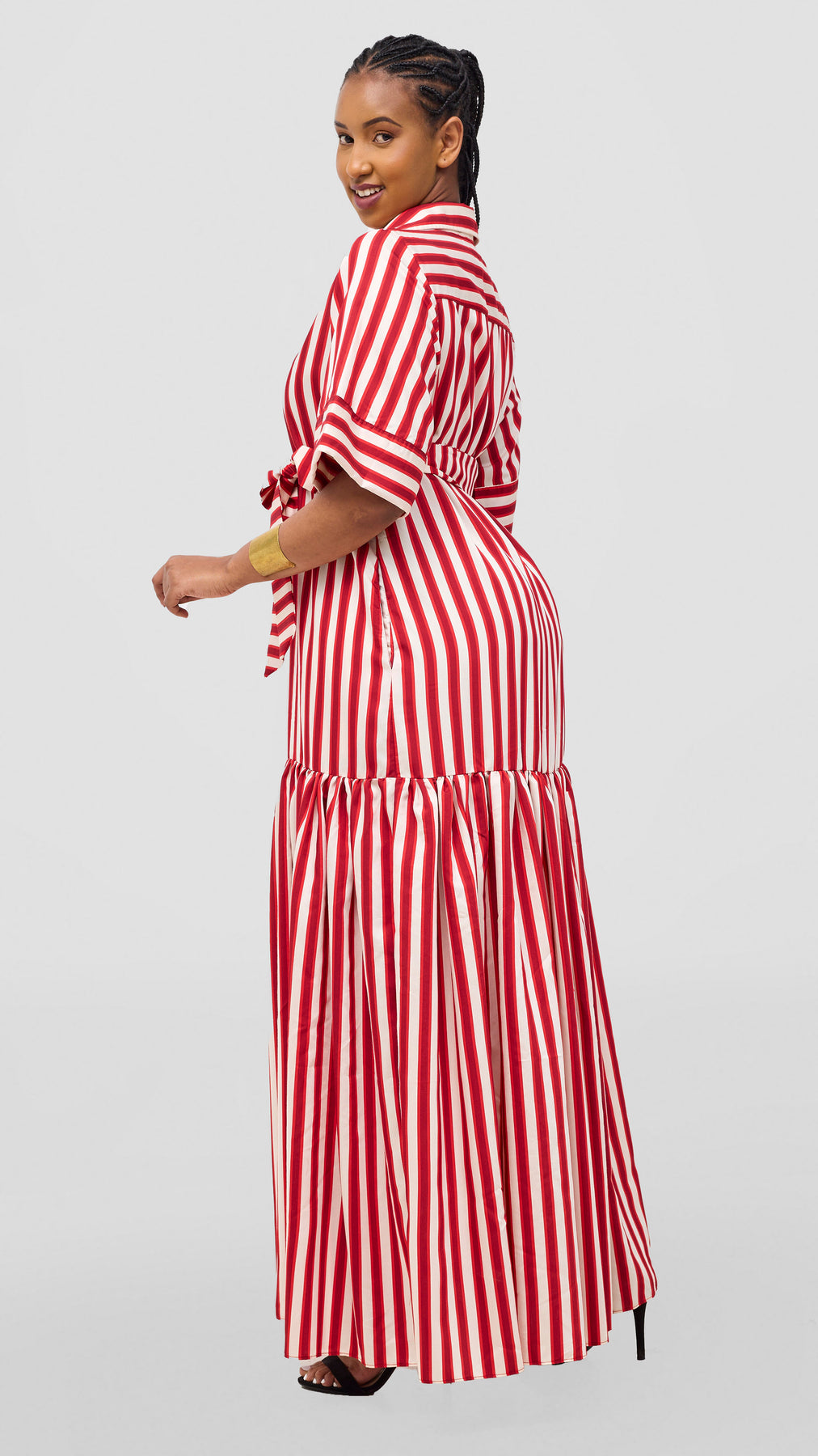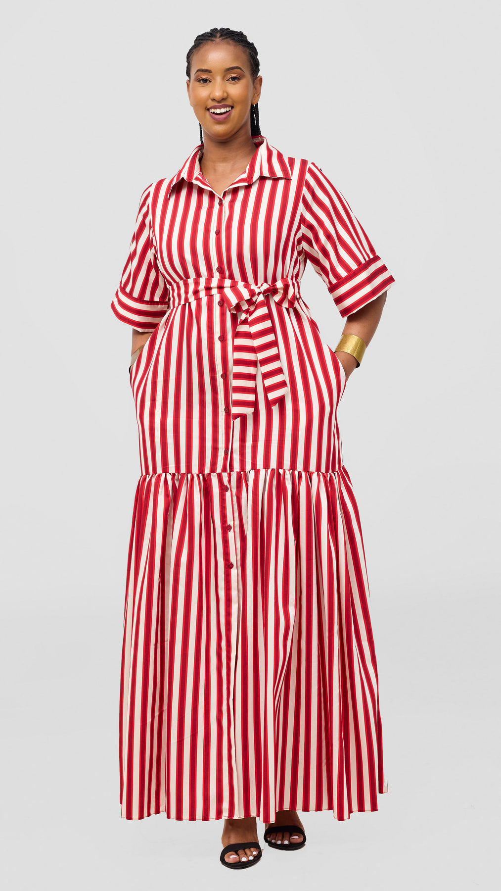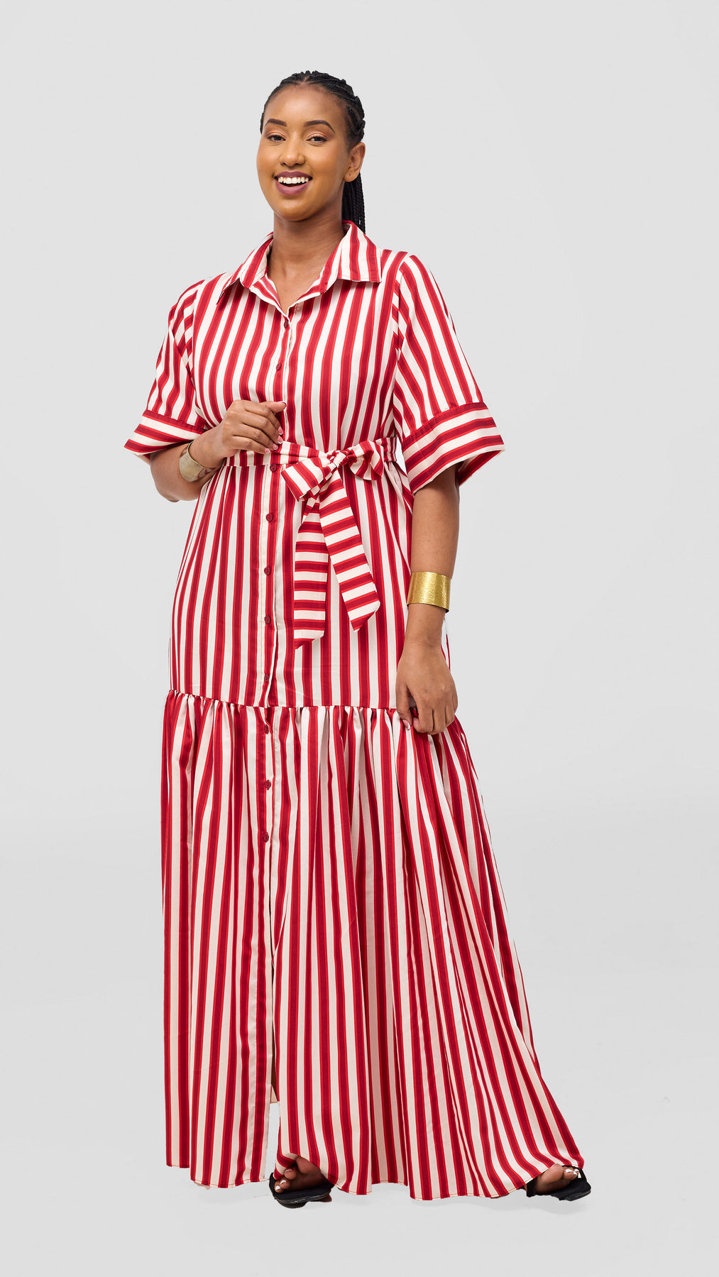 Safari Nazari Maxi Shirt Dress - Red / Cream Stripes