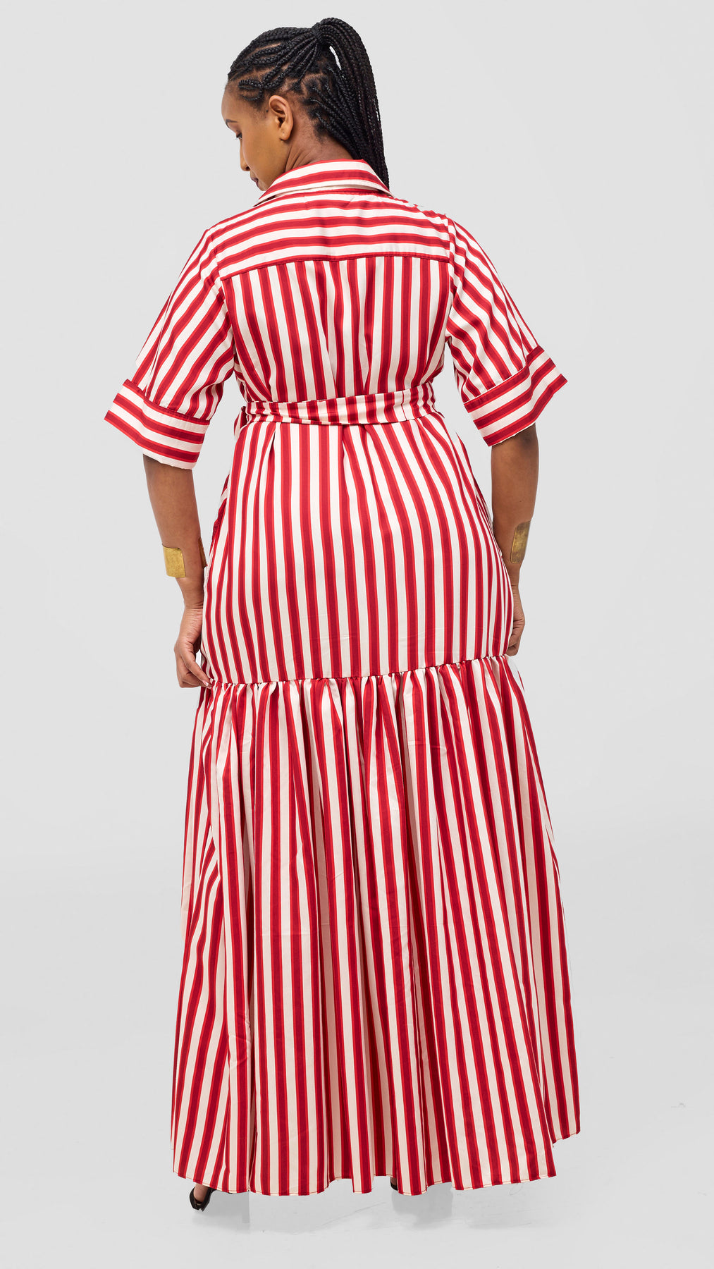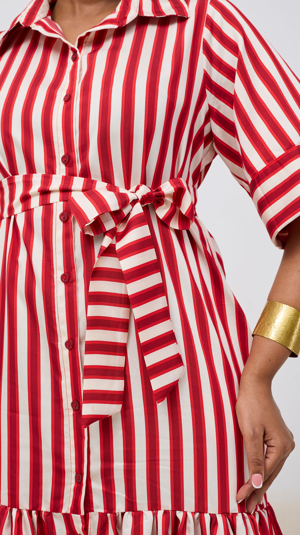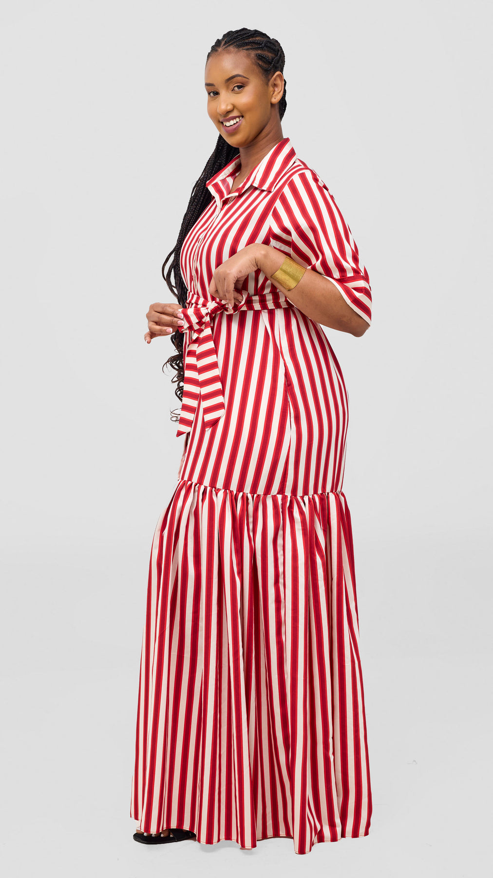 Safari Nazari Maxi Shirt Dress - Red / Cream Stripes
