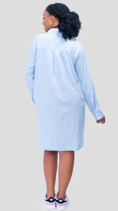 Stay effortlessly chic with the Fashion Frenzy Relaxed Shirt Dress – Sky Blue. Crafted in a soft, airy fabric, this dress features a relaxed silhouette that combines comfort with style. The button-down front and collared neckline give it a polished touch, while the sky-blue shade brings a fresh, versatile look that works from desk to weekend.