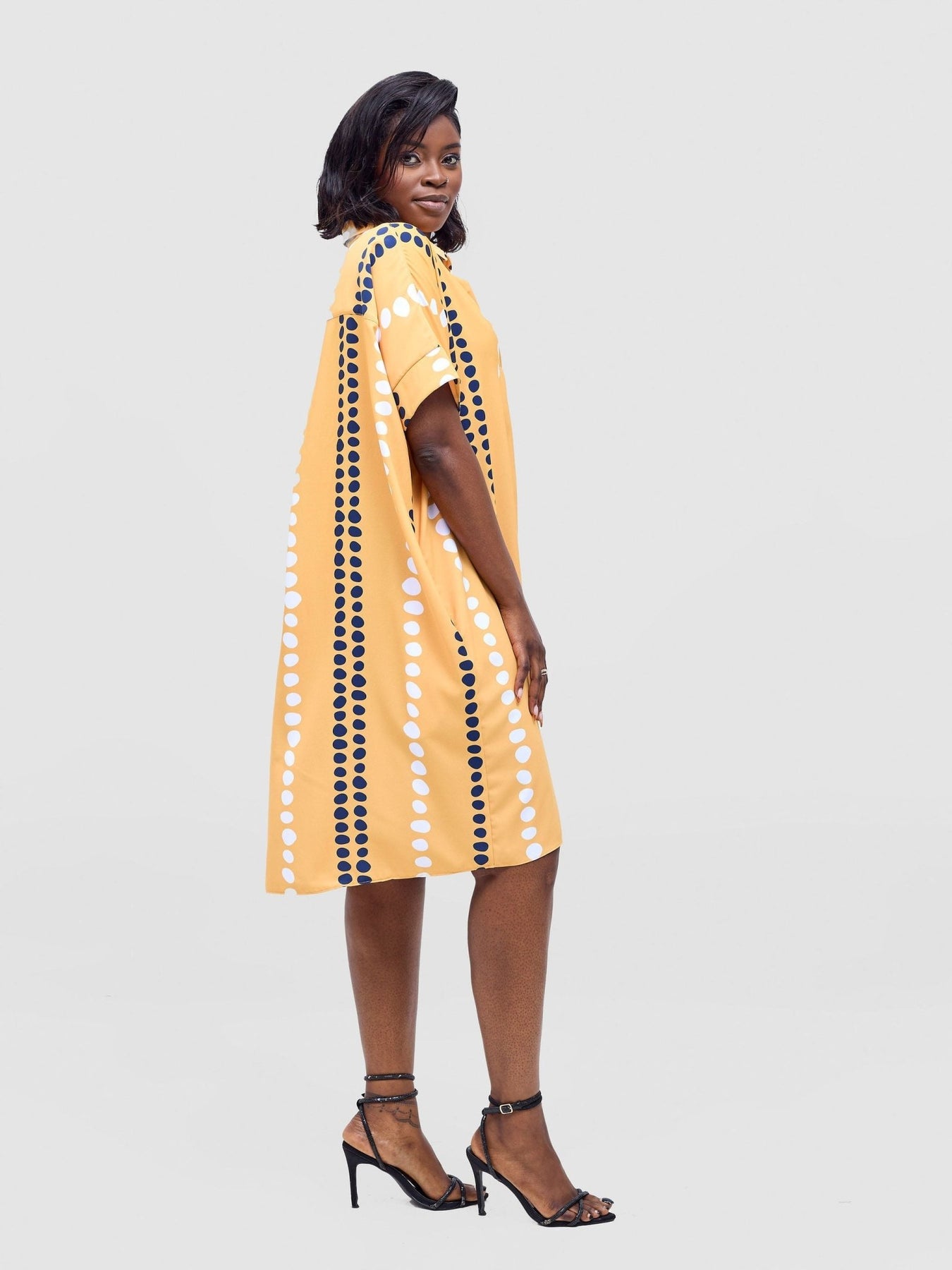 Vivo Reba Drop Shoulder Shirt Dress - Mustard / Navy Deka Print - Shopzetu