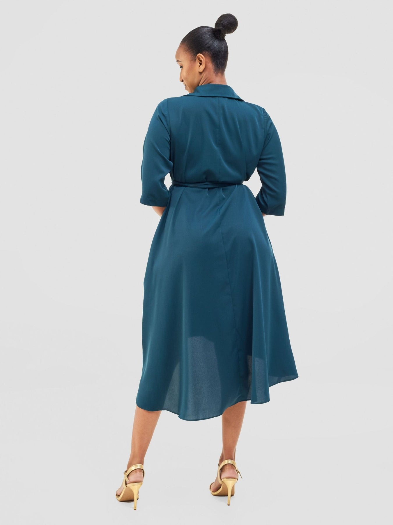 Vivo Yumi High Low Shirt Dress - Dark Teal - Shopzetu