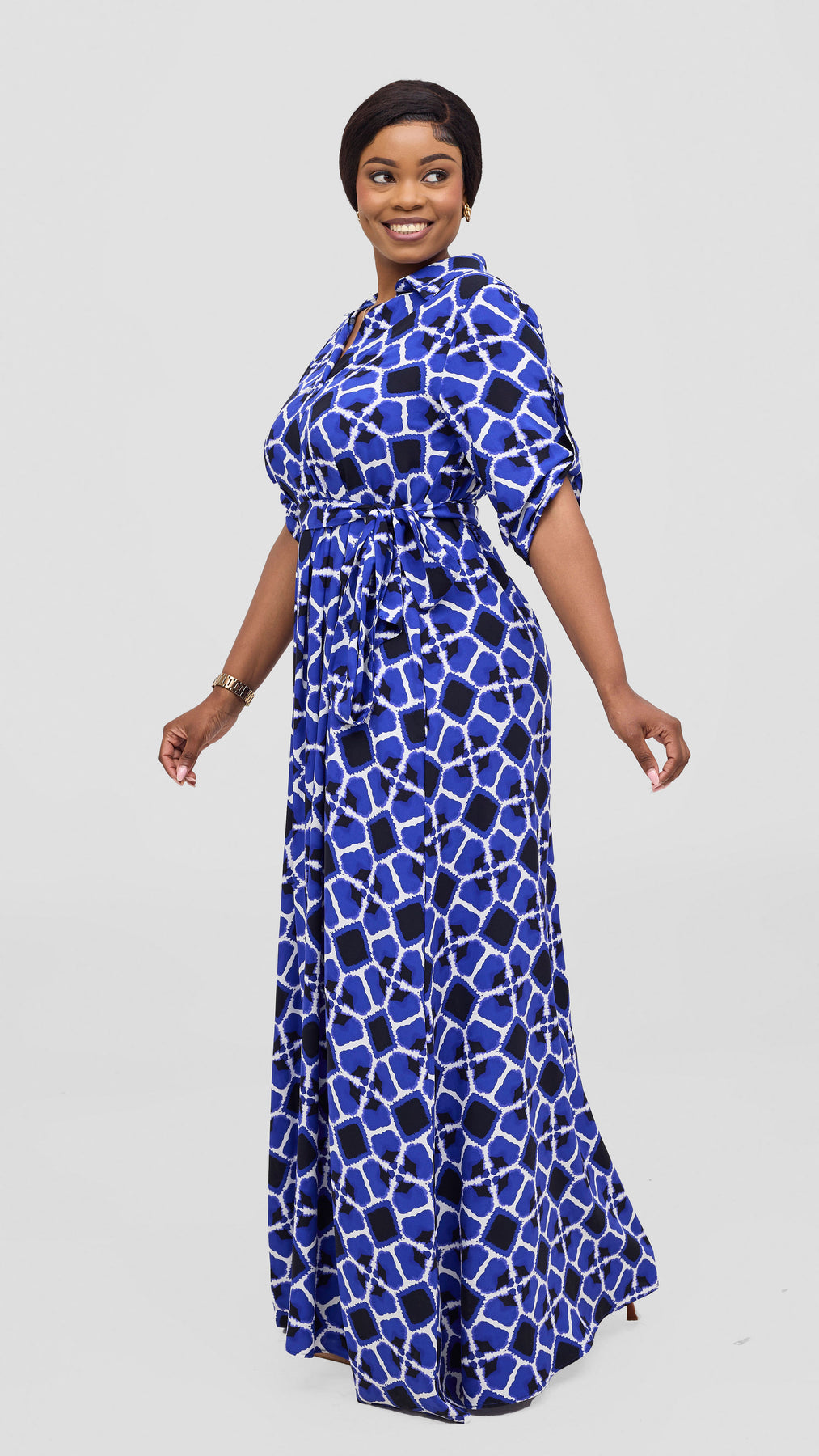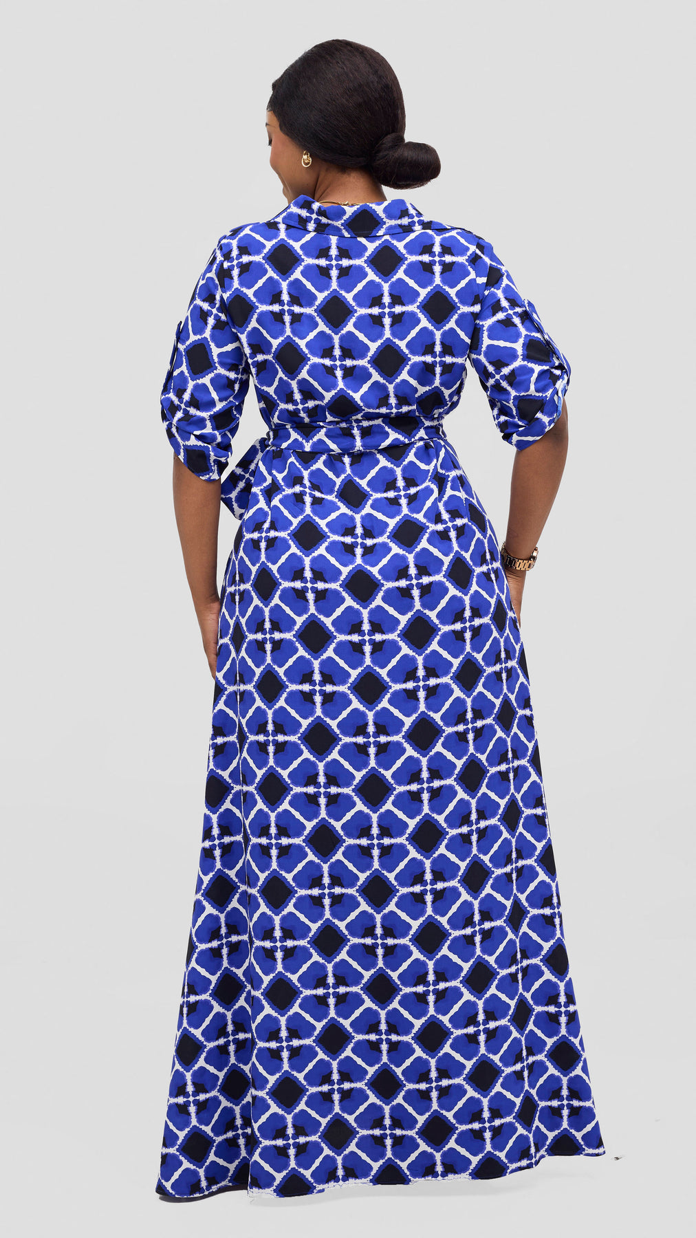Vivo Yumi Maxi Shirt Dress - Blue / White Print