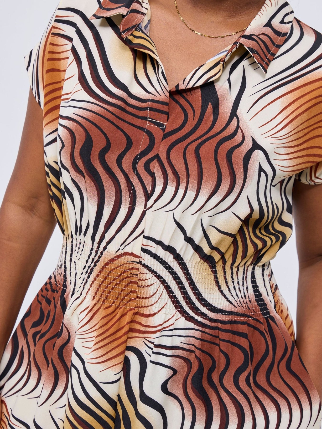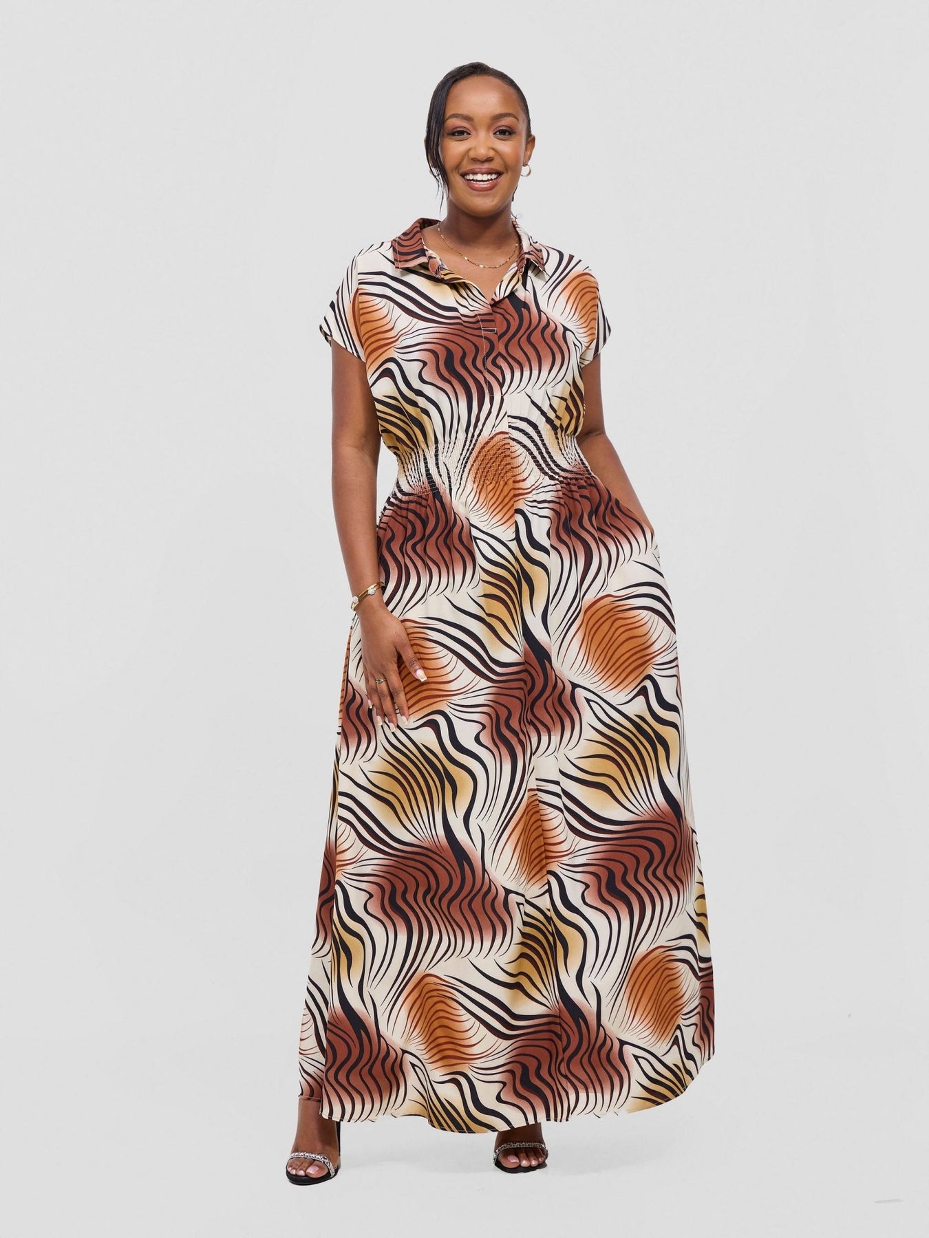 Vivo Zena Shirred Waist Maxi Shirt Dress - Cream Jazah Print - Shopzetu