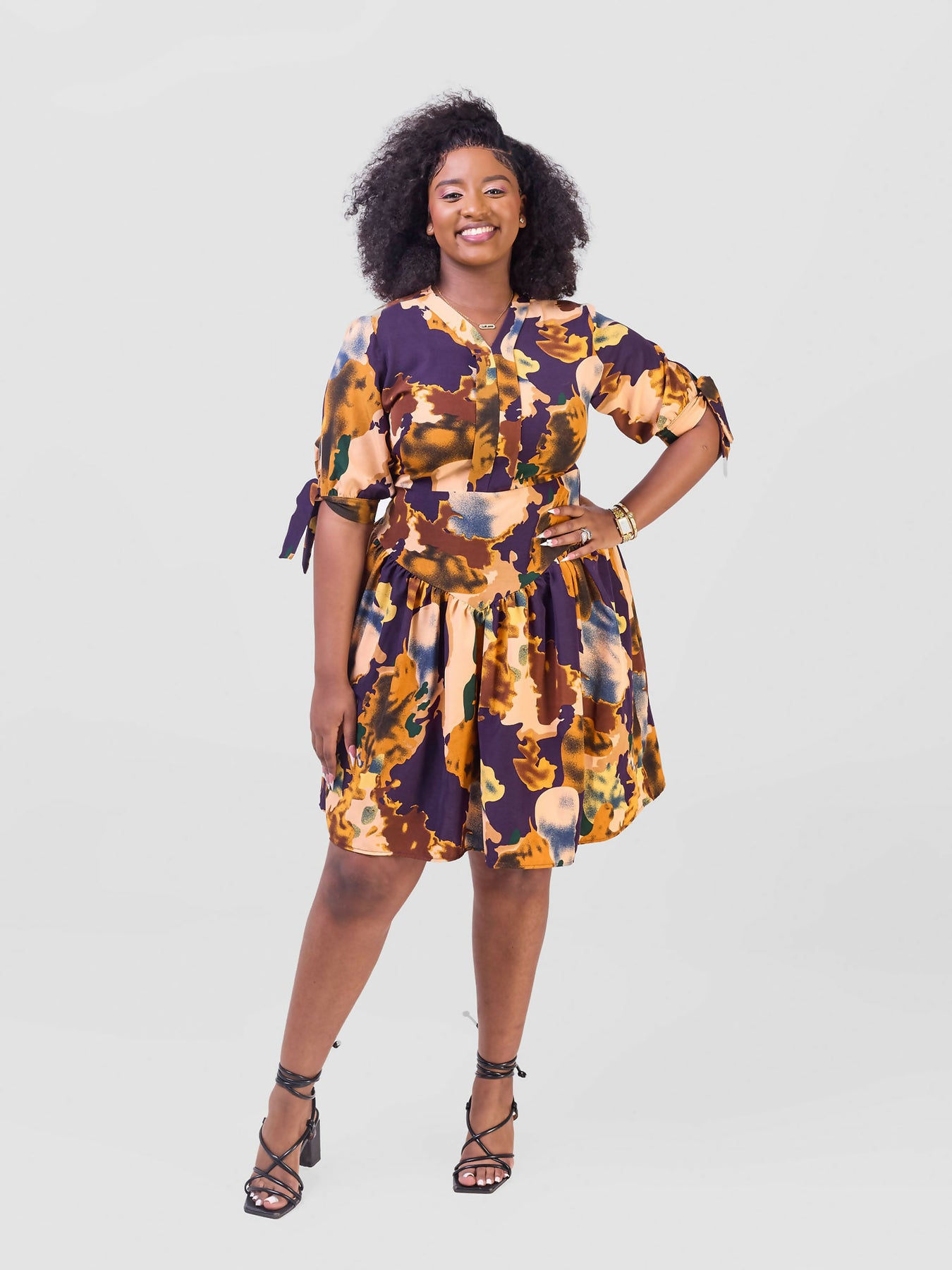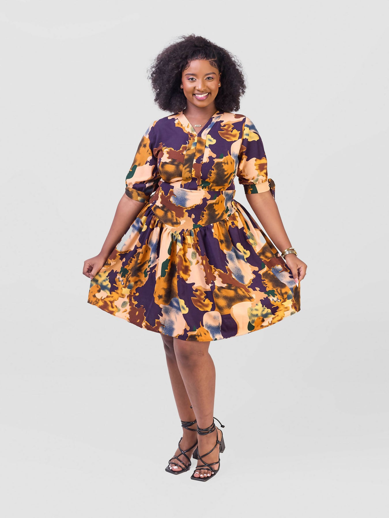 Lizola Sawalli Shift Dress - Purple / Mustard / Green